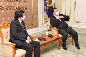 วันที่ 24 มิถุนายน 2564 เวลา 13.30 น. นายสุชาติ ชมกลิ่น รัฐมนตรีว่าการกระทรวงแรงงาน ให้การต้อนรับ นายอำพล หอมปลื้ม ผู้อำนวยการใหญ่กลุ่มงานวางแผนและบริหารองค์กร บริษัท เด็นโซ่ (ประเทศไทย) จำกัด และคณะ ในโอกาสเข้าพบเพื่อหารือประเด็น การจัดสรรวัคซีนโควิด-19 ณ ห้องจัตุมงคล ชั้น 6 อาคารกระทรวงแรงงาน โดยมี นายสุทธิ สุโกศล ปลัดกระทรวงแรงงาน พร้อมด้วยผู้บริหารระดับสูงกระทรวงแรงงาน เข้าร่วมในครั้งนี้ด้วย