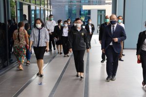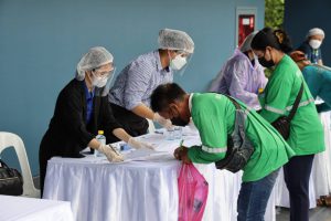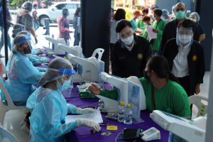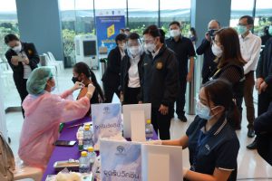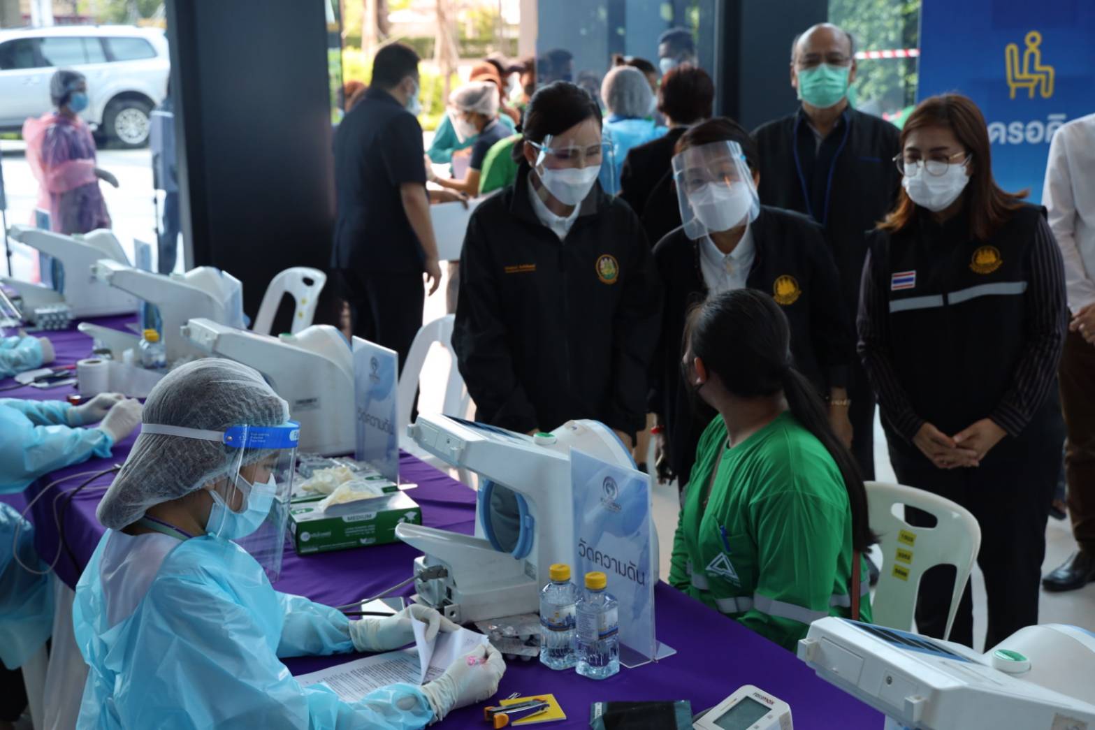 เมื่อวันที่ 21 กรกฎาคม 2564 นายสุชาติ ชมกลิ่น รัฐมนตรีว่าการกระทรวงแรงงาน มอบหมายให้ นางธิวัลรัตน์ อังกินันทน์ ที่ปรึกษารัฐมนตรีว่าการกระทรวงแรงงาน ลงพื้นที่ตรวจเยี่ยมและให้กำลังใจผู้ประกันตนมาตรา 33 ในแคมป์คนงานที่มารับบริการฉีดวัคซีนโควิด-19 ณ อาคารลุมพินีทาวเวอร์ ถนนวิภาวดี แขวงจอมพล เขตจตุจักร กรุงเทพมหานคร โดยมี นางเธียรรัตน์ นะวะมะวัฒน์ โฆษกกระทรวงแรงงาน (ฝ่ายการเมือง) นายประพันธ์ศักดิ์ รักษ์ไชยวรรณ กรรมการผู้จัดการ บริษัท แอล.พี.เอ็น.ดีเวลลอปเมนท์ จำกัด (มหาชน) นายแพทย์สุรพันธ์ ทวีวิกยการ ผู้อำนวยการโรงพยาบาลเกษมราษฎร์อินเตอร์เนชันแนล นางสาวบุปผา เรืองสุด ผู้ตรวจราชการกระทรวงแรงงาน เข้าร่วมในครั้งนี้ด้วย โดย นางธิวัลรัตน์ กล่าวว่า ตามที่รัฐบาลภายใต้การนำของ พล.อ.ประยุทธ์ จันทร์โอชา นายกรัฐมนตรี และ รมว.กลาโหม และท่าน พล.อ.ประวิตร วงษ์สุวรรณ รองนายกรัฐมนตรี ซึ่งกำกับดูแลกระทรวงแรงงาน ได้มีความห่วงใยพี่น้องผู้ใช้แรงงาน และประชาชนทั่วไปจากสถานการณ์การระบาดของโรคโควิด-19 และกำหนดให้การฉีดวัคซีนเป็นวาระแห่งชาตินั้น ในส่วนของกระทรวงแรงงานได้ดำเนินการตามมาตรการปิดแคมป์คนงานเป็นเวลา 1 เดือน โดยดำเนินการฉีดวัคซีนให้แก่คนงานในแคมป์ไปแล้วกว่า 10,000 คน ที่เหลือประมาณ 70,000 คน เป้าหมายดำเนินการ 3,000 คนต่อวัน จากแคมป์งานในพื้นที่กรุงเทพมหานครทั้งหมด 611 แคมป์ คนงาน 83,082 คน เป็นคนไทย 32,471 คน ต่างด้าว 50,611 คน