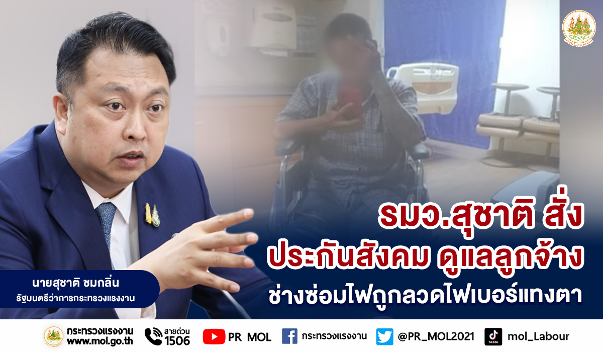 On August 21, 2023, the Labour Minister, Mr. Suchart Chomklin, spoke about the case where the media presented news about an employee of a company who had an accident where a wire pierced his left eye while working. The incident happened in May 2023, and the employee has been in recovery until now. He worries about losing his job and insufficient money, so he asked the relevant agencies for support. After hearing the news, the Prime Minister and Minister of Defense General Prayuth Chan-ocha expressed concern and assigned relevant agencies to investigate and support. The Ministry of Labour has instructed the Social Security Office to speed up the investigation of the facts to provide immediate relief for benefits.