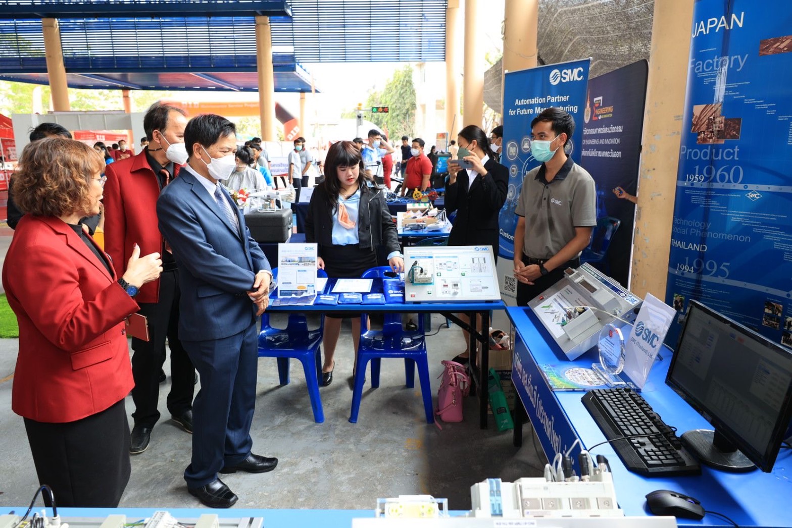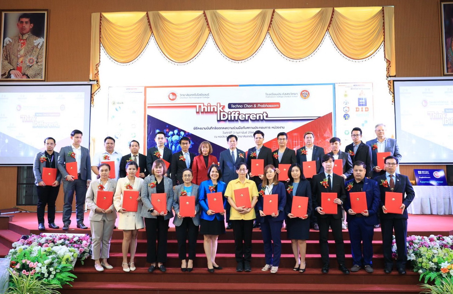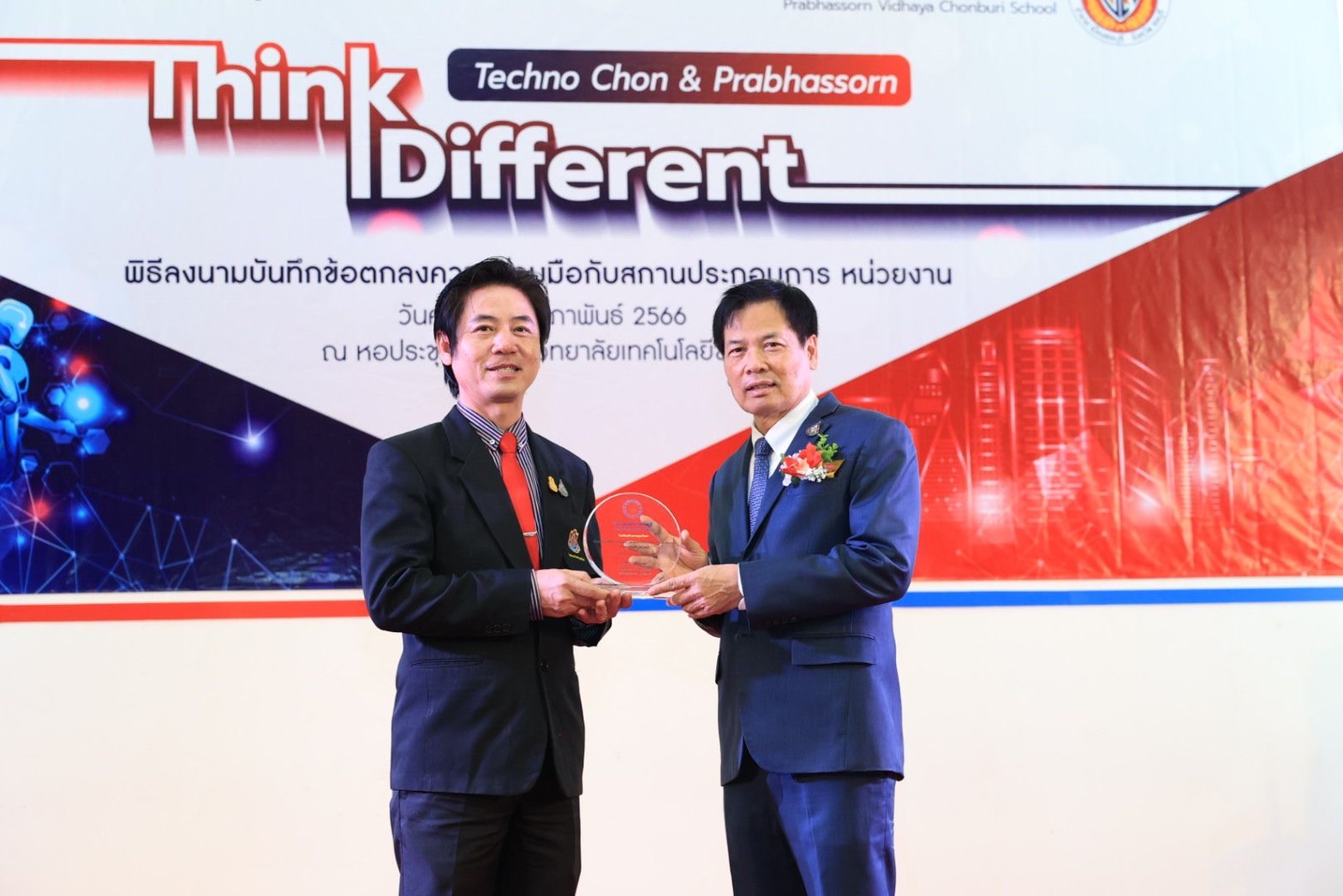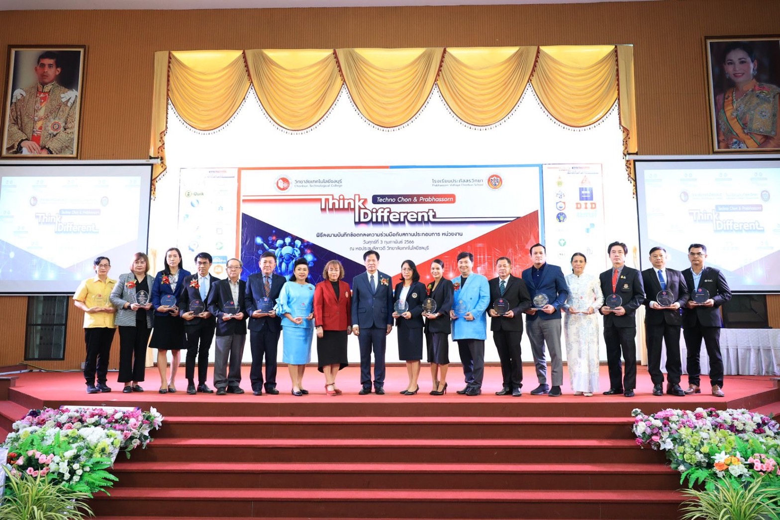วันที่ 3 กุมภาพันธ์ 2566 เวลา 10.00 น.นายสุชาติ ชมกลิ่น รัฐมนตรีว่าการกระทรวงแรงงาน มอบหมายให้ นายสุเทพ ชิตยวงษ์ เลขานุการรัฐมนตรีว่าการกระทรวงแรงงาน เป็นประธานพิธีเปิดงาน Techno Chon & Prabhassorn “Think Different” และร่วมเป็นสักขีพยานการลงนามความร่วมมือกับสถานประกอบการ 30 แห่ง พร้อมมอบโล่-เกียรติบัตรให้กับหน่วยงานที่ให้การสนับสนุน และร่วมพัฒนาการจัดการเรียนการสอนกับทางวิทยาลัยฯ 19 แห่ง โดยมี ดร.อุไรวรรณ ตันประภัสร์ ประธานกรรมการบริหารวิทยาลัยเทคโนโลยีชลบุรี ผู้บริหารสถานศึกษา ผู้บริหารระดับสูงกระทรวงแรงงานและกระทรวงศึกษาธิการ ผู้แทนภาครัฐและเอกชน หัวหน้าส่วนราชการหน่วยงานกระทรวงแรงงานจังหวัดชลบุรี ร่วมให้การต้อนรับ ณ หอประชุมลีลาวดี วิทยาลัยเทคโนโลยีชลบุรี