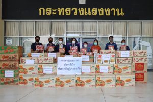 วันที่ 20 ตุลาคม 2565 เวลา 13.30 น. นายสุชาติ ชมกลิ่น รัฐมนตรีว่าการกระทรวงแรงงาน มอบหมายให้ นางเธียรรัตน์ นะวะมะวัฒน์ โฆษกกระทรวงแรงงาน (ฝ่ายการเมือง) รับมอบสิ่งของเครื่องอุปโภคบริโภคจากตัวแทนสำนักงานจัดหางานจังหวัดนครปฐม โดยมี นางสาวบุณยวีร์ ไขว้พันธุ์ รองอธิบดีกรมการจัดหางาน นายสิบหมื่นชัย โพธิสินธุ์ ผู้ตรวจราชการกรม กรมการจัดหางาน ร่วมรับมอบด้วย ณ บริเวณโถงด้านล่าง อาคารกระทรวงแรงงาน ซึ่งสิ่งของเครื่องอุปโภคบริโภคนายจ้าง สถานประกอบการในพื้นที่ได้ร่วมบริจาค ได้แก่ ขนมทอดกรอบ จำนวน 10 ลัง บะหมี่กึ่งสำเร็จรูป จำนวน 50 ลัง ขนมปังกรอบ จำนวน 40 ลัง เพื่อมอบให้กระทรวงแรงงานบรรจุถุงยังชีพนำไปช่วยเหลือผู้ประสบภัย เป็นการบรรเทาความเดือดร้อนแก่พี่น้องผู้ใช้แรงงานและชาวบ้านที่ประสบอุทกภัยในเบื้องต้นต่อไป