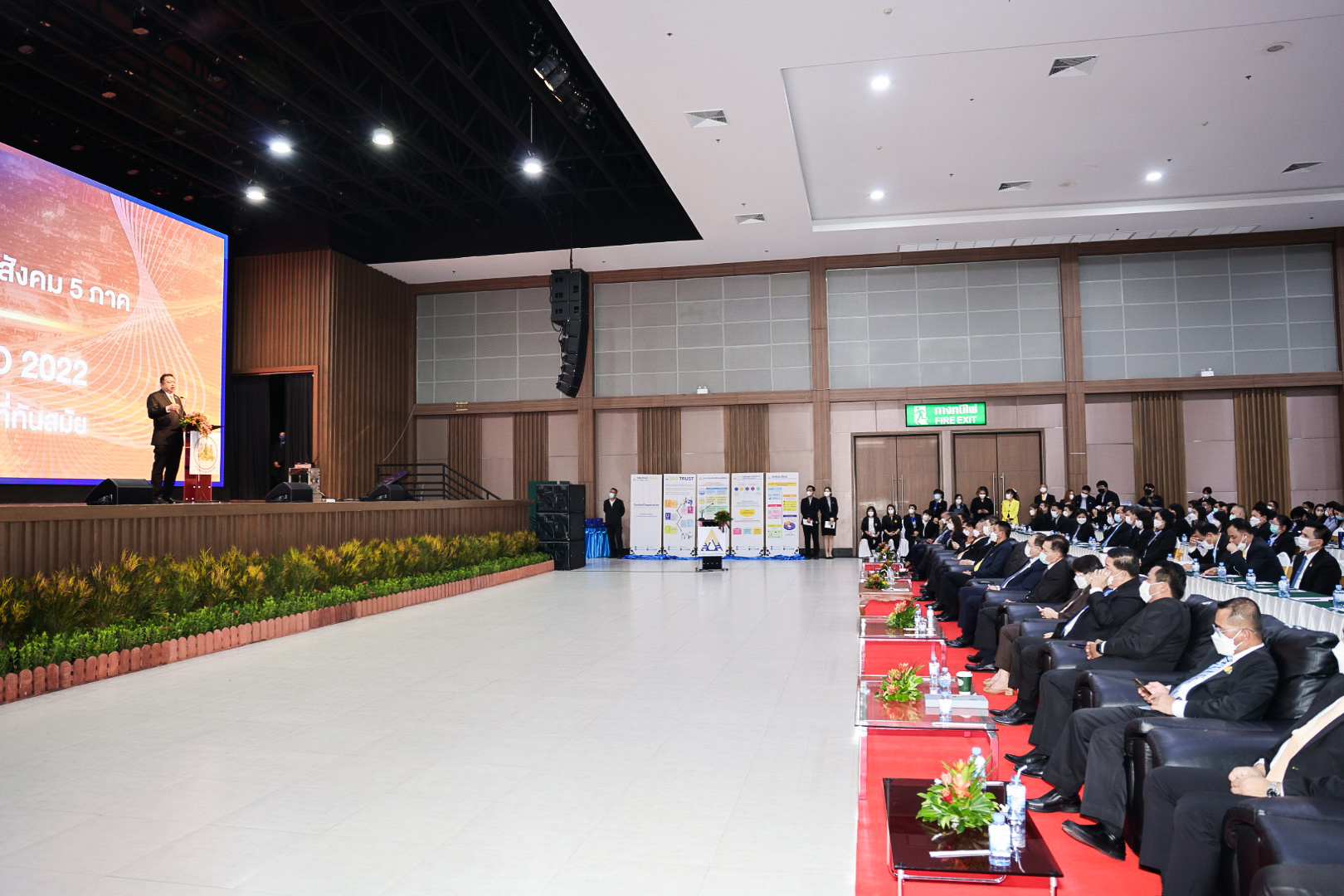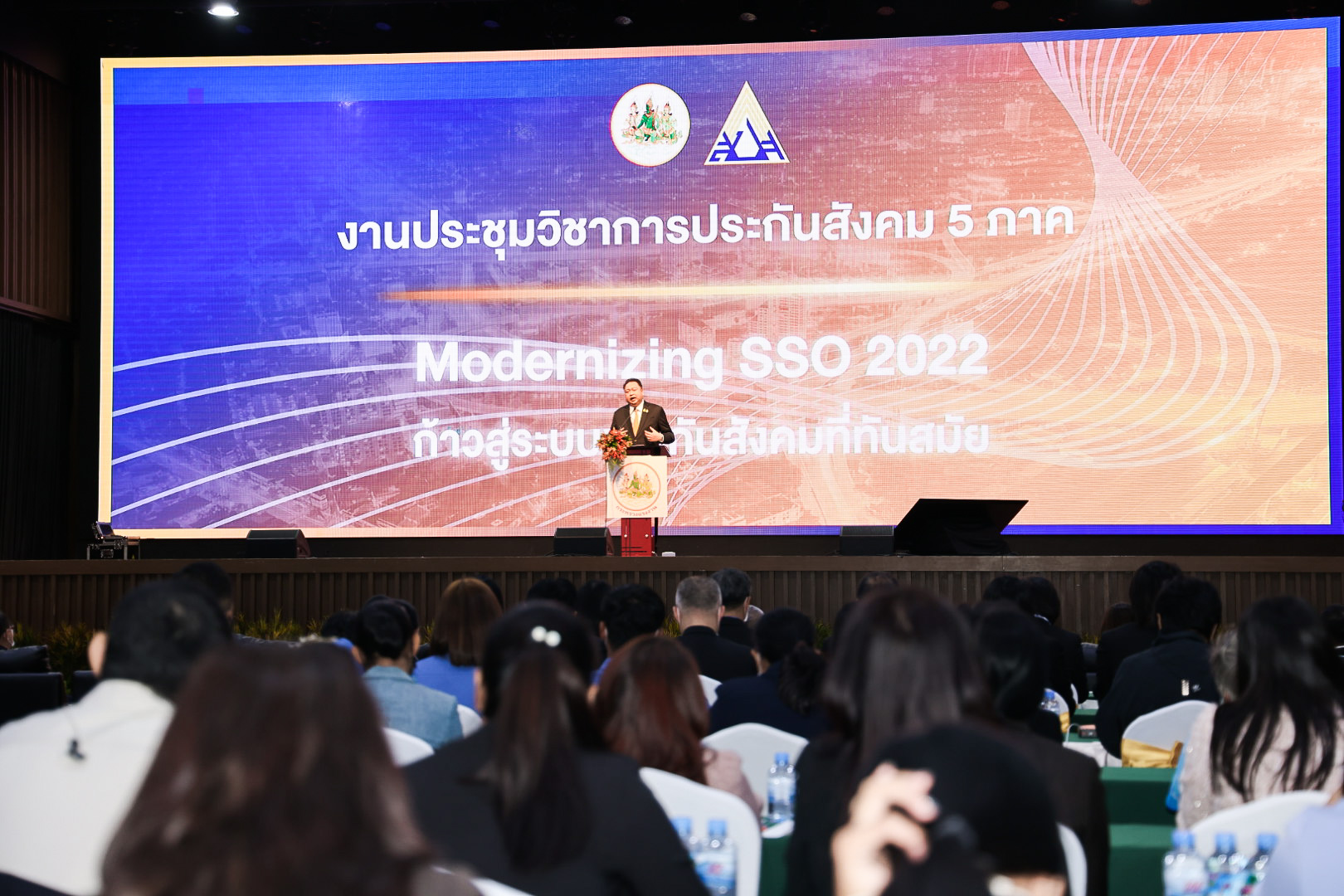 ด้านนายบุญสงค์ ทัพชัยยุทธ์ เลขาธิการสำนักงานประกันสังคม เปิดเผยว่า ในการจัดประชุมวิชาการประกันสังคม 5 ภาค ได้ดำเนินการจัดไปแล้ว 4 ครั้ง ซึ่งเป็นประโยชน์ต่อนายจ้าง ลูกจ้าง ผู้ประกันตน รวมทั้งสำนักงานประกันสังคมเป็นอย่างมาก และในวันนี้เป็นการจัดงานประชุมวิชาการประกันสังคม ครั้งที่ 5 มีผู้เข้าร่วมงาน 500 คน ประกอบด้วย ผู้บริหารระดับสูง ข้าราชการกระทรวงแรงงาน และเจ้าหน้าที่ของสำนักงานประกันสังคม คณะกรรมการประกันสังคม ผู้แทนฝ่ายนายจ้าง ผู้แทนฝ่ายลูกจ้าง ผู้ประกันตนในพื้นที่จังหวัดชลบุรี และจังหวัดใกล้เคียง ภายในงานช่วงเช้า มีการปาฐกถาพิเศษเรื่องนโยบายการพัฒนาและยกระดับชีวิตความเป็นอยู่ของผู้ใช้แรงงานโดย ท่านสุชาติ ชมกลิ่น รัฐมนตรีว่าการกระทรวงแรงงาน จากนั้นในช่วงบ่ายมีการเสวนา เรื่องบทบาทกระทรวงแรงงานในการยกระดับคุณภาพชีวิตผู้ใช้แรงงานให้มั่นคง โดยผู้บริหารระดับสูงกระทรวงแรงงาน ต่อด้วยการเสวนาเรื่อง Modernizing SSO 2022 ก้าวสู่ประกันสังคมที่ทันสมัยโดยผู้แทนจากสำนักงานประกันสังคม ผู้แทนจากฝ่ายนายจ้าง และฝ่ายลูกจ้าง นอกจากนี้ ได้มีการจัดนิทรรศการทางวิชาการ เช่น การดำเนินงานที่ผ่านมาช่วงการแพร่ระบาดของเชื้อโควิด-19 พร้อมแนวทางที่จะดำเนินการต่อไปในอนาคตและข้อมูลเกี่ยวกับความท้าทายจากสถานการณ์โควิด-19 เพื่อนำไปสู่การพัฒนาสิทธิประโยชน์อย่างยั่งยืนเพื่อสร้างความเชื่อมั่นและความไว้วางใจแก่นายจ้างผู้ประกันตน