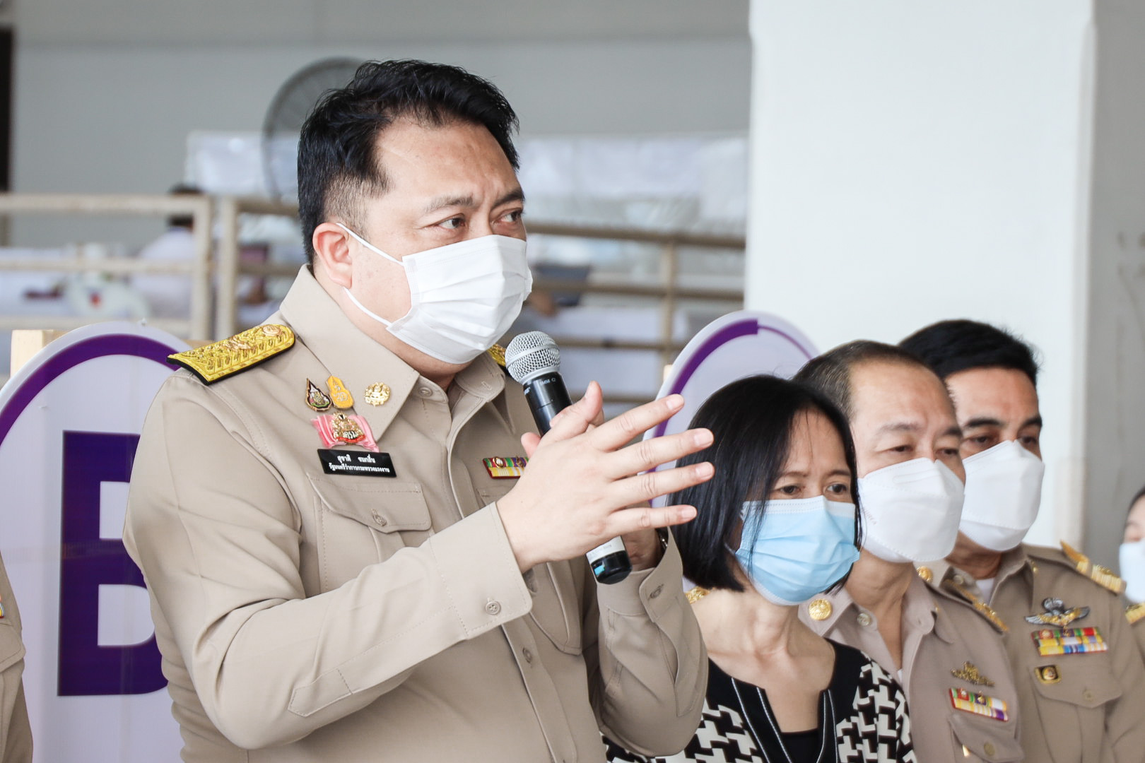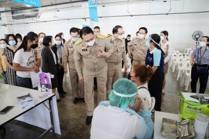 “ในวันนี้ ผมและคณะลงพื้นที่เพื่อตรวจเยี่ยมการให้บริการฉีดวัคซีนโควิด-19 สำหรับผู้ประกันตนมาตรา 33 ในกรุงเทพมหานคร รวมทั้งให้กำลังใจแก่บุคลากรทางการแพทย์ ที่ศูนย์ฉีดวัคซีนห้างเซ็นทรัล พระราม 9 ซึ่งศูนย์แห่งนี้อยู่ในความดูแลรับผิดชอบของสำนักงานประกันสังคมกรุงเทพมหานครเขตพื้นที่ 3 มีศักยภาพการฉีด 1,500 คนต่อวัน มีทีมแพทย์ พยาบาล และเภสัชกรจากโรงพยาบาลเปาโลโชคชัย 4 เป็นผู้ดำเนินการฉีดในเข็มที่ 2 สำหรับการฉีดวัคซีนแก่ผู้ประกันตนมาตรา 33 ในกรุงเทพมหานครมีจำนวน 26 จุด ตั้งแต่วันที่ 16 – 27 สิงหาคม2564 เป็นวัคซีนยี่ห้อ AstraZeneca ทั้งหมด โดยภาพรวมเข็มแรกได้ฉีดให้แก่ผู้ประกันตนมาตรา33 ไปแล้วกว่า 1.3 ล้านราย ทั้งนี้ การให้บริการฉีดวัคซีนโควิด-19 เป็นหนึ่งในมาตรการที่กระทรวงแรงงาน ให้การป้องกันรักษาโดยเร่งรัดการฉีดวัคซีนให้แก่ผู้ประกันตนตามนโยบายรัฐบาล เพื่อควบคุมการแพร่ระบาดของโควิด-19 และสร้างภูมิคุ้มกันหมู่ในกลุ่มแรงงาน เพื่อให้กิจการเดินหน้าต่อไปได้” นายสุชาติ กล่าวในท้ายสุด
