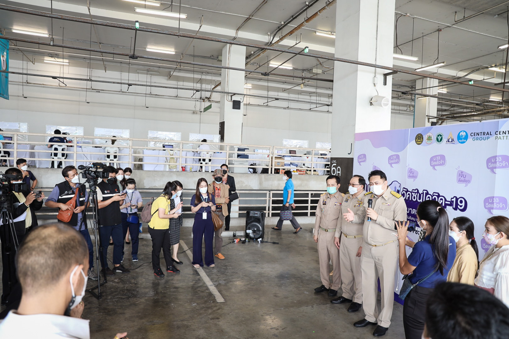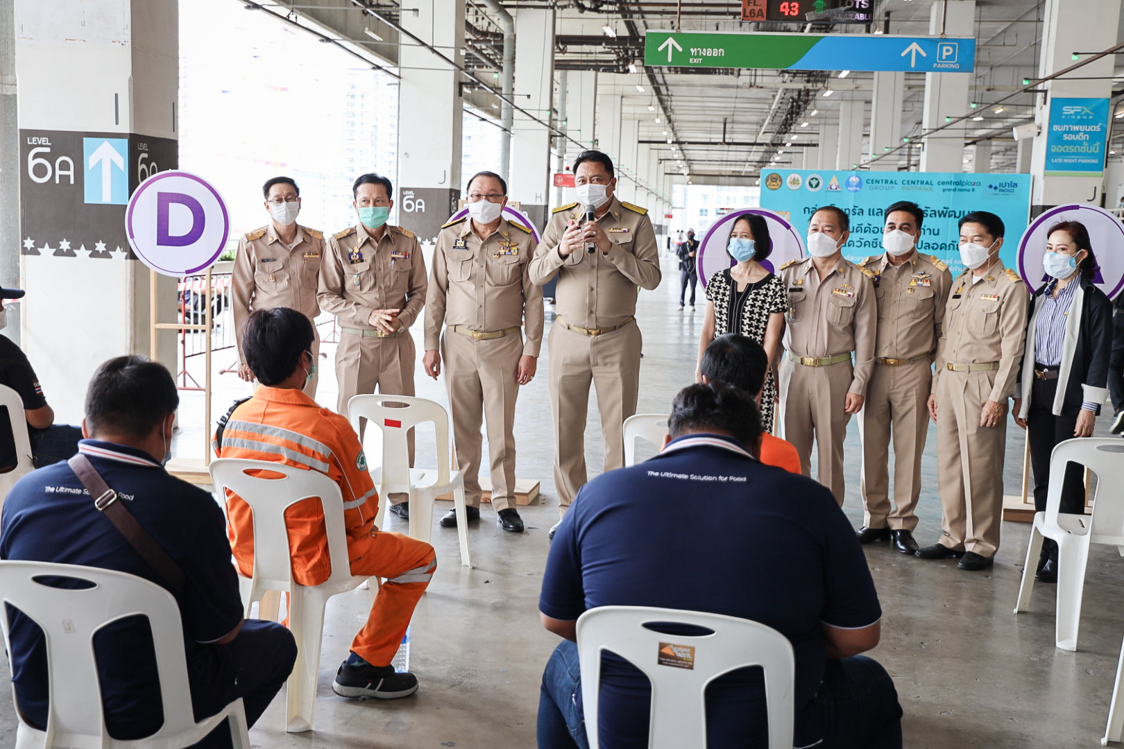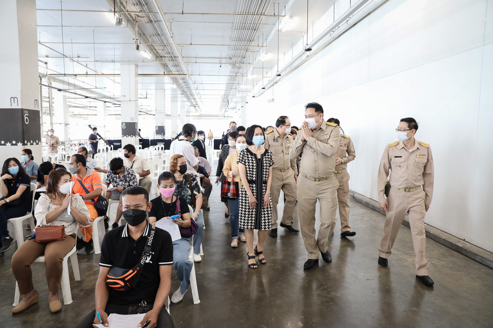 เมื่อวันที่ 16 สิงหาคม 2564 นายสุชาติ ชมกลิ่น รัฐมนตรีว่าการกระทรวงแรงงาน ลงพื้นที่ตรวจเยี่ยมการให้บริการฉีดวัคซีนโควิด-19 สำหรับผู้ประกันตนในพื้นที่กรุงเทพมหานคร ณ ศูนย์ฉีดวัคซีนห้างเซ็นทรัล พระราม 9 ถนนรัชดาภิเษก แขวงห้วยขวาง เขตห้วยขวาง กรุงเทพมหานครโดยมี นายสุรชัย ชัยตระกูลทอง ผู้ช่วยรัฐมนตรีประจำกระทรวงแรงงาน นางเธียรรัตน์ นะวะมะวัฒน์ โฆษกกระทรวงแรงงาน (ฝ่ายการเมือง) นายสุทธิ สุโกศล ปลัดกระทรวงแรงงาน คุณรนิดารตนชัยโชติ ผู้จัดการทั่วไป เซ็นทรัลพลาซ่า แกรนด์พระราม 9 พร้อมด้วย ผู้บริหารระดับสูงกระทรวงแรงงาน เข้าร่วมในครั้งนี้ด้วย โดย นายสุชาติ กล่าวว่า ตามที่รัฐบาลภายใต้การนำของ พล.อ.ประยุทธ์ จันทร์โอชา นายกรัฐมนตรี และ รมว.กลาโหม และ ท่าน พล.อ.ประวิตร วงษ์สุวรรณ รองนายกรัฐมนตรี ซึ่งกำกับดูแลกระทรวงแรงงาน ได้มีความห่วงใยพี่น้องผู้ใช้แรงงานและประชาชนทั่วไปจากสถานการณ์การระบาดของโรคโควิด-19 และกำหนดให้การฉีดวัคซีนเป็นวาระแห่งชาตินั้น และกระทรวงแรงงาน ได้มอบหมายให้สำนักงานประกันสังคม บูรณาการร่วมกับกระทรวงมหาดไทย โดยกรุงเทพมหานคร กระทรวงสาธารณสุข โดยสำนักงานหลักประกันสุขภาพแห่งชาติ (สปสช.) กระทรวงการคลัง โดยธนาคารกรุงไทย และสถานพยาบาลเครือข่ายประกันสังคม ทั้งภาครัฐและเอกชน ให้บริการฉีดวัคซีนป้องกันโควิด-19 ให้กับผู้ประกันตน เพื่อควบคุมการแพร่ระบาดไม่ให้กระจายออกสู่วงกว้างทั้งในโรงงาน และสถานประกอบการ
