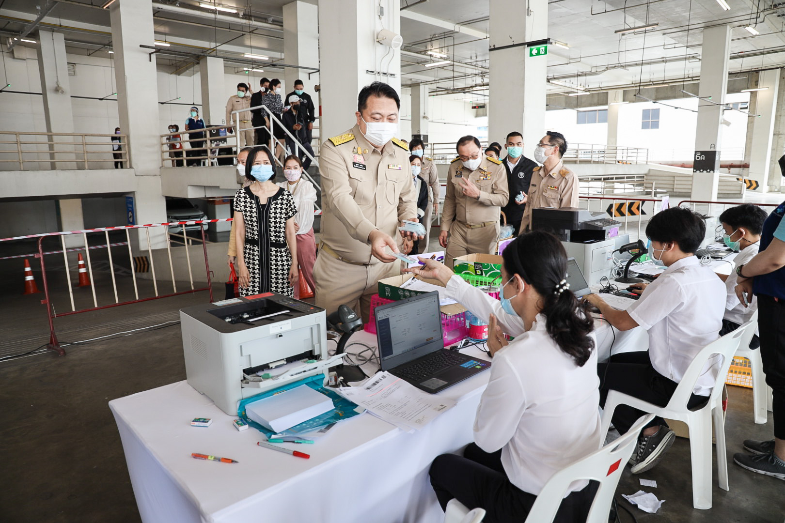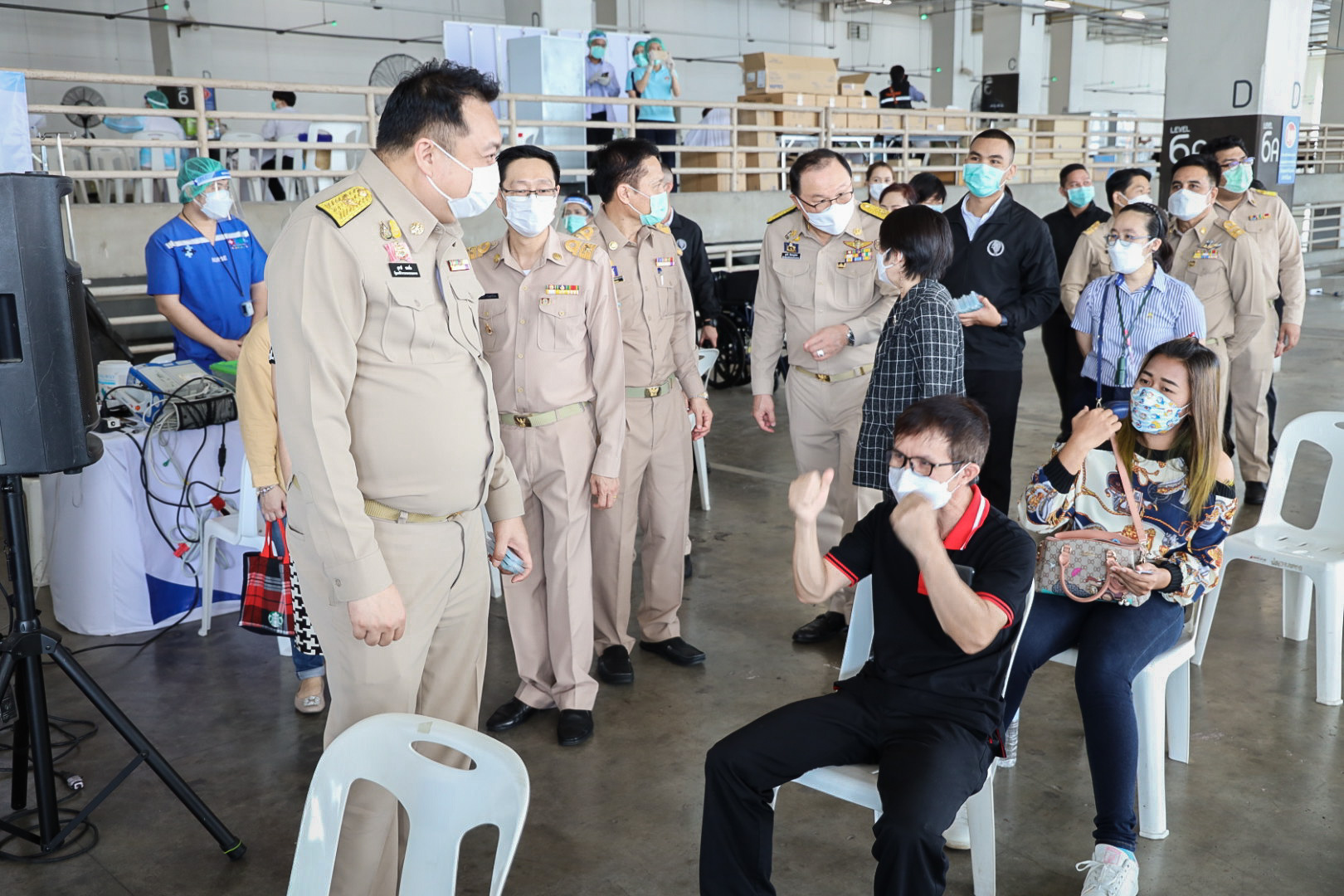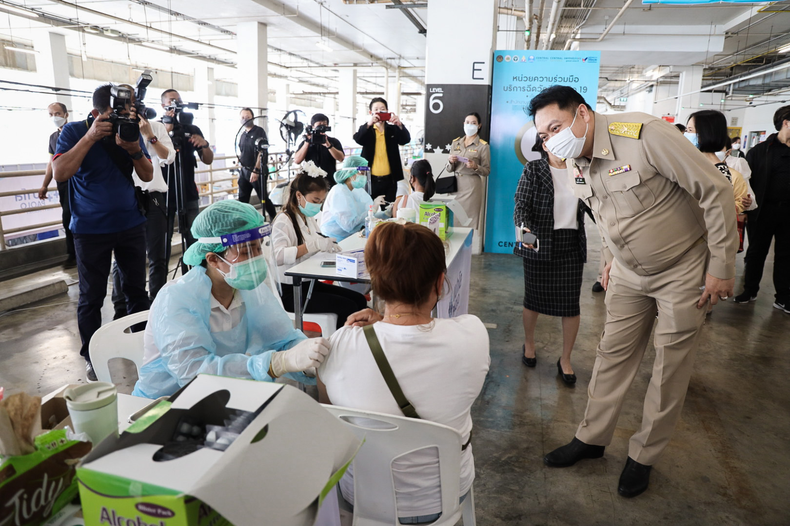 เมื่อวันที่ 16 สิงหาคม 2564 นายสุชาติ ชมกลิ่น รัฐมนตรีว่าการกระทรวงแรงงาน ลงพื้นที่ตรวจเยี่ยมการให้บริการฉีดวัคซีนโควิด-19 สำหรับผู้ประกันตนในพื้นที่กรุงเทพมหานคร ณ ศูนย์ฉีดวัคซีนห้างเซ็นทรัล พระราม 9 ถนนรัชดาภิเษก แขวงห้วยขวาง เขตห้วยขวาง กรุงเทพมหานครโดยมี นายสุรชัย ชัยตระกูลทอง ผู้ช่วยรัฐมนตรีประจำกระทรวงแรงงาน นางเธียรรัตน์ นะวะมะวัฒน์ โฆษกกระทรวงแรงงาน (ฝ่ายการเมือง) นายสุทธิ สุโกศล ปลัดกระทรวงแรงงาน คุณรนิดารตนชัยโชติ ผู้จัดการทั่วไป เซ็นทรัลพลาซ่า แกรนด์พระราม 9 พร้อมด้วย ผู้บริหารระดับสูงกระทรวงแรงงาน เข้าร่วมในครั้งนี้ด้วย โดย นายสุชาติ กล่าวว่า ตามที่รัฐบาลภายใต้การนำของ พล.อ.ประยุทธ์ จันทร์โอชา นายกรัฐมนตรี และ รมว.กลาโหม และ ท่าน พล.อ.ประวิตร วงษ์สุวรรณ รองนายกรัฐมนตรี ซึ่งกำกับดูแลกระทรวงแรงงาน ได้มีความห่วงใยพี่น้องผู้ใช้แรงงานและประชาชนทั่วไปจากสถานการณ์การระบาดของโรคโควิด-19 และกำหนดให้การฉีดวัคซีนเป็นวาระแห่งชาตินั้น และกระทรวงแรงงาน ได้มอบหมายให้สำนักงานประกันสังคม บูรณาการร่วมกับกระทรวงมหาดไทย โดยกรุงเทพมหานคร กระทรวงสาธารณสุข โดยสำนักงานหลักประกันสุขภาพแห่งชาติ (สปสช.) กระทรวงการคลัง โดยธนาคารกรุงไทย และสถานพยาบาลเครือข่ายประกันสังคม ทั้งภาครัฐและเอกชน ให้บริการฉีดวัคซีนป้องกันโควิด-19 ให้กับผู้ประกันตน เพื่อควบคุมการแพร่ระบาดไม่ให้กระจายออกสู่วงกว้างทั้งในโรงงาน และสถานประกอบการ