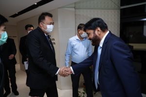 นายสุชาติ ชมกลิ่น รัฐมนตรีว่าการกระทรวงแรงงาน พร้อมด้วย นายสุรชัย ชัยตระกูลทอง รัฐมนตรีว่าการกระทรวงแรงงาน นายบุญชอบ สุทธมนัสวงษ์ ปลัดกระทรวงแรงงาน นายจาตุรนต์ ไชยะคำ กงสุลใหญ่ ณ เมืองฮ่องกง และผู้บริหารระดับสูงกระทรวงแรงงาน เข้าพบ นายซันจาย โคธารี (MR.SANJAY KOTHARI) รองประธานบริษัท KGK Diamonds (HK) Ltd. เพื่อหารือแนวทางความร่วมมือการผลิตแรงงานด้านอัญมณีและเครื่องประดับ ณ KGK Diamonds (HK) Ltd. เขตบริหารพิเศษฮ่องกง