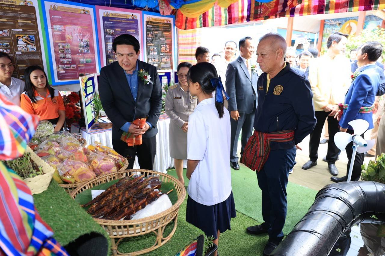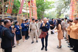 On March 8, 2024, the Labour Minister, Mr. Phiphat Ratchakitprakarn, paid a visit to the area to visit a vocational training demonstration project to promote careers for informal workers to reduce labour movement issues. The Labour Minister’s Advisor, Mr. Thanat Thaweekueakulkit, the Deputy Minister of Education, Mr. Surasak Pancharoenvorakul, the Deputy Governor of Sisaket Province, Mr. Chaiyong Metasurawit, executives and heads of government agencies under the Ministry of Labour joined the occasion. Administrators, teachers, and students of Ban Tum School attended and joined in the welcome at Ban Tum School, Ban Tum Subdistrict, Si Rattana District, Sisaket Province.
