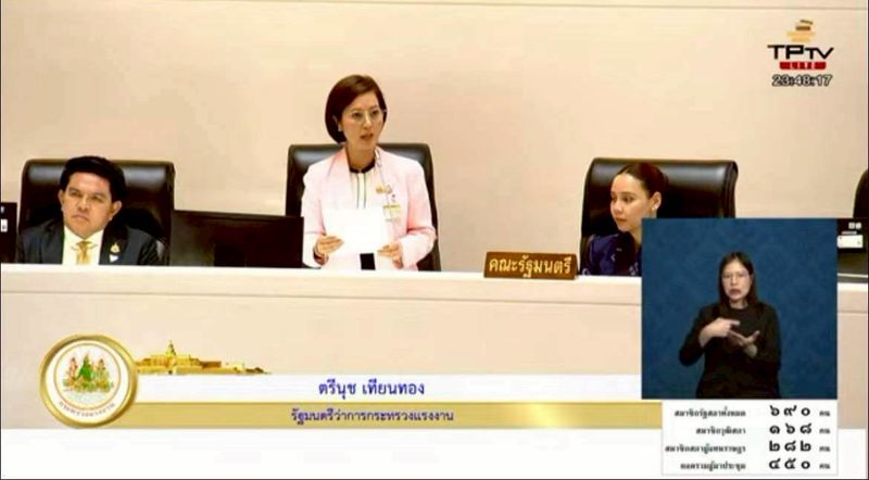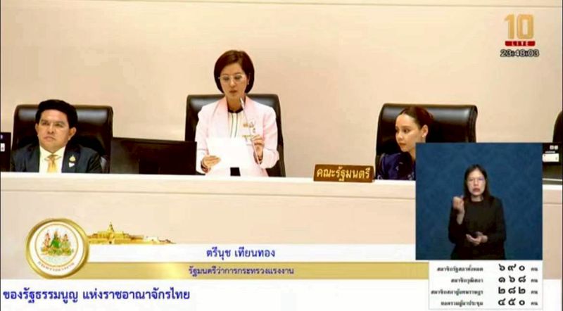 เมื่อวันที่ 29 กันยายน 2568 นางสาวตรีนุช เทียนทอง รัฐมนตรีว่าการกระทรวงแรงงาน ตอบชี้แจงประเด็นประกันสังคมหลังการอภิปรายของสมาชิกสภาผู้แทนราษฎร ในการประชุมร่วมกันของรัฐสภา ครั้งที่ 1 (สมัยสามัญประจำปีครั้งที่หนึ่ง) เป็นพิเศษ เพื่อพิจารณาเรื่องด่วน คณะรัฐมนตรีแถลงนโยบายต่อรัฐสภา ตามมาตรา 162 ของรัฐธรรมนูญแห่งราชอาณาจักรไทย ณ ห้องประชุมสภาผู้แทนราษฎร ชั้น 2 อาคารรัฐสภา