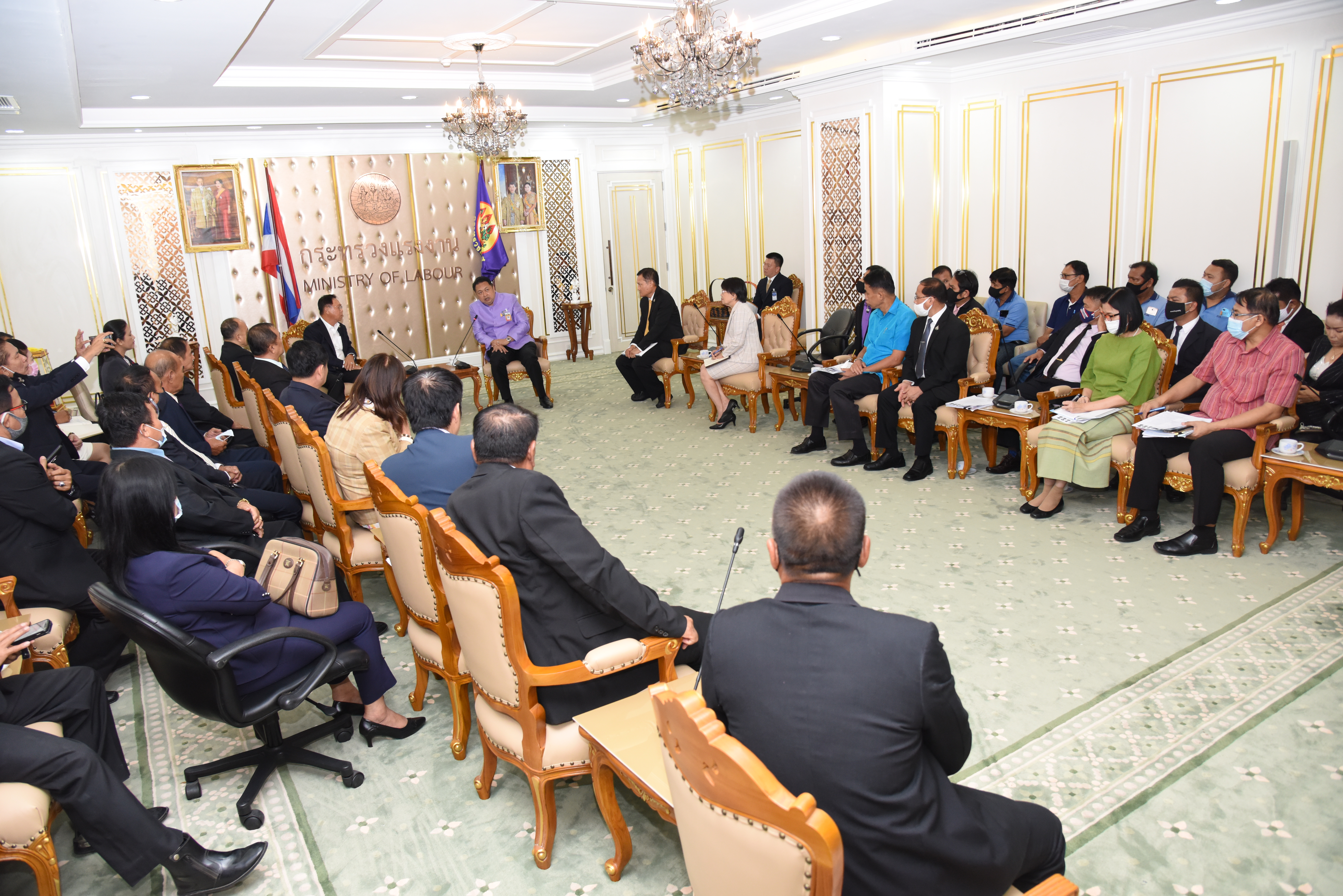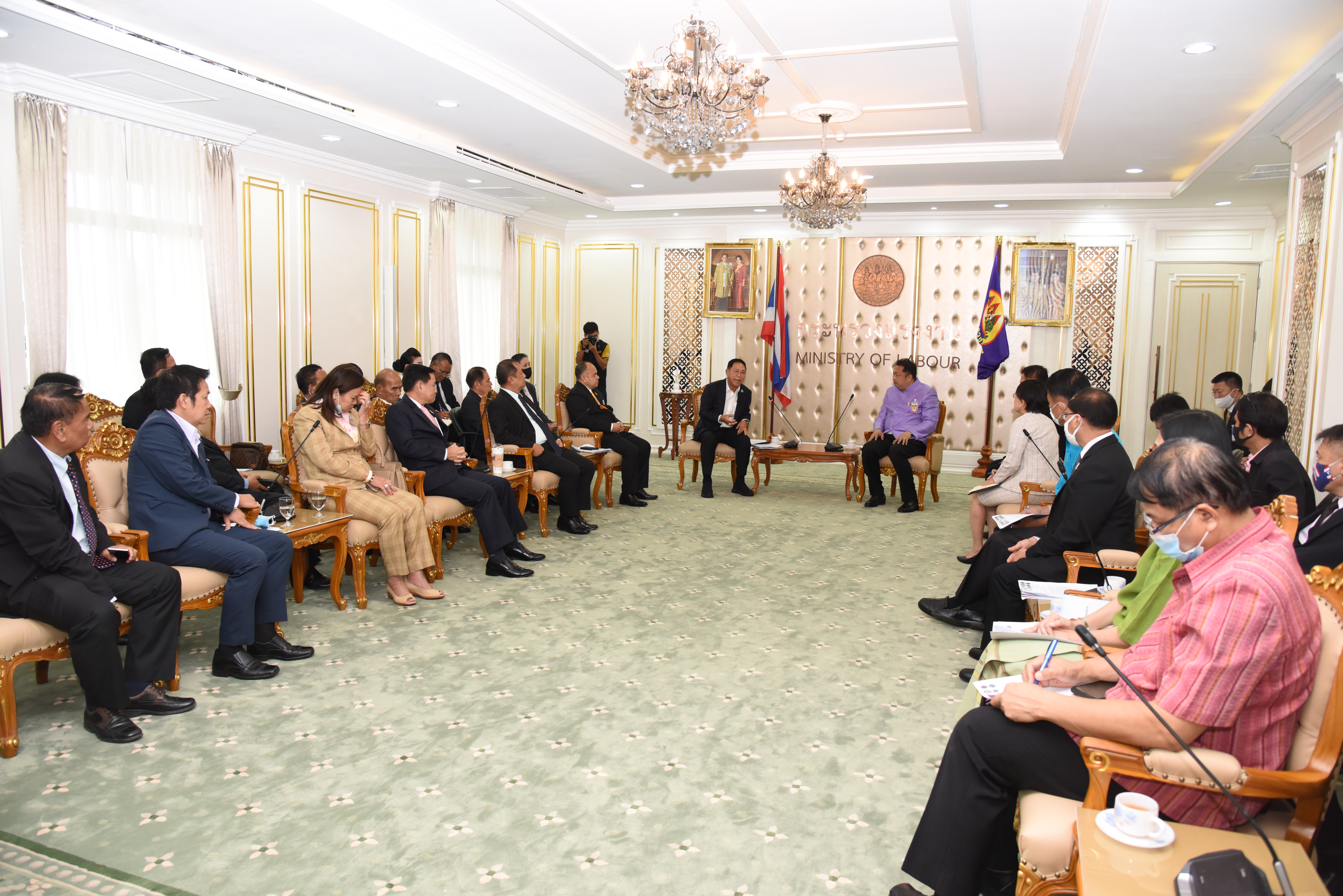 วันที่ ๘ กันยายน ๒๕๖๓ เวลา ๑๓.๓๐ น. นายสุชาติ ชมกลิ่น รัฐมนตรีว่าการกระทรวงแรงงาน พร้อมด้วยนายสุทธิ สุโกศล ปลัดกระทรวงแรงงาน และนางเธียรรัตน์ นะวะมะวัฒน์ รองปลัดกระทรวงแรงงาน ให้การต้อนรับ ดร.วัลลภ กิ่งชาญศิลป์ นายกสมาคมภาคพื้นเอเชียแปซิฟิก และคณะเครือข่ายผู้ประกอบการรักษาความปลอดภัยแห่งประเทศไทย เข้าพบเพื่อหารือปัญหาผลกระทบด้านกฎหมายแรงงานในการประกอบธุรกิจรักษาความปลอดภัยที่ต้องการความช่วยเหลือเร่งด่วน ในด้านกฎหมายเพื่อคนพิการ เพื่อให้เกิดความเป็นธรรมต่อภาคธุรกิจบริการรักษาความปลอดภัย โดยเสนอให้กระทรวงแรงงานให้ความช่วยเหลือยกเว้นการบังคับใช้กฎกระทรวงกำหนดจำนวนคนพิการที่นายจ้าง หรือเจ้าของสถานประกอบการและหน่วยงานของรัฐจะต้องรับเข้าทำงาน และจำนวนเงินที่นายจ้าง หรือเจ้าของสถานประกอบการจะต้องนำส่งเข้ากองทุนส่งเสริมและพัฒนาคุณภาพชีวิตคนพิการ พ.ศ.๒๕๕๔ ณ ห้องจัตุมงคล ชั้น ๖ อาคารกระทรวงแรงงาน