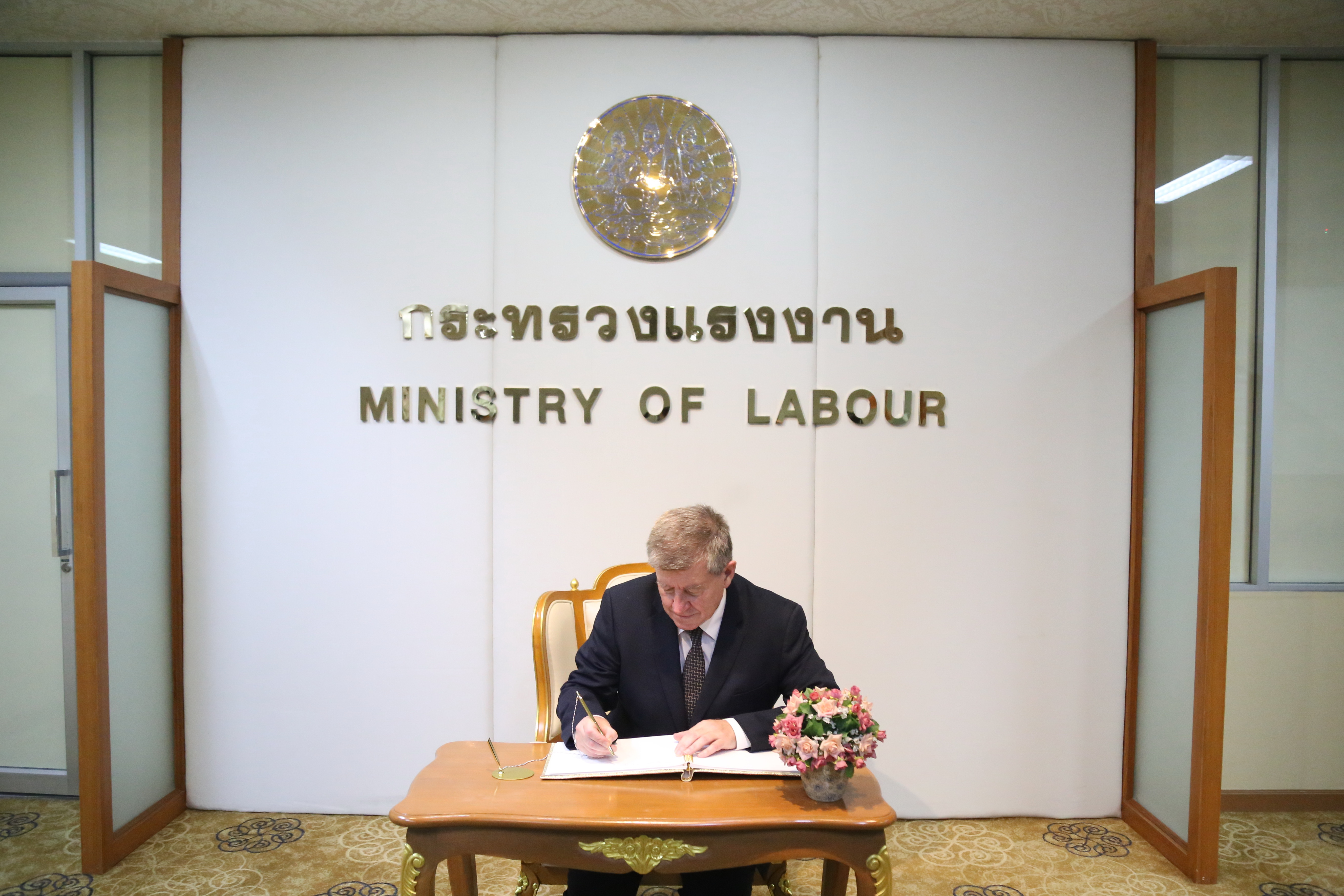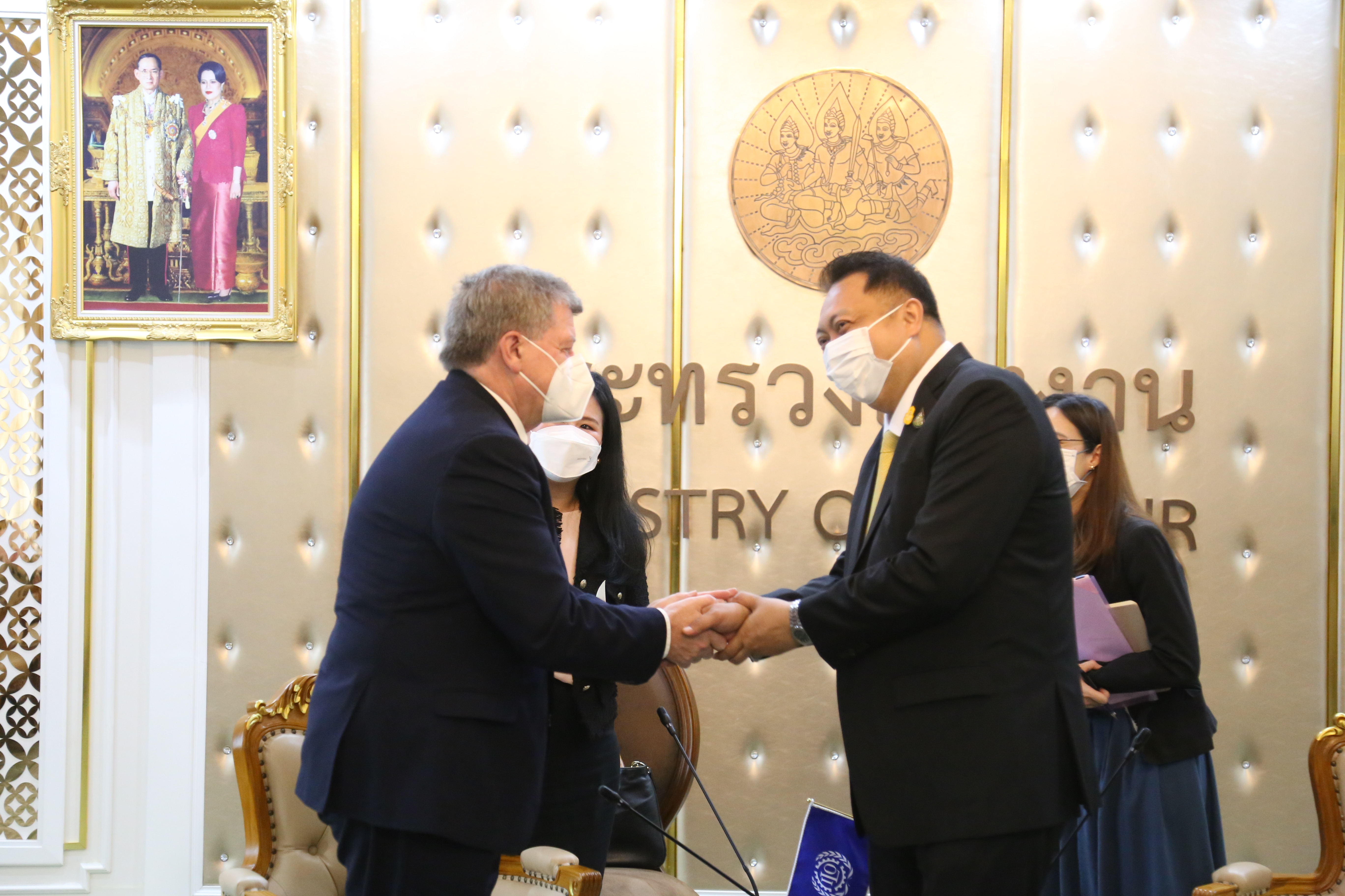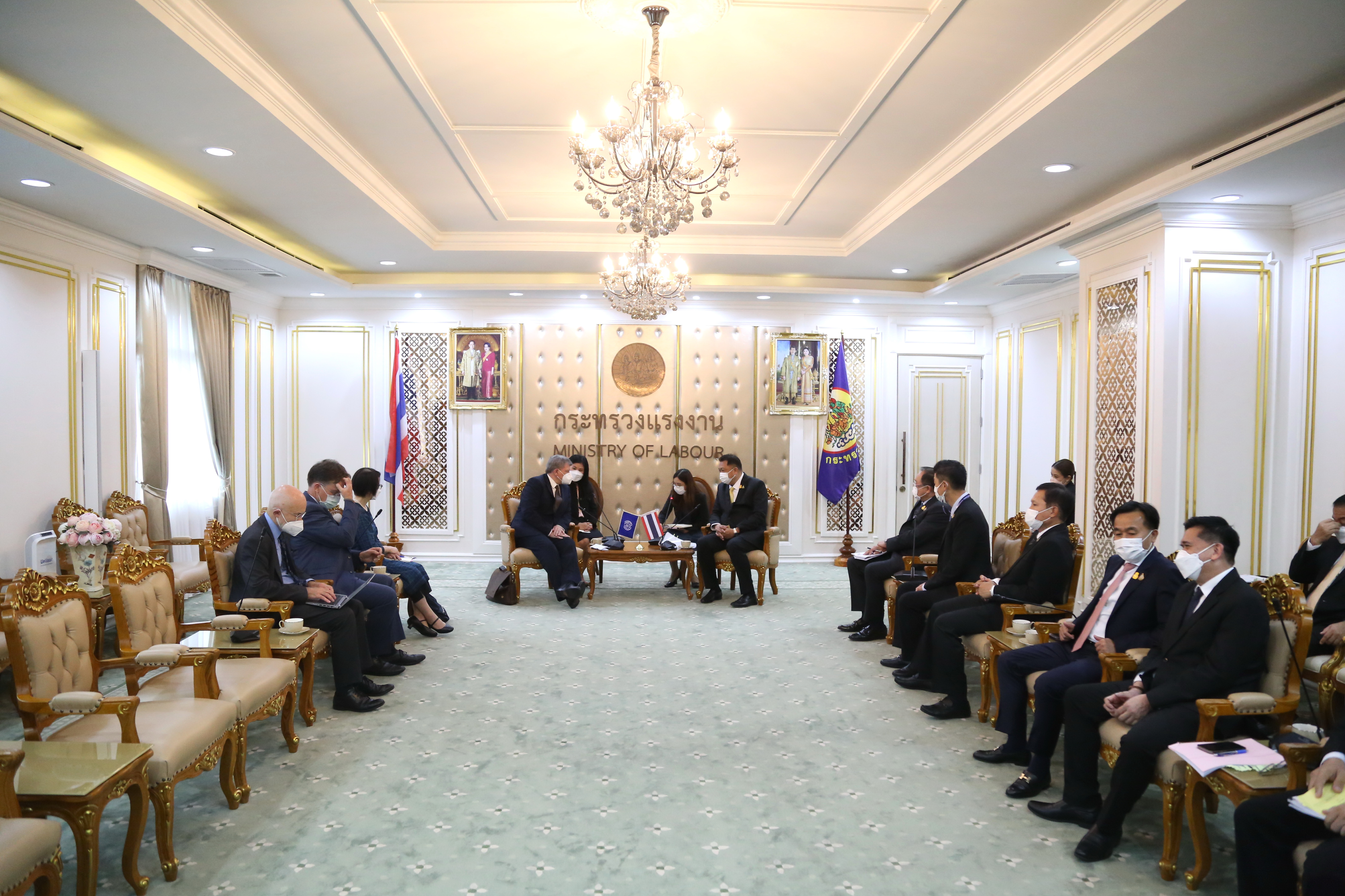 วันที่ 16 กันยายน 2565 เวลา 14.00 น. นายสุชาติ ชมกลิ่น รัฐมนตรีว่าการกระทรวงแรงงาน ให้การต้อนรับ นายกาย ไรเดอร์ (Mr. Guy Ryder) ผู้อำนวยการใหญ่องค์การแรงงานระหว่างประเทศ เข้าเยี่ยมคารวะเนื่องในโอกาสครบวาระการดำรงตำแหน่ง ณ ห้องจัตุมงคล ชั้น 6 อาคารกระทรวงแรงงาน