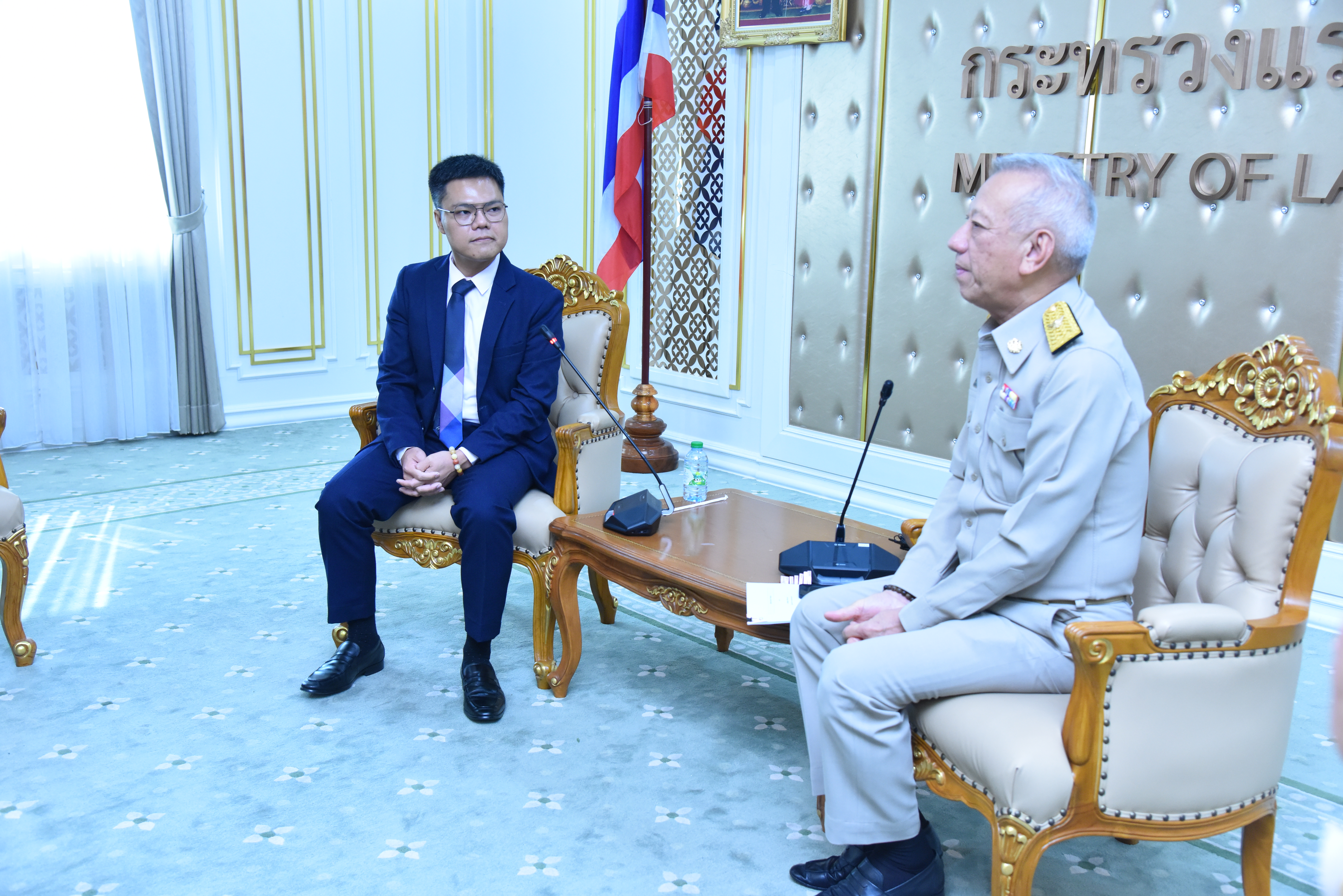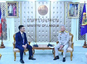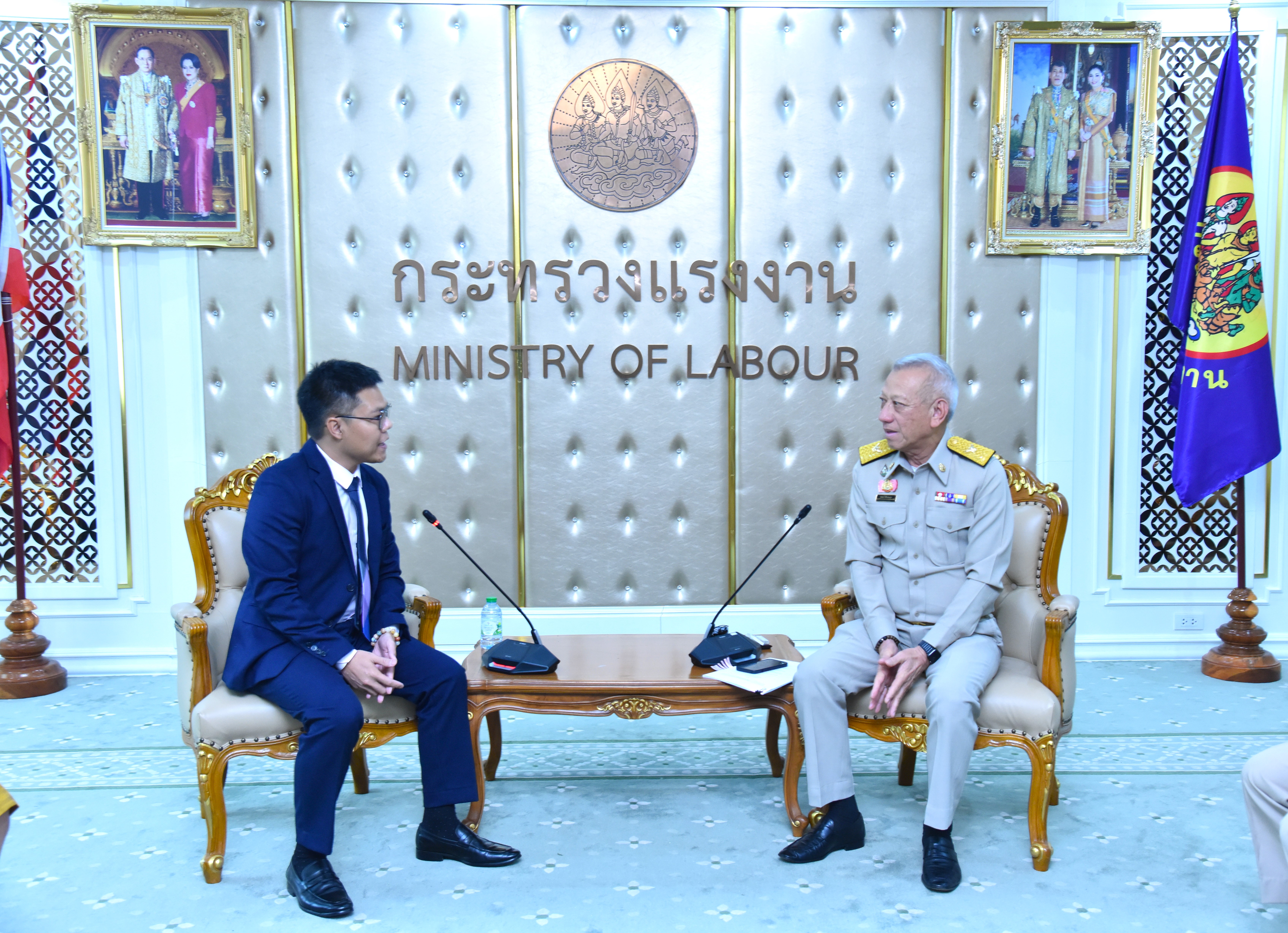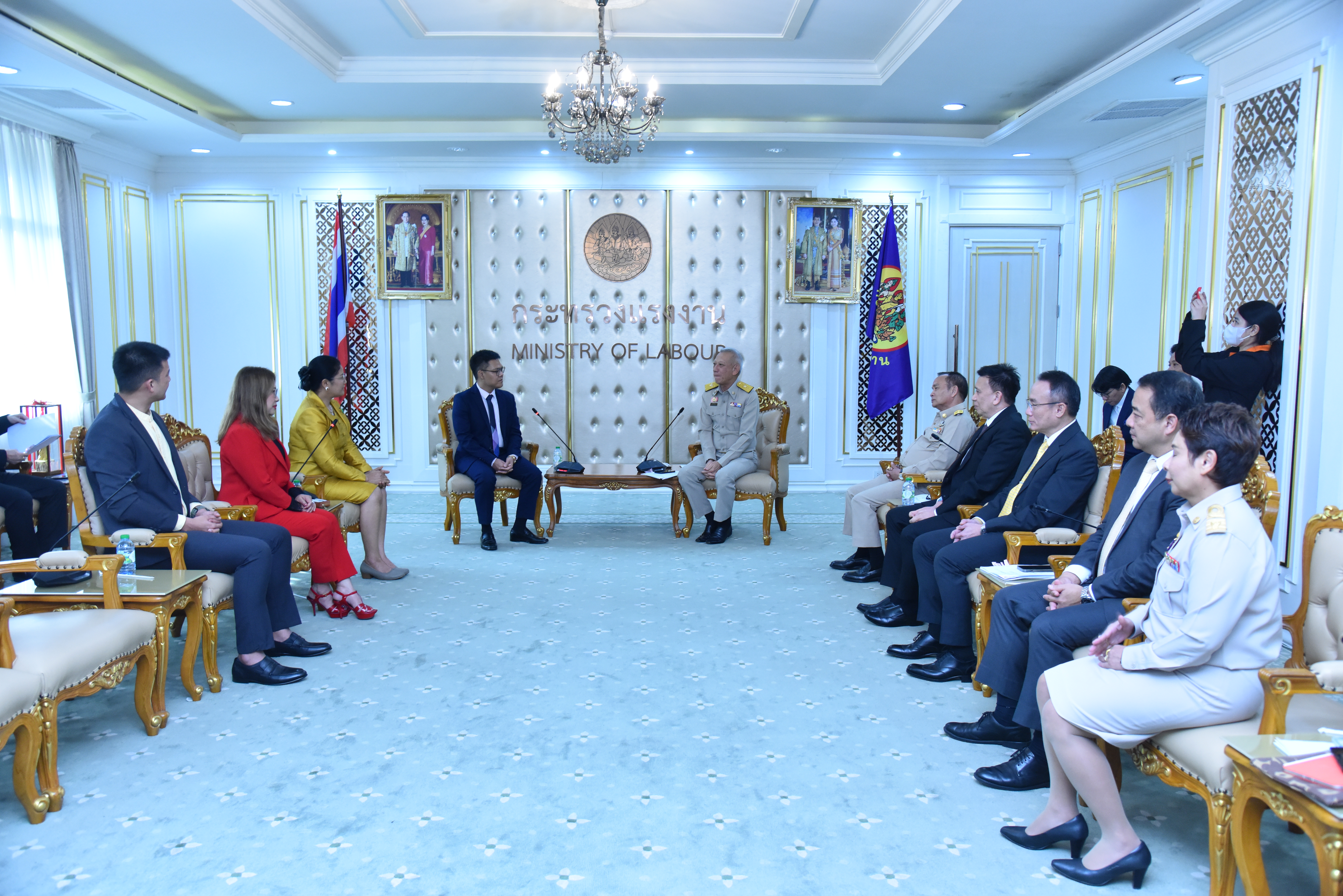 On January 8, 2024, at 15.00 hours, the Labour Minister, Mr. Phiphat Ratchakitprakarn, welcomed the President of the Trade Association of Labour Contractors, Ms. Isaree Phakhansawat and the delegation on meeting with the Labour Minister to congratulate him on taking office and supporting public relations efforts to heal the mind and build relationships among Thai workers, including those returning from Israel who may have been in distress from the war disaster. They also provided information on benefits and assistance measures for Thai workers returning from Israel due to the war. The Secretariat to the Labour Minister, Mr. Aree Krainara, the Permanent Secretary of Labour, Mr. Phairoj Chotikasatian, the Department of Employment’s Director-General, Mr. Somchai Morakotsriwan, the Ministry of Labour’s Inspector-General, Mr. Samat Pattamasukon, and the Ministry of Labour’s executives joined in giving a welcome at the Chatumongkol Room, 6th floor, Ministry of Labour.
