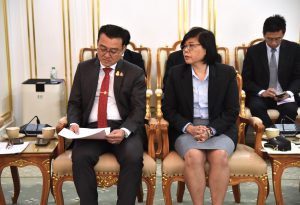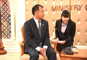 The President of Aisin Asia Pacific Co., Ltd., ASEAN Headquarters, Mr. Noriyuki Kitasato, thanked the Labour Minister for the opportunity to meet and discuss the current labour situation. Aisin Asia Pacific Company Limited has over 13,000 employees working in Thailand. The company is always aware that when operating a business in Thailand, the workforce is of utmost importance. The company trains its employees and sends them to Japan for training to develop the company. There are some matters that the company cannot handle on its own, such as taking care of visa application documents. In this matter, the company asked for assistance from the government sector to work together. As for cooperation in developing the workforce’s potential, the company is willing to continue to cooperate closely with the Ministry of Labour in this matter.