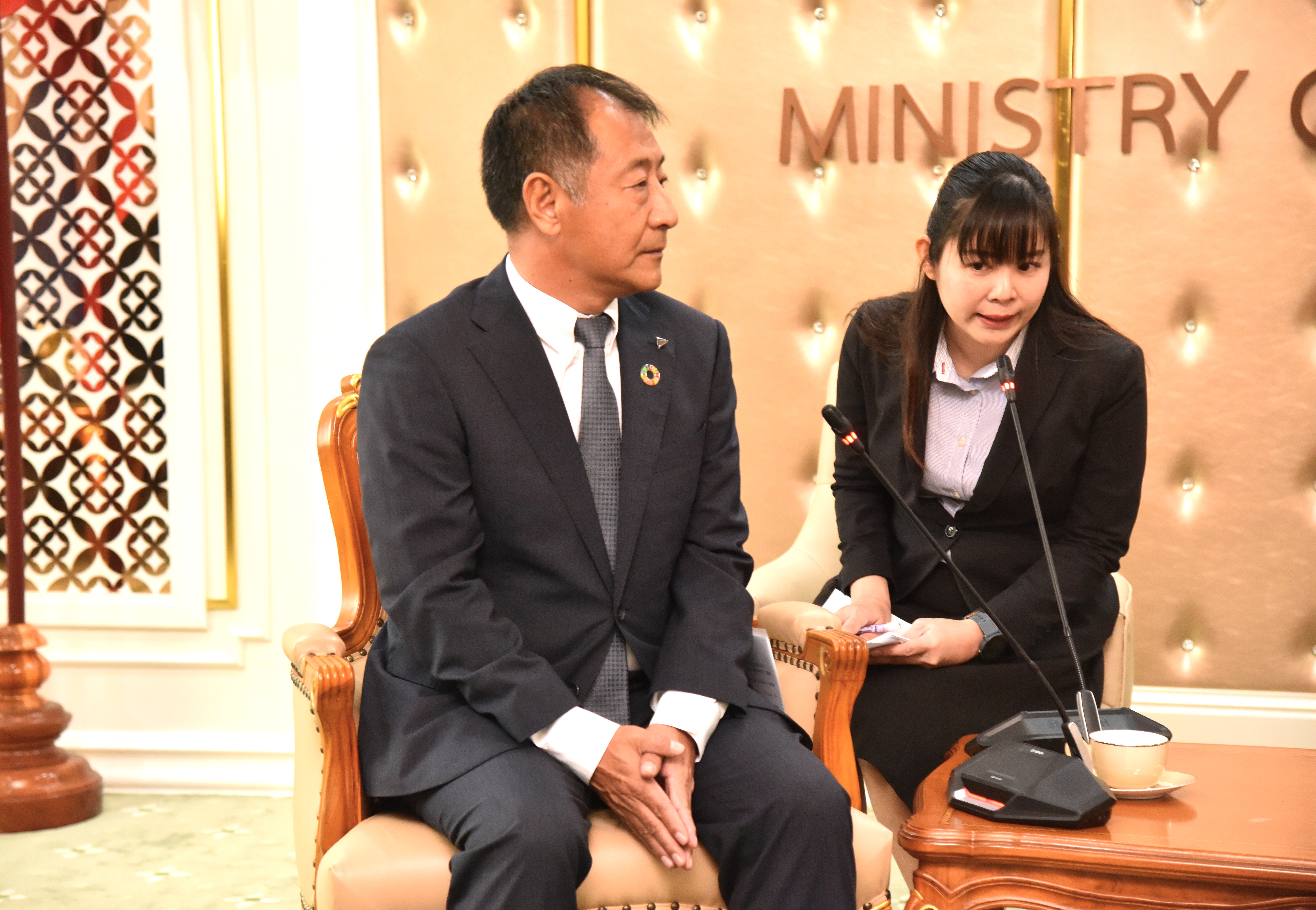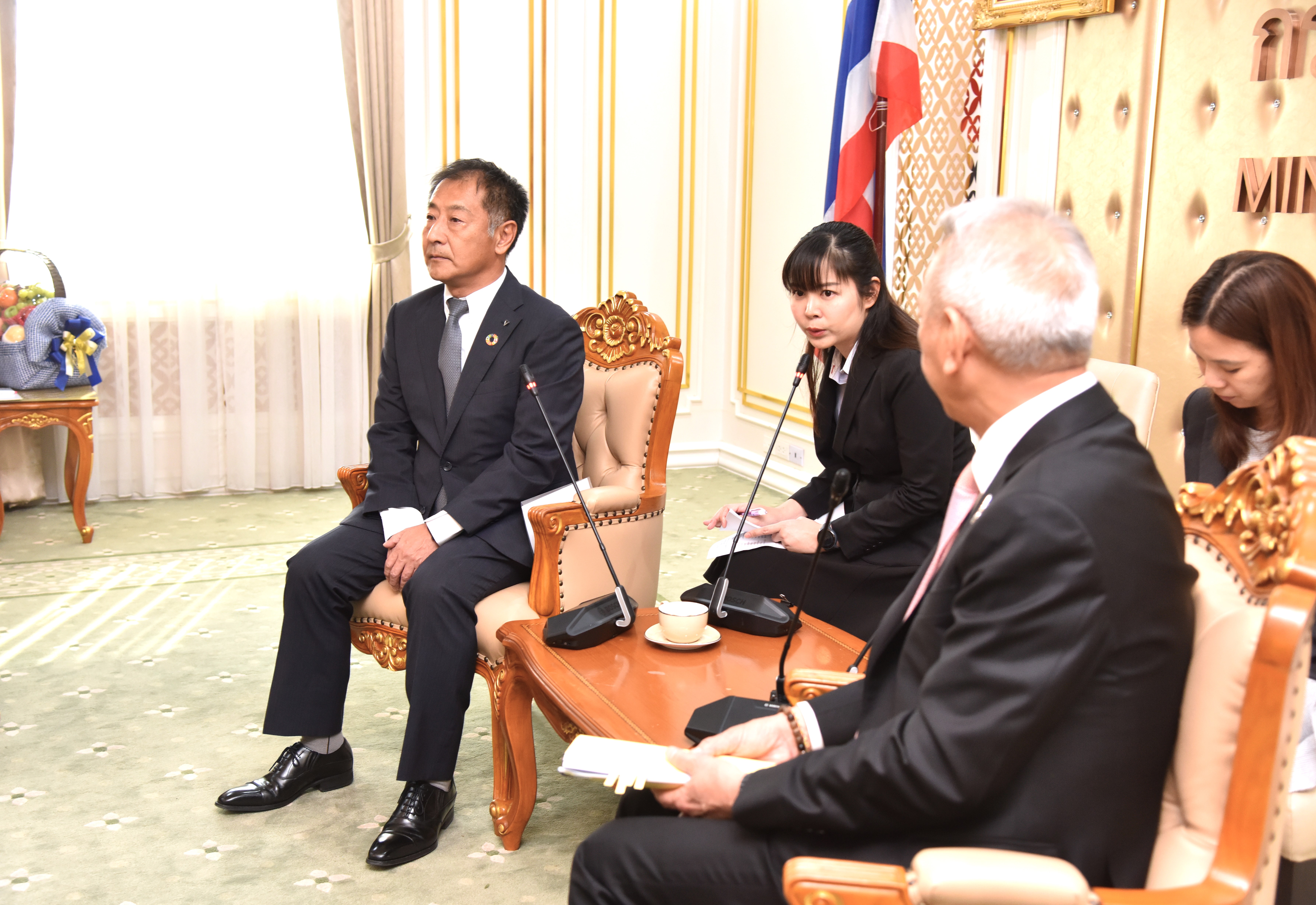 On January 11, 2024, the Labour Minister, Mr. Phiphat Ratchakitprakarn, welcomed the President of Aisin Asia Pacific Co., Ltd., ASEAN Headquarters, Mr. Noriyuki Kitasato, and his team on a courtesy call to discuss preparations to support the expansion of the production base and switch the production base to start production in automotive parts for electric vehicles (EV) in the future. They also discussed the current labour situation in promoting skill development, including guidelines for solving labour shortages in the future. The Labour Minister’s Advisor, Mr. Thanat Thaweekueakulkit, Secretariat to the Labour Minister, Mr. Aree Krainara, from the Prime Minister’s Secretariat’s Office, performing duties for the Ministry of Labour, Mr. Phuchong Worasri, the Assistant to the Permanent Secretary of Labour, Ms. Kornjirat Pongjansat, joined in giving a welcome at the Chatumongkol Room, 6th floor, Ministry of Labour.
