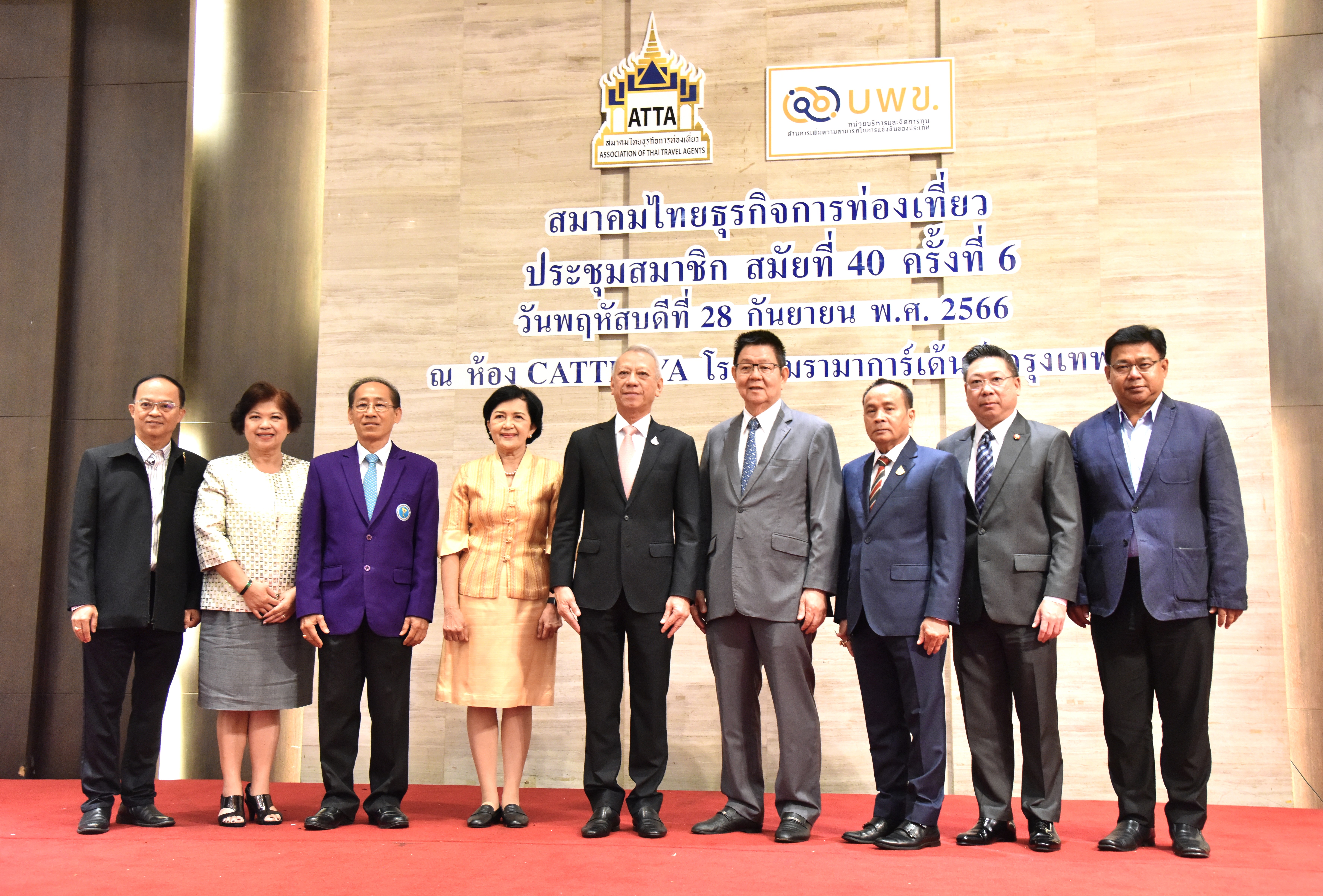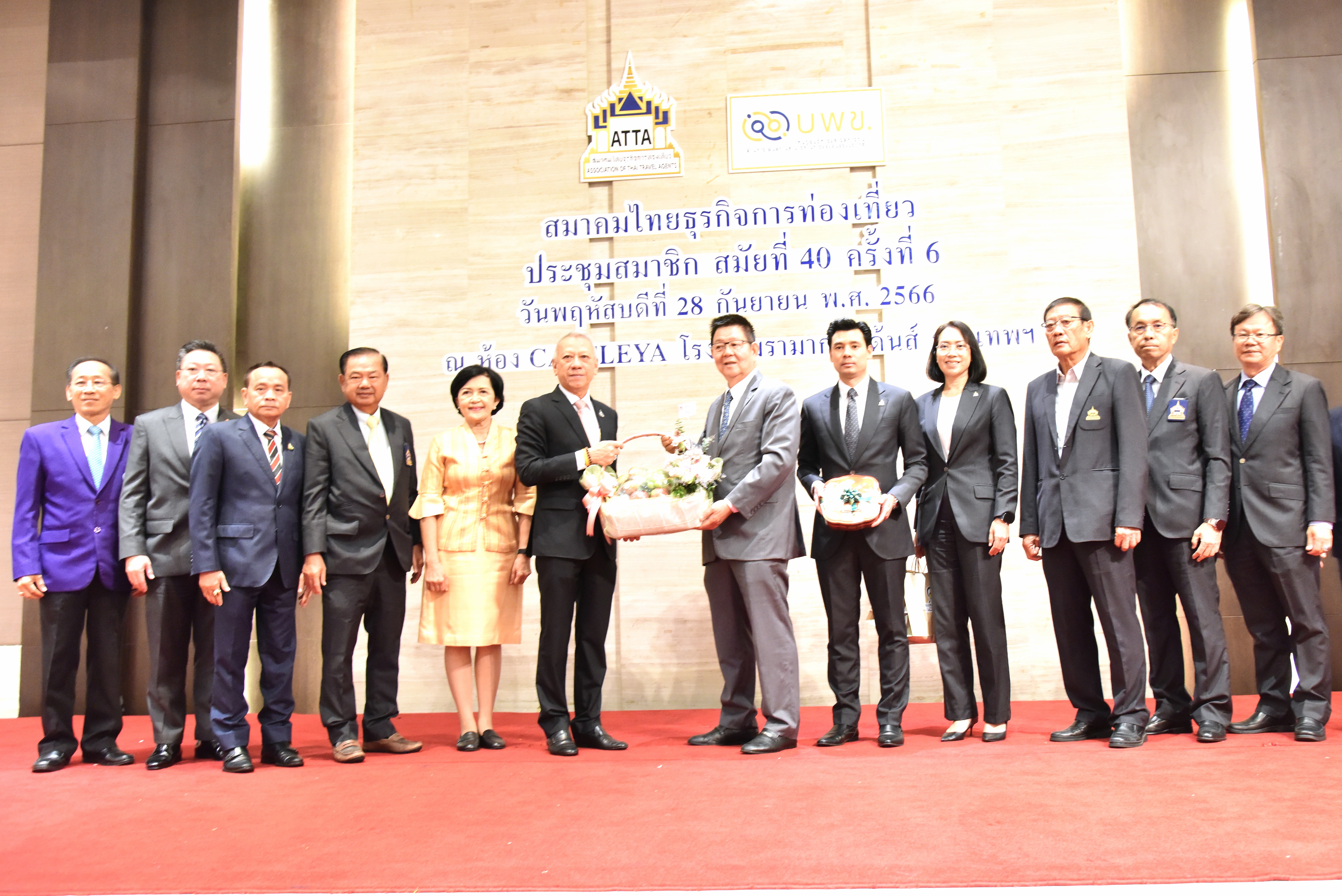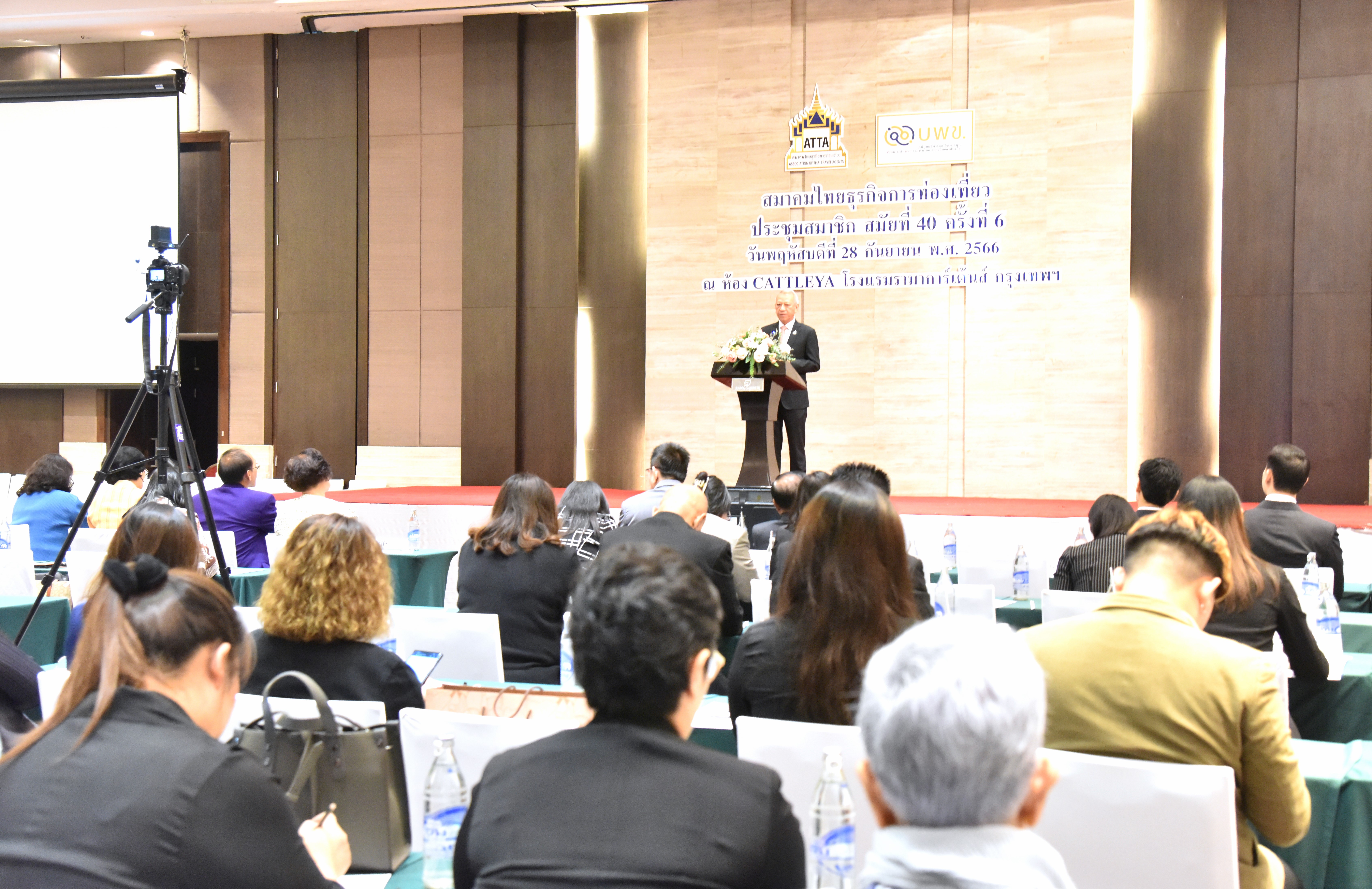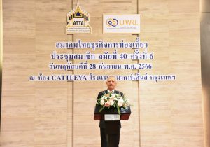 On September 28, 2023, the Labour Minister, Mr. Phiphat Ratchakitprakarn, gave a special speech on upgrading tourism sector workers to promote the tourism industry at the Thai Tourism Association (ATTA) member meeting. Assistant to the Labour Minister, Mr. Siraphop Duangsodsri, the Labour Minister’s Advisor, Mr. Thanat Thaweekueakulkit, the Secretariat to the Labour Minister, Mr. Aree Krainara, from the Prime Minister’s Secretariat’s Office, performing duties for the Ministry of Labour, Mr. Phuchong Worasri, and the Ministry of Labour’s executives participated. President of the Thai Tourism Business Association, Mr. Sittiwat Chewaratanaporn, and tourism association members joined in giving a welcome at the Katreeya Room, Rama Garden Hotel, Vibhavadi Rangsit Road.