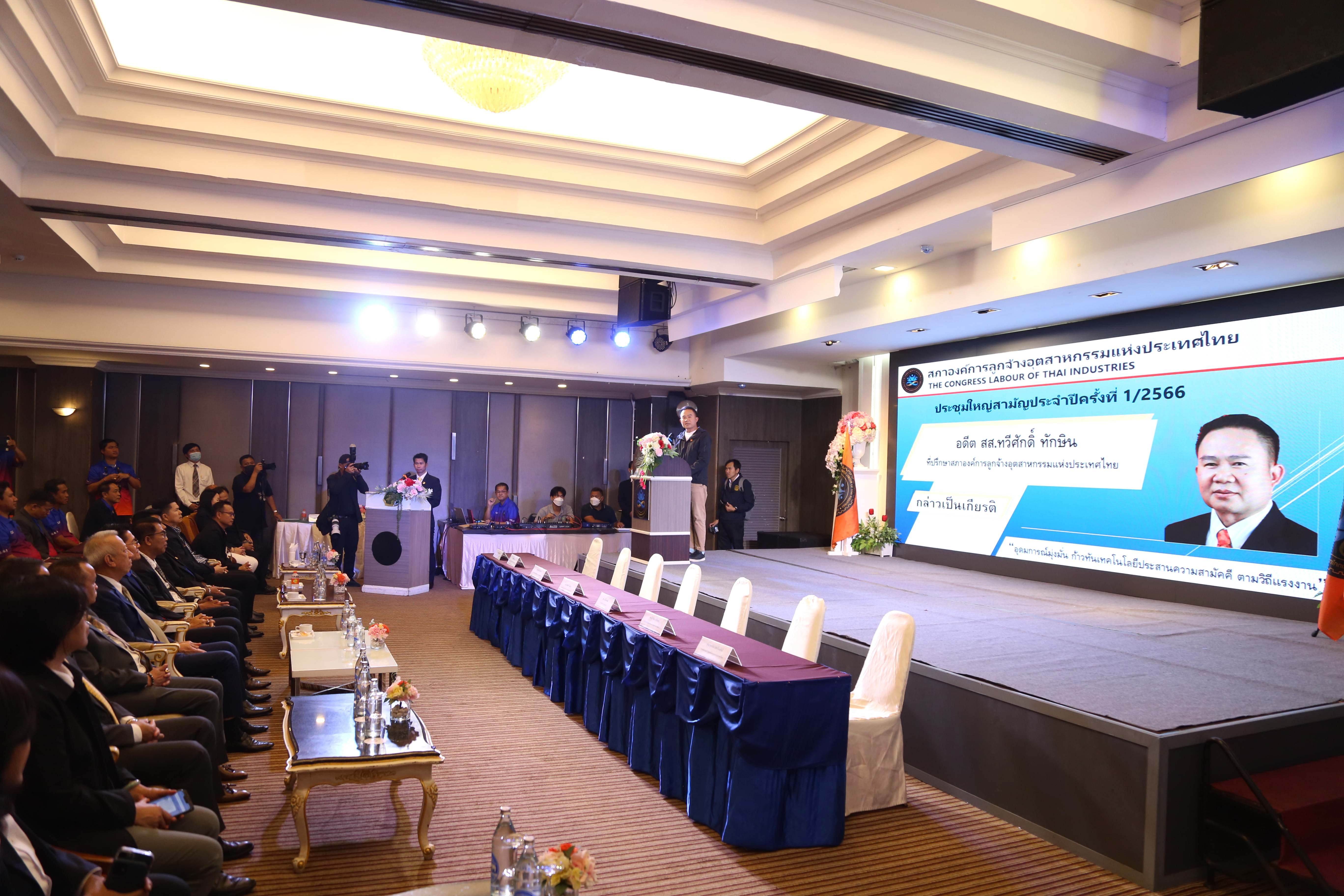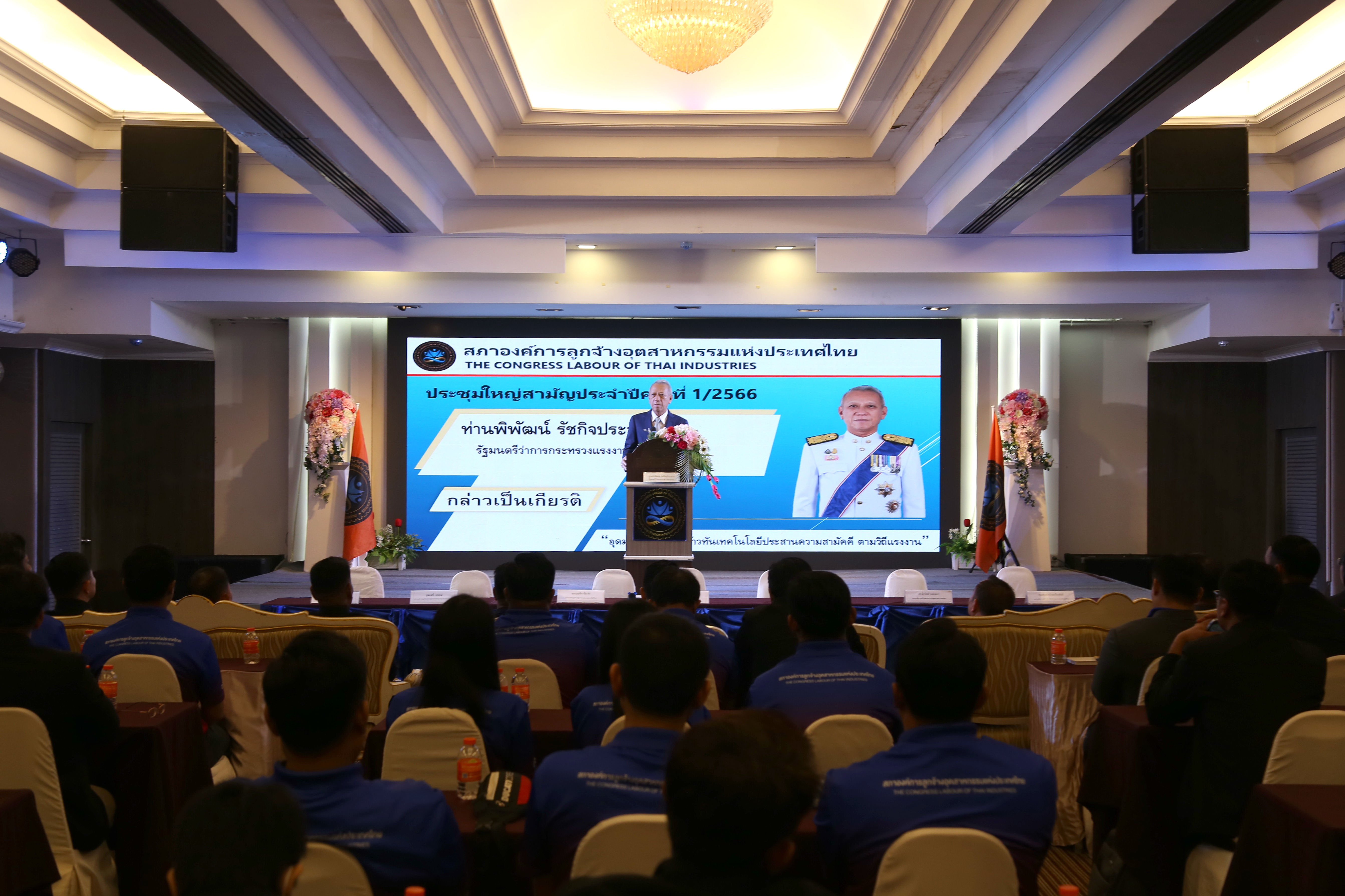 On December 9, 2023, at 13.00 hours, the Labour Minister, Mr. Phiphat Ratchakitprakarn, presided over the opening of the 1st Annual General Meeting of the Industrial Employees Council of Thailand. The Secretariat to the Labour Minister, Mr. Aree Krainara, the Ministry of Labour’s Inspector-General, Mr. Samat Pattamasukon, and the Department of Labour Protection and Welfare’s Deputy Director-General, Ms. Kanchana Poonkaew, also participated in honour. The Chairman of the Industrial Employees Council of Thailand, Mr. Piyarat Samatha, and executives from the Industrial Employees Council of Thailand joined in giving a welcome at the King Park Avenue Hotel, Srinakarin, Bangkok.