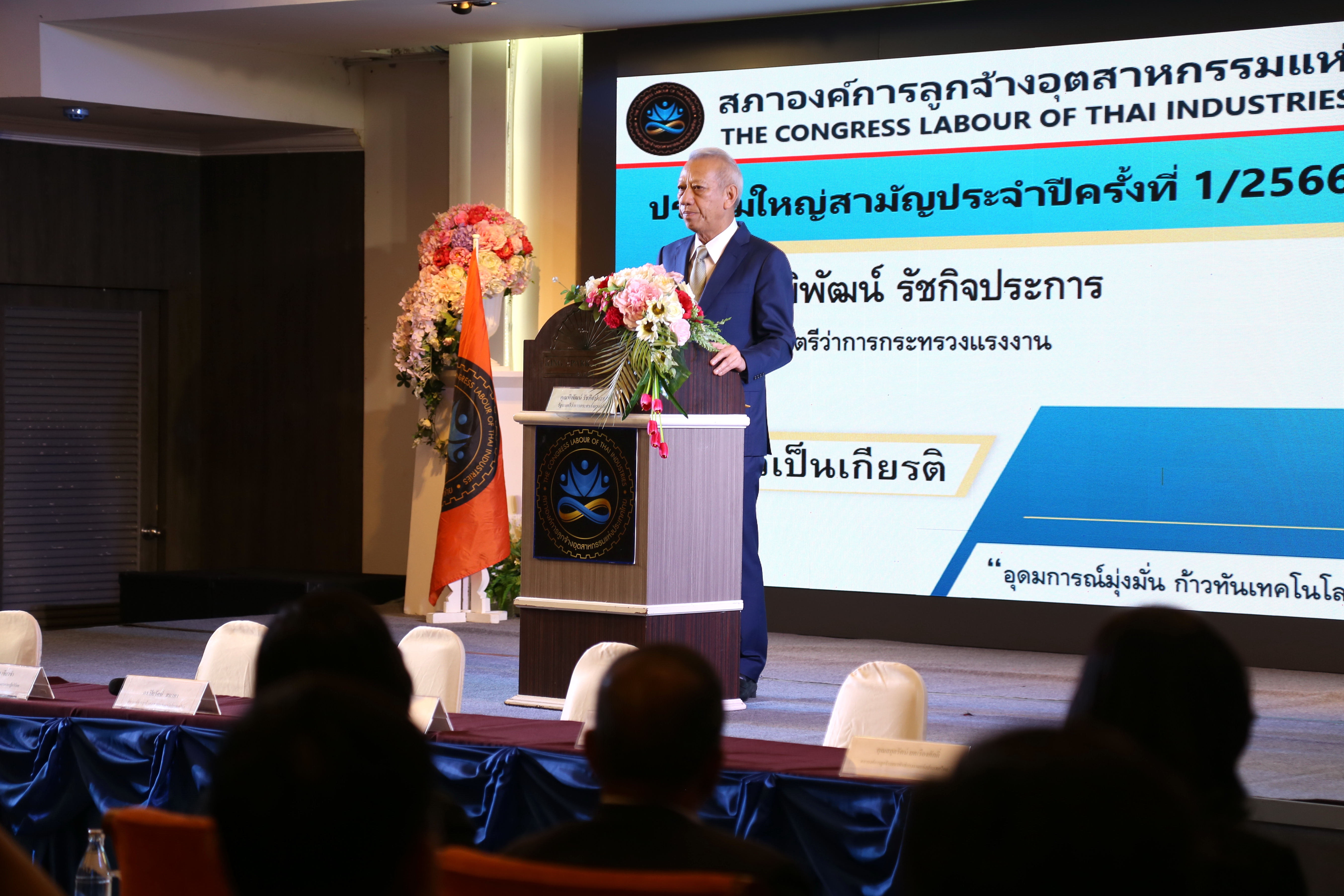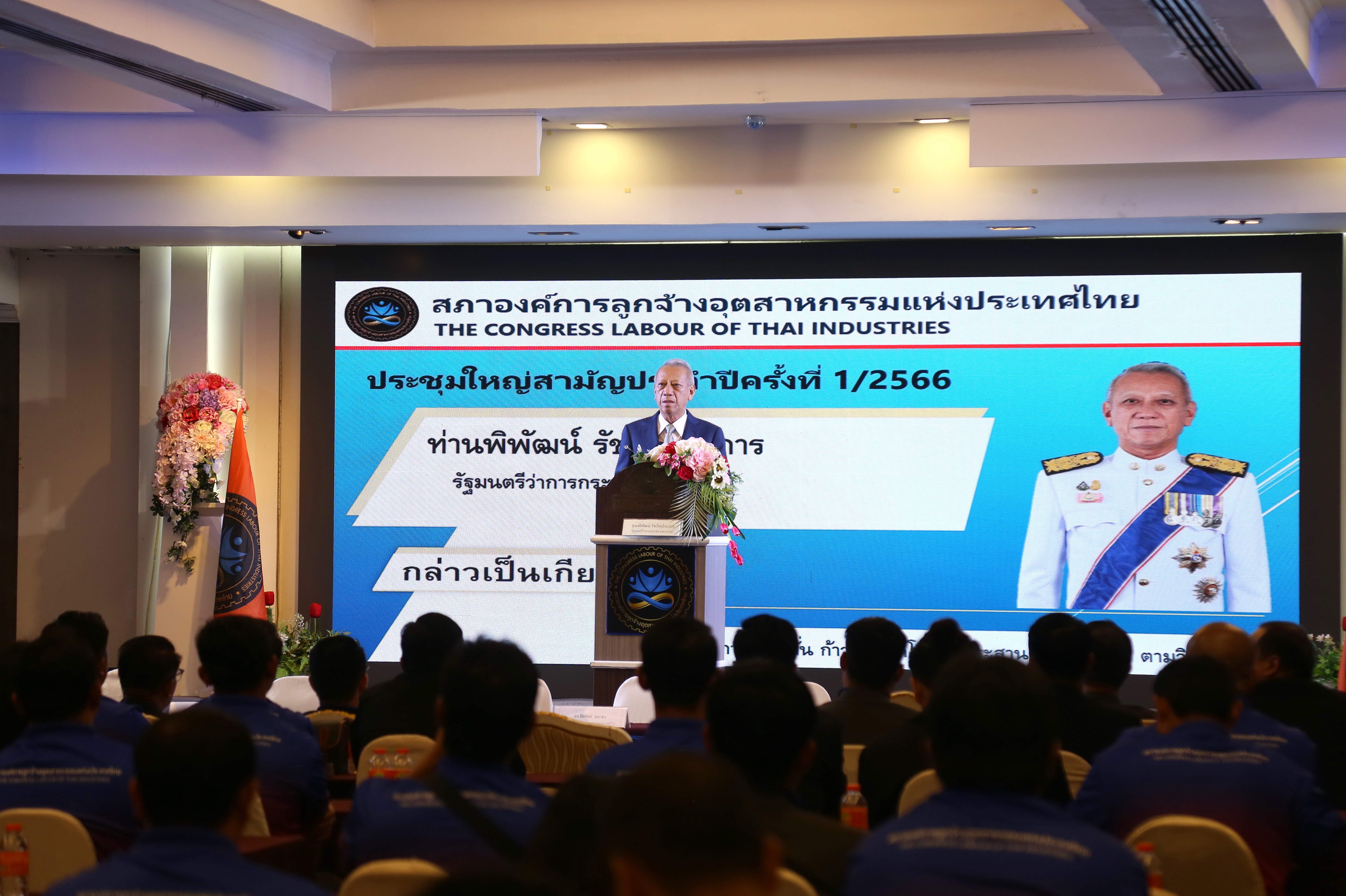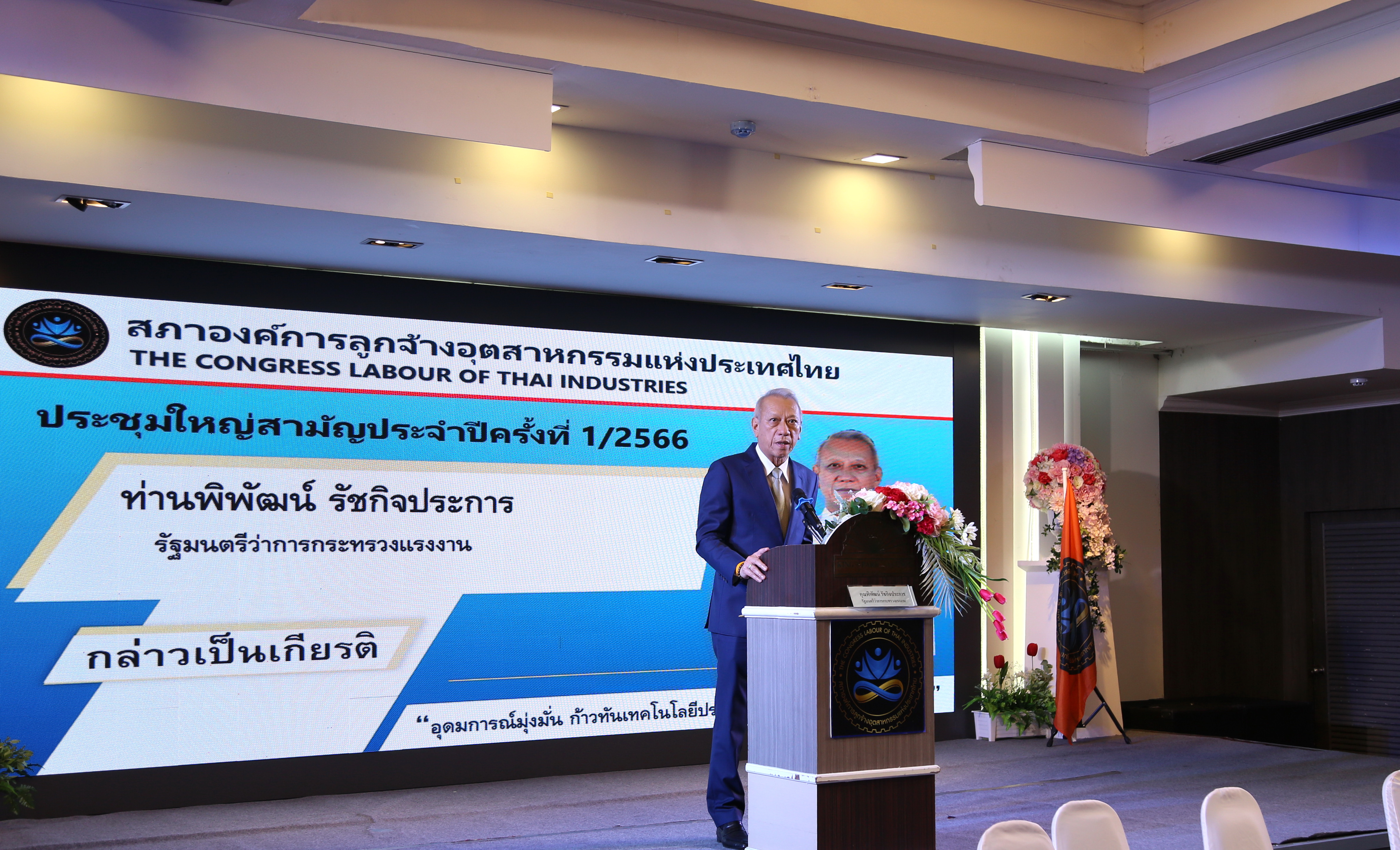 วันที่ 9 ธันวาคม 2566 เวลา 13.00 น.นายพิพัฒน์ รัชกิจประการ รัฐมนตรีว่าการกระทรวงแรงงาน เป็นประธานกล่าวเปิดการประชุมใหญ่สามัญประจำปีสภาองค์การลูกจ้างอุตสาหกรรมแห่งประเทศไทย ครั้งที่ 1 โดยมี นายอารี ไกรนรา เลขานุการรัฐมนตรีว่าการกระทรวงแรงงาน นายสมาสภ์ ปัทมะสุคนธ์ ผู้ตรวจราชการกระทรวงแรงงาน นางสาวกาญจนา พูลแก้ว รองอธิบดีกรมสวัสดิการและคุ้มครองแรงงาน เข้าร่วมเป็นเกียรติ คุณปิยรัชต์ สมาทา ประธานสภาองค์การลูกจ้างอุตสาหกรรมแห่งประเทศไทย และคณะกรรมการบริหารสภาองค์การลูกจ้างอุตสาหกรรมแห่งประเทศไทย ร่วมให้การต้อนรับ ณ โรงแรมคิงปาร์ค อเวนิว ศรีนครินทร์ กรุงเทพมหานคร