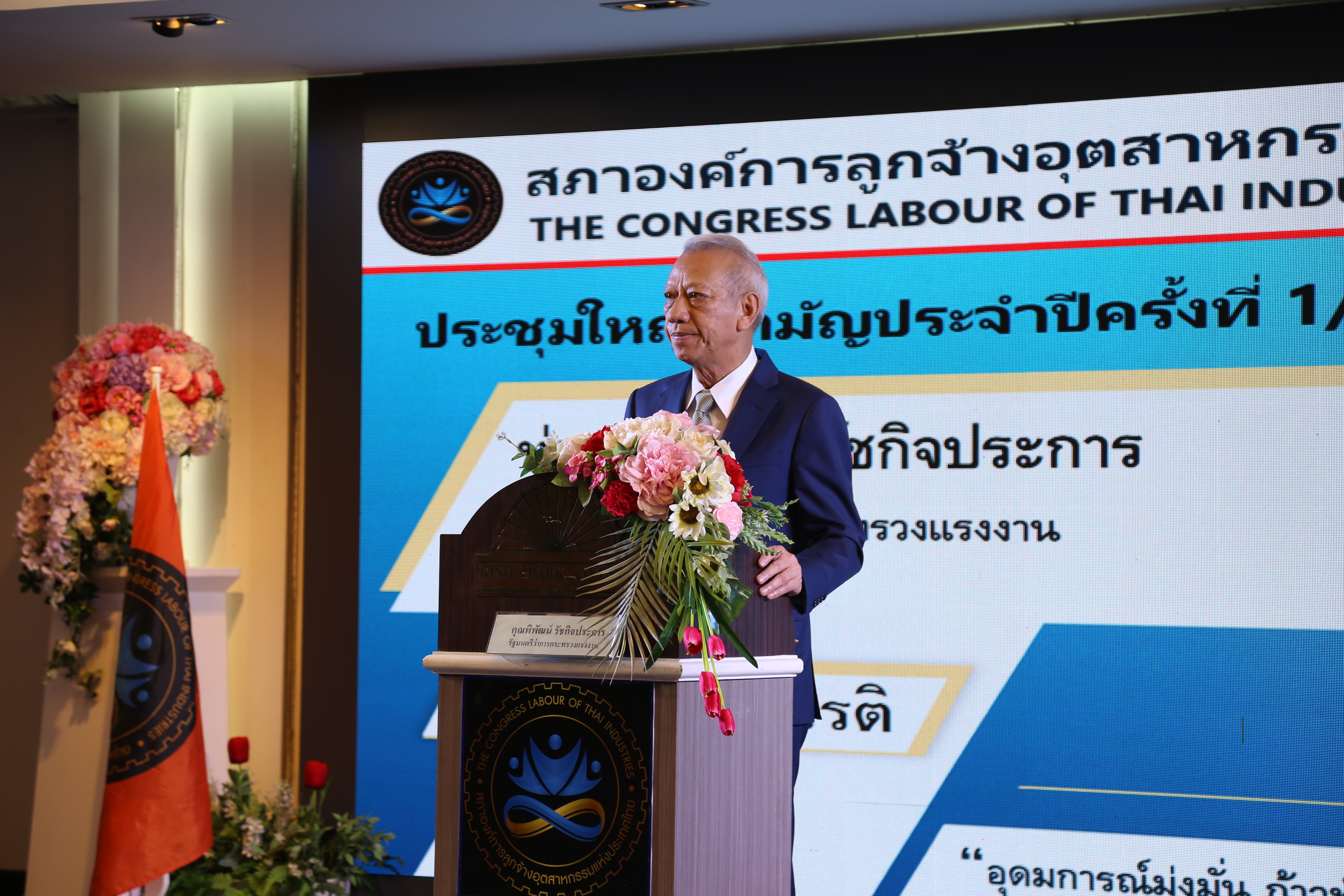 Mr. Phiphat continued that he hoped the Industrial Employees Council of Thailand would maintain unity and adhere to the principles of good labour relations to develop and strengthen the workforce so that the country’s automotive industry could stand firm and move forward together firmly. This will bring about the economic strength of the country and create mutual benefits for both employers and employees. On the occasion of the 1st Annual General Meeting of the Industrial Employees Council of Thailand today, he wished success for the meeting to meet its set objectives, for the organization to be strengthened, and for the administration of the Industrial Employees Council of Thailand to progress and maintain good labour relations for stability and sustainability, peace, and harmony.