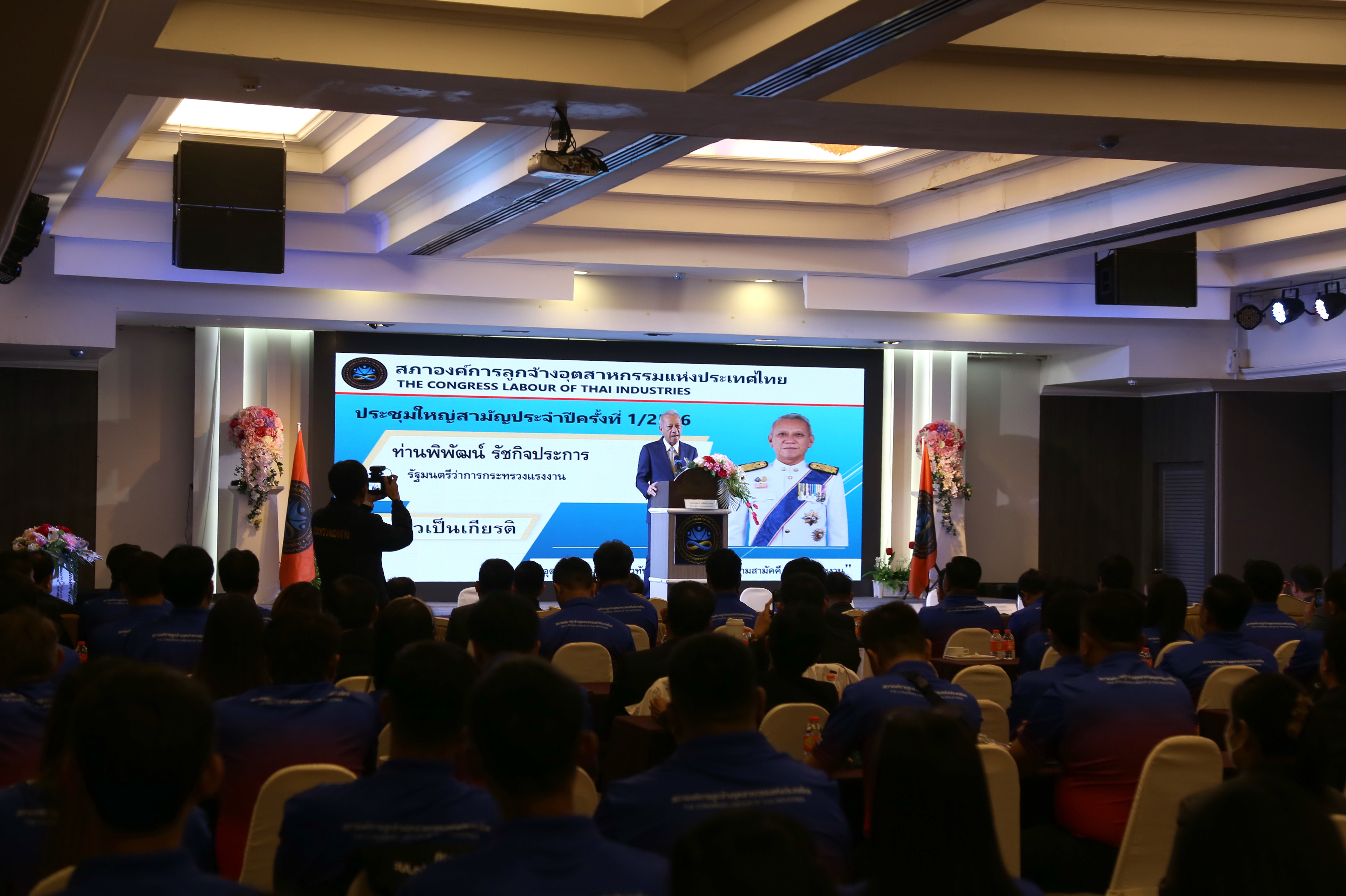 นายพิพัฒน์ กล่าวว่า ในนามของกระทรวงแรงงาน ขอขอบคุณสภาองค์การลูกจ้างอุตสาหกรรมแห่งประเทศไทย ที่ให้เกียรติเชิญมาร่วมกล่าวเป็นเกียรติในการประชุมใหญ่สามัญประจำปี ครั้งที่ 1 ของสภาองค์การลูกจ้างอุตสาหกรรมแห่งประเทศไทย ในวันนี้ สภาองค์การลูกจ้างอุตสาหกรรมแห่งประเทศไทย เป็นองค์กรแรงงานที่จัดตั้งขึ้นจากการรวมตัวของสหภาพแรงงานในกิจการประเภทอุตสาหกรรมยานยนต์ และผลิตชิ้นส่วนรถยนต์ โดยคณะกรรมการบริหารและบรรดาสมาชิกร่วมมือร่วมใจบริหารงานด้วยความความสามัคคีปรองดองเป็นอันหนึ่งอันเดียวกัน จนทำให้สภาองค์การลูกจ้างอุตสาหกรรมแห่งประเทศไทย เป็นองค์กรแรงงานที่เติบโตขึ้นอย่างรวดเร็ว โดยมีสหภาพแรงงานเข้าเป็นสมาชิก จำนวนถึง 32 แห่ง เกี่ยวข้องกับลูกจ้างและพี่น้องผู้ใช้แรงงานกว่า 20,000 คน ภายในระยะเวลาไม่ถึงหนึ่งปีของการจัดตั้งและมีแนวโน้มว่าในอนาคต สภาองค์การลูกจ้างอุตสาหกรรมแห่งประเทศไทย จะพัฒนาก้าวสู่การเป็นองค์กรแรงงานที่เข้มแข็ง เป็นเสาหลักให้กับสหภาพแรงงานในสังกัด โดยการยึดหลักการแรงงานสัมพันธ์เชิงสร้างสรรค์มีการปรึกษาหารือร่วมกับนายจ้าง เพื่อแก้ไขปัญหาต่างๆ บนพื้นฐานของหลักการแรงงานสัมพันธ์ที่ดีอันมีความสำคัญที่ช่วยส่งเสริมและสนับสนุนให้สถานประกอบกิจการ สามารถขับเคลื่อนไปข้างหน้าได้อย่างมั่นคง ควบคู่กับการมีสภาพการจ้างและคุณภาพชีวิตที่ดีของลูกจ้าง