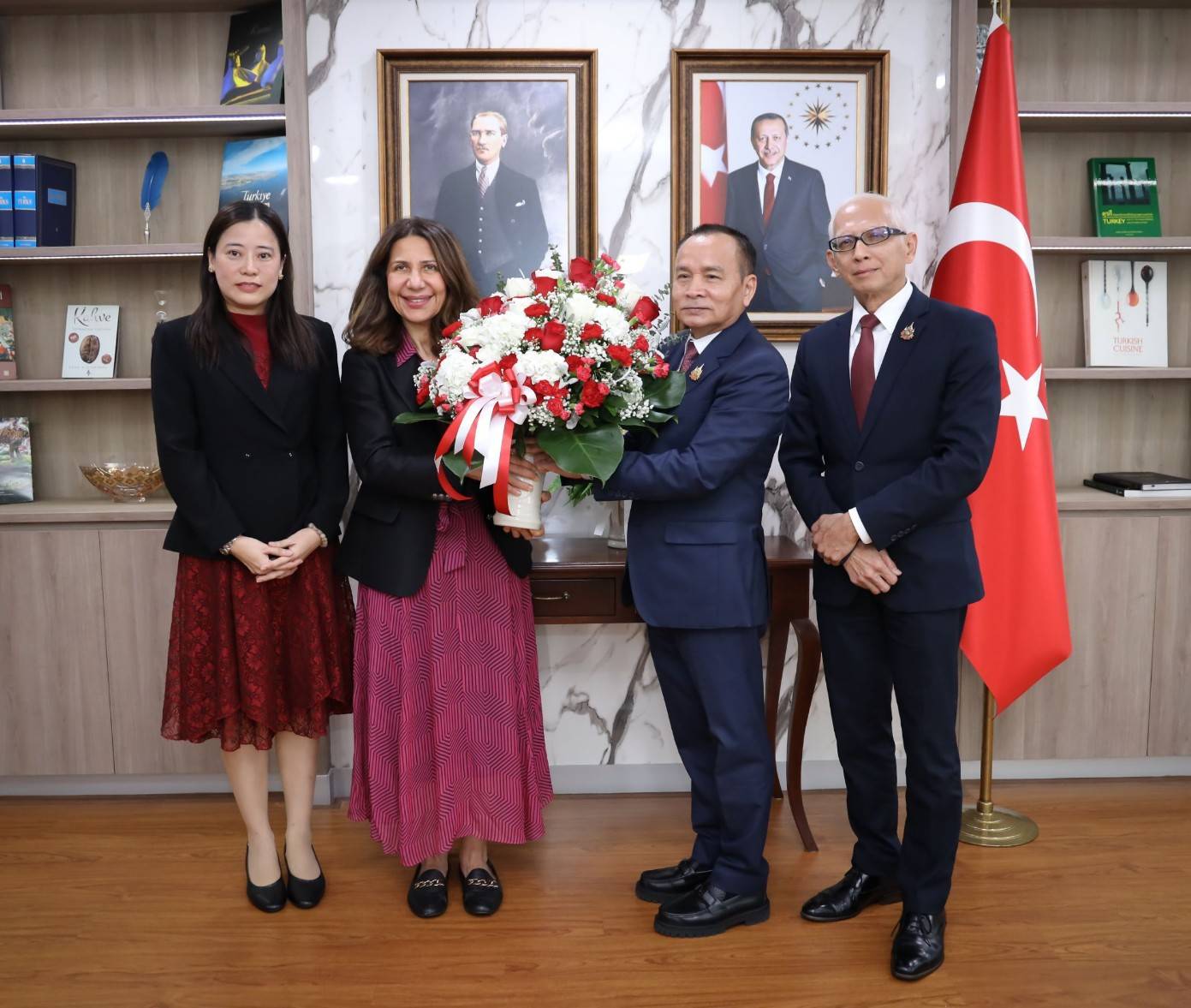 วันที่ 25 ตุลาคม 2567 เวลา 11.00 น. นายพิพัฒน์ รัชกิจประการ รัฐมนตรีว่าการกระทรวงแรงงาน มอบหมายให้ นายอารี ไกรนรา เลขานุการรัฐมนตรีว่าการกระทรวงแรงงาน เป็นผู้แทนมอบกระเช้าดอกไม้ร่วมแสดงความยินดีเนื่องในงานวันชาติตุรกี โดยมี นางแซรัป แอร์ซอย (Serap Ersoy) เอกอัครราชทูตสาธารณรัฐตุรกีประจำประเทศไทย เป็นผู้รับมอบและให้การต้อนรับ ณ อาคารเอ็มไพร์ ทาวเวอร์ สาทร กรุงเทพมหานคร