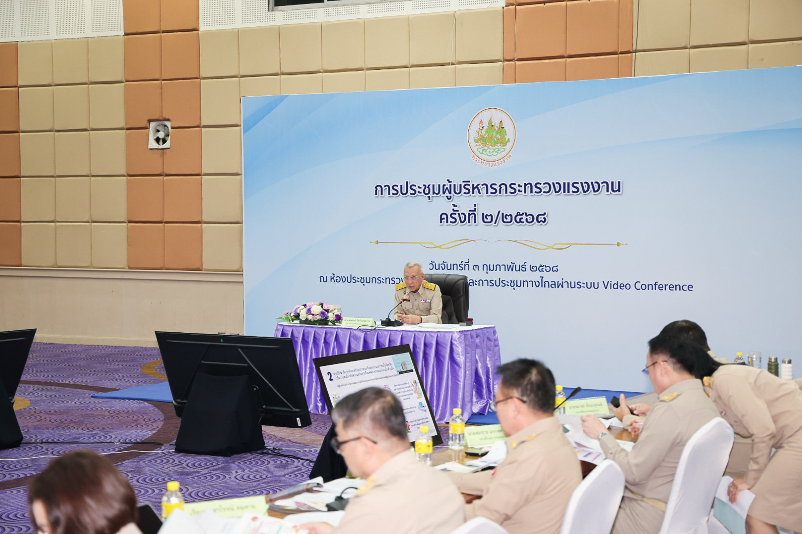 วันที่ 3 กุมภาพันธ์ 2568 เวลา 14.00 น. นายพิพัฒน์ รัชกิจประการ รัฐมนตรีว่าการกระทรวงแรงงาน เป็นประธานการประชุมผู้บริหารกระทรวงแรงงาน ครั้งที่ 2/2568 โดยมี นายอารี ไกรนรา เลขานุการรัฐมนตรีว่าการกระทรวงแรงงาน นายภุชงค์ วรศรี ประจำสำนักเลขาธิการนายกรัฐมนตรี ปฏิบัติหน้าที่ประจำกระทรวงแรงงาน นายบุญสงค์ ทัพชัยยุทธ์ ปลัดกระทรวงแรงงาน นายสมาสภ์ ปัทมะสุคนธ์ รองปลัดกระทรวงแรงงาน นายณัฐวุฒิ ภัทรประยูร จัดหางานจังหวัดร้อยเอ็ด รักษาการในตำแหน่งที่ปรึกษาวิชาการแรงงาน นายเกริกไกร นาสมยนต์ ผู้ตรวจราชการกรม กรมสวัสดิการและคุ้มครองแรงงาน รักษาการในตำแหน่งที่ปรึกษากฎหมาย นางสาวกรจิรัฏฐ์ พงจันทร์ศธร ผู้ช่วยปลัดกระทรวงแรงงาน นายศักดินาถ สนธิศักดิ์โยธิน ผู้ช่วยปลัดกระทรวงแรงงาน พร้อมด้วยผู้บริหารระดับสูงกระทรวงแรงงาน และหน่วยงานในสังกัดกระทรวงแรงงานทั้งส่วนกลาง ส่วนภูมิภาค และต่างประเทศ เข้าร่วมประชุม ณ ห้องประชุมกระทรวงแรงงาน ชั้น 5 อาคารกระทรวงแรงงาน และผ่านสื่ออิเล็กทรอนิกส์