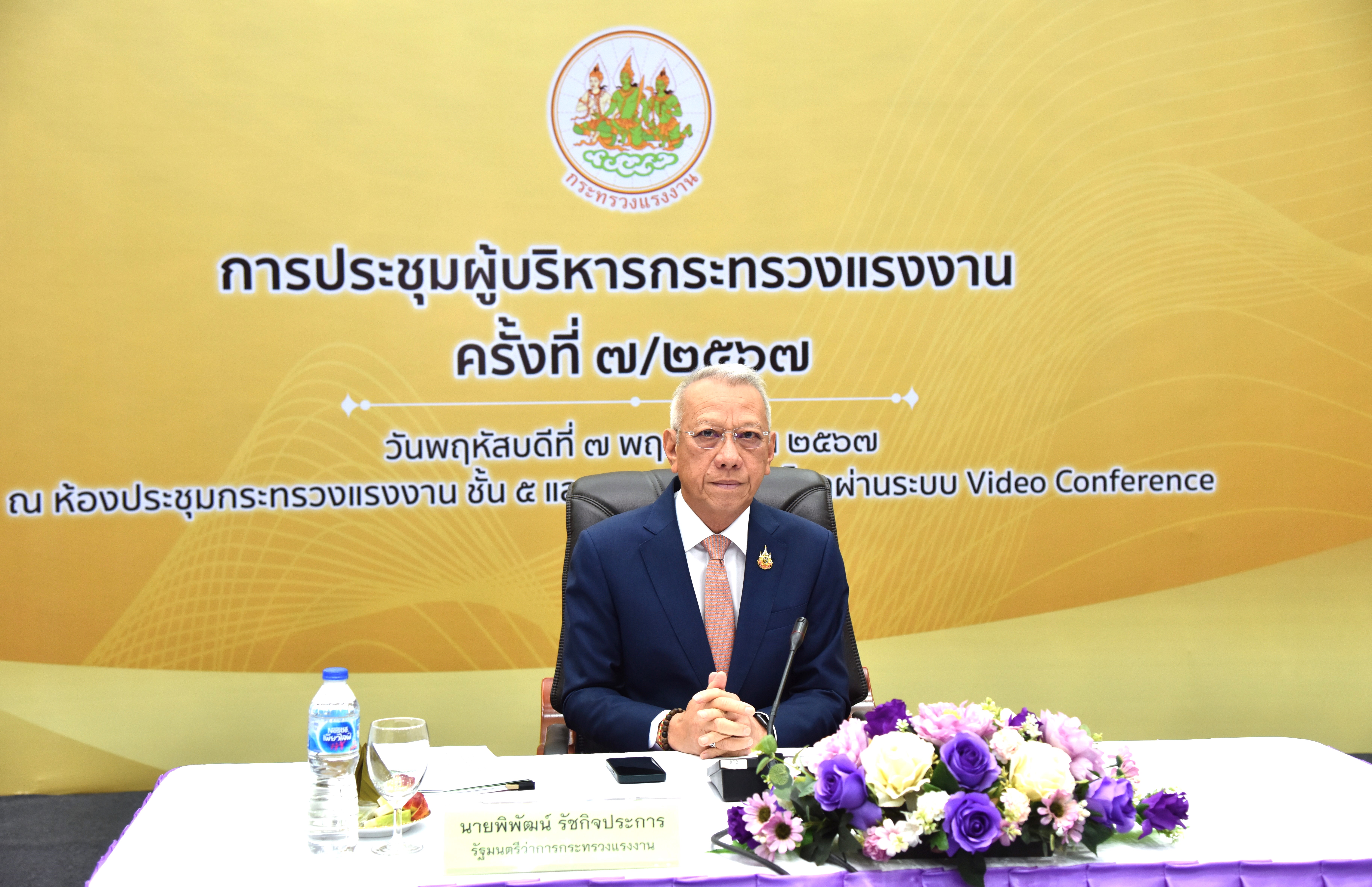 วันที่ 7 พฤศจิกายน 2567 เวลา 09.30 น. นายพิพัฒน์ รัชกิจประการ รัฐมนตรีว่าการกระทรวงแรงงาน เป็นประธานการประชุมผู้บริหารกระทรวงแรงงาน ครั้งที่ 7/2567 โดยมี นายอารี ไกรนรา เลขานุการรัฐมนตรีว่าการกระทรวงแรงงาน นายบุญสงค์ ทัพชัยยุทธ์ ปลัดกระทรวงแรงงาน พร้อมด้วยผู้บริหารระดับสูงกระทรวงแรงงาน และหน่วยงานในสังกัดกระทรวงแรงงานทั้งส่วนกลาง ส่วนภูมิภาค และต่างประเทศ เข้าร่วมประชุม ณ ห้องประชุม กระทรวงแรงงาน ชั้น 5 อาคารกระทรวงแรงงาน และผ่านสื่ออิเล็กทรอนิกส์