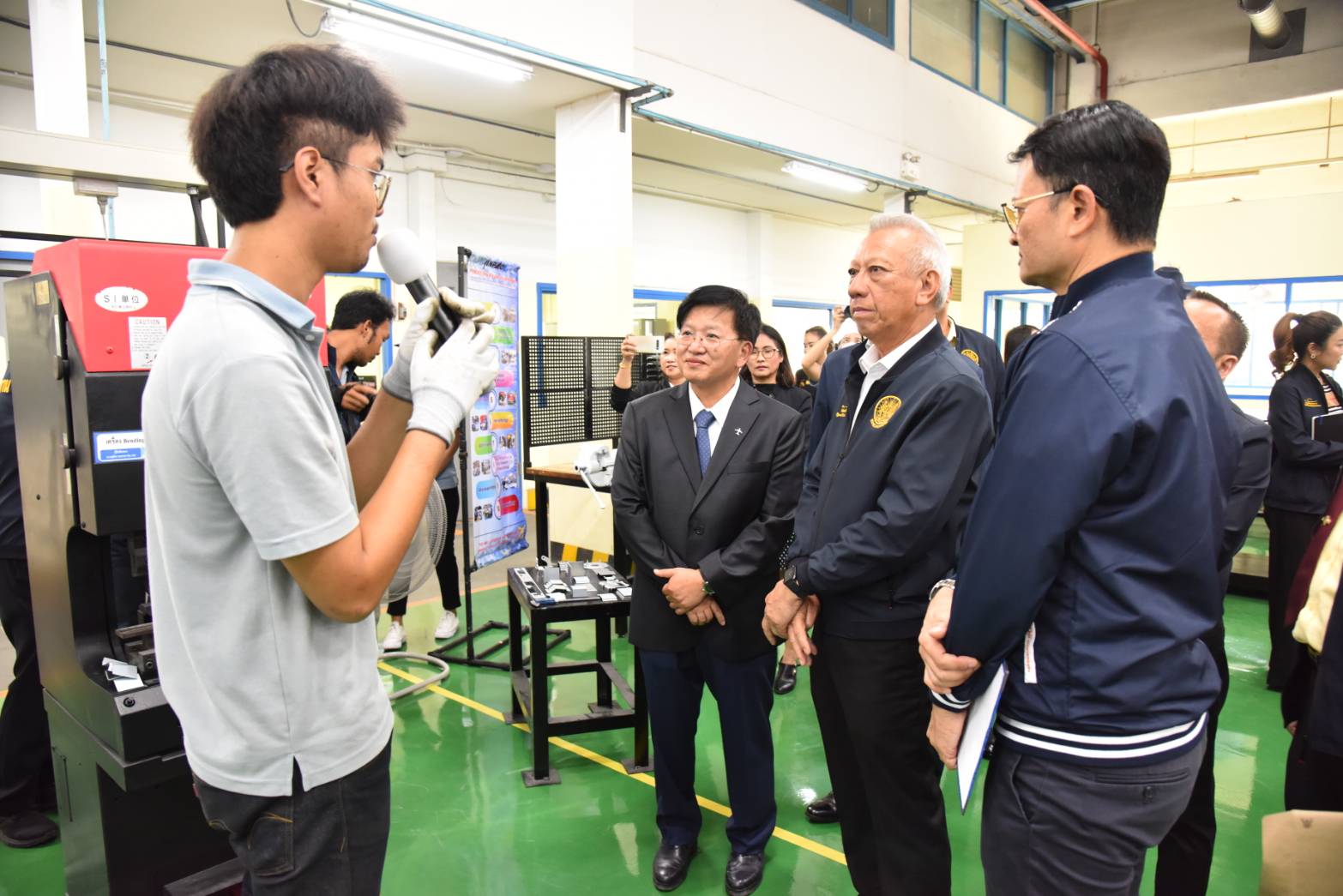 วันที่ 5 กุมภาพันธ์ 2567 เวลา 10.30 น. นายพิพัฒน์ รัชกิจประการ รัฐมนตรีว่าการกระทรวงแรงงาน ตรวจเยี่ยมบริษัท จินป่าว พรีซิชั่น อินดัสทรี่ จำกัด โดยบริษัทแห่งนี้เป็นสถานประกอบกิจการผลิตชิ้นส่วนผลิตภัณฑ์จากอะลูมิเนียม โลหะ เหล็ก และชิ้นส่วนอิเล็กทรอนิกส์ ปัจจุบันมีพนักงาน 1,200 คน ผลิตภัณฑ์ของบริษัท อาทิ ชิ้นส่วนอากาศยาน เครื่องจักรผลิตอาหาร ตู้สื่อสาร เป็นต้น ทั้งนี้ บริษัทได้รับนักศึกษาฝึกงาน เพื่อ Up skill สาขาเกี่ยวกับช่างเชื่อมงานผลิตชิ้นส่วนอากาศยาน โดยมี นายอารี ไกรนรา เลขานุการรัฐมนตรีว่าการกระทรวงแรงงาน นายนันทชัย ปัญญาสุรฤทธิ์ ผู้ตรวจราชการกระทรวงแรงงาน พร้อมด้วยผู้บริหารระดับสูงกระทรวงแรงงาน หัวหน้าส่วนราชการหน่วยงานสังกัดกระทรวงแรงงานจังหวัดสมุทรปราการ เข้าร่วม นายจง กั๋ว โซง (Mr.Chung Kuo – Sung) ประธานบริษัท จินป่าว พรีซิชั่น อินดัสทรี่ จำกัด ผู้บริหารและพนักงาน ร่วมให้การต้อนรับ ณ บริษัท จินป่าว พรีซิชั่น อินดัสทรี่ จำกัด ซึ่งตั้งอยู่ในนิคมอุตสาหกรรมบางปู ต.แพรกษา อ.เมือง จ.สมุทรปราการ