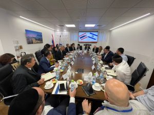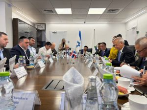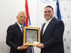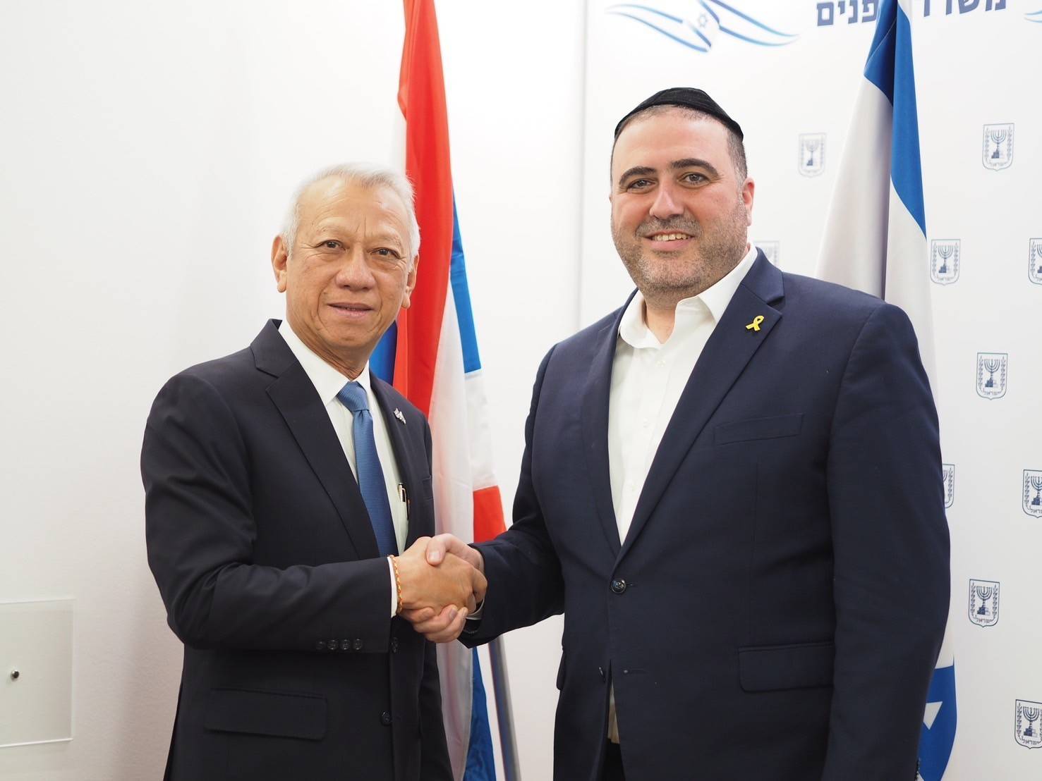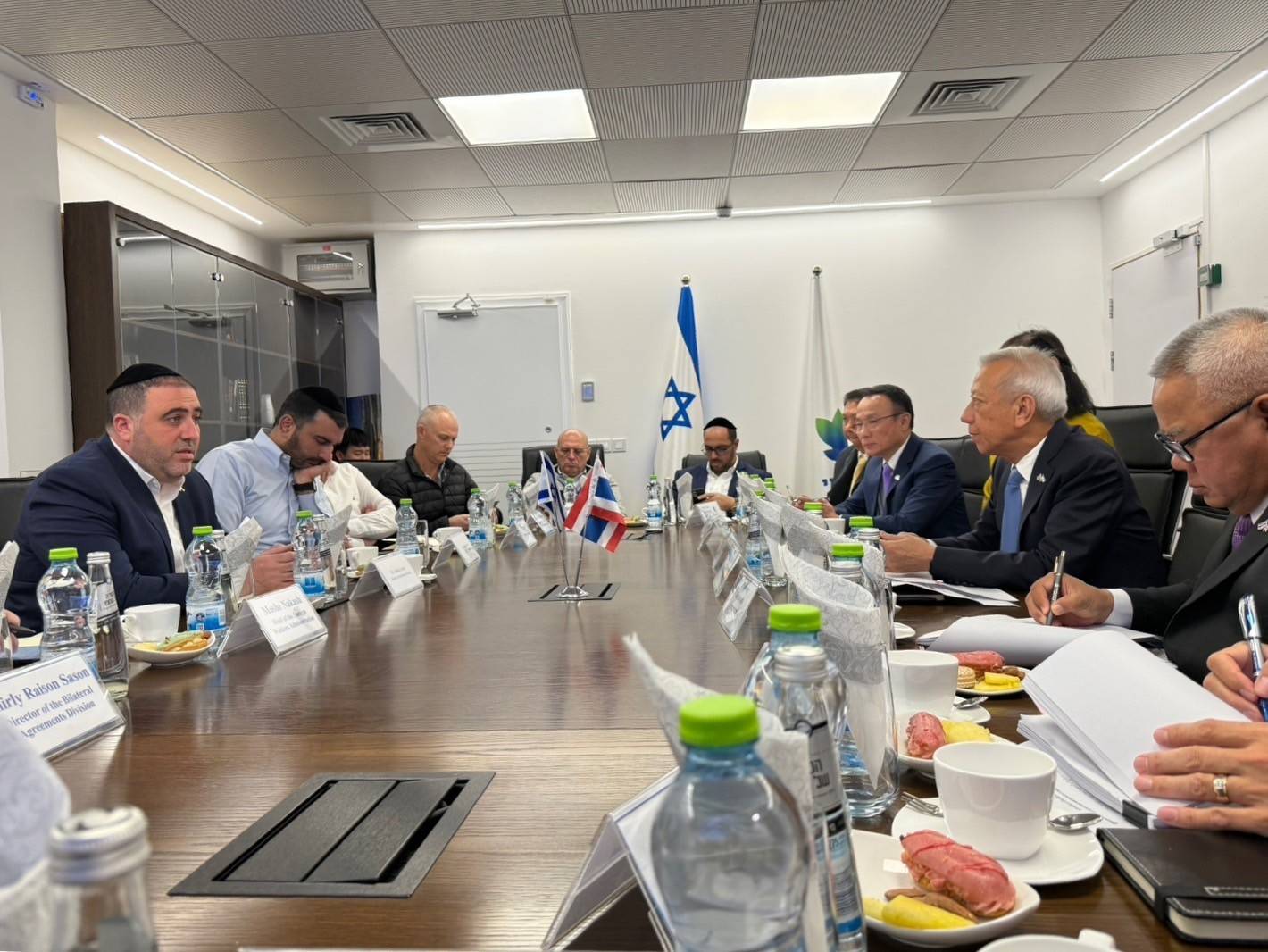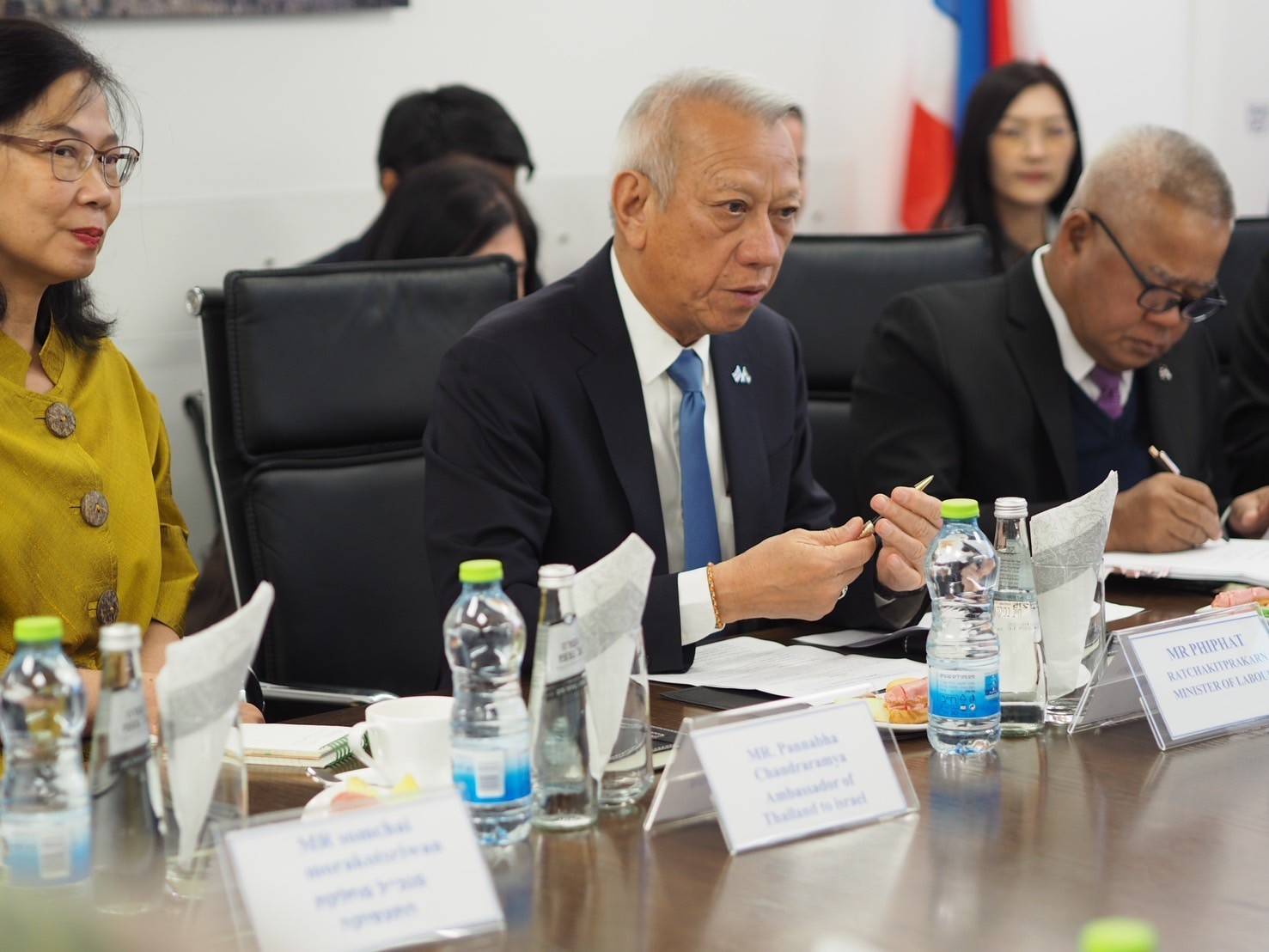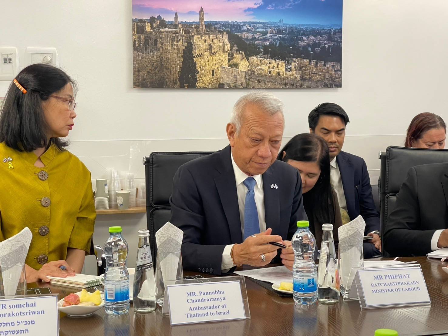 วันที่ 13 มกราคม 2568 นายพิพัฒน์ รัชกิจประการ รัฐมนตรีว่าการกระทรวงแรงงาน พร้อมด้วย นายบุญสงค์ ทัพชัยยุทธ์ ปลัดกระทรวงแรงงาน นายสมชาย มรกตศรีวรรณ อธิบดีกรมการจัดหางาน นางสาวพรรณนภา จันทรารมย์ เอกอัครราชทูต นายศักดินาถ สนธิศักดิ์โยธิน ผู้ช่วยปลัดกระทรวงแรงงาน นายกิตติ์ธนา ศรีสุริยะ อัครราชทูตที่ปรึกษา (ฝ่ายแรงงาน) และคณะผู้บริหารกระทรวงแรงงาน หารือข้อราชการร่วมกับนายโมเช่ อาเบล (Mr. Moshe Arbel) รัฐมนตรีว่าการกระทรวงมหาดไทยอิสราเอล เพื่อเจรจาเพิ่มโควตาจ้างแรงงานไทยในอิสราเอล ณ กระทรวงมหาดไทย นครเยรูซาเล็ม