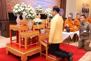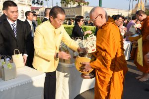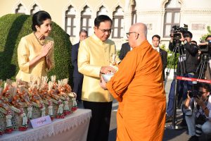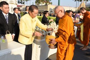 วันที่ ๒ มกราคม ๒๕๖๓ เวลา ๐๗.๐๐ น. พลเอกประยุทธ์ จันทร์โอชา นายกรัฐมนตรีและรัฐมนตรีว่าการกระทรวงกลาโหม พร้อมด้วย รองศาสตราจารย์นราพร จันทร์โอชา ภริยา นำคณะรัฐมนตรีทำบุญตักบาตรพระสงฆ์จำนวน ๖๓ รูป เนื่องในโอกาสวันขึ้นปีใหม่ พุทธศักราช ๒๕๖๓ โดยมี หม่อมราชวงศ์จัตุมงคล โสณกุล รัฐมนตรีว่าการกระทรวงแรงงาน เข้าร่วมพิธีในครั้งนี้ด้วย ณ บริเวณสนามหญ้าข้างตึกไทยคู่ฟ้า ทำเนียบรัฐบาล