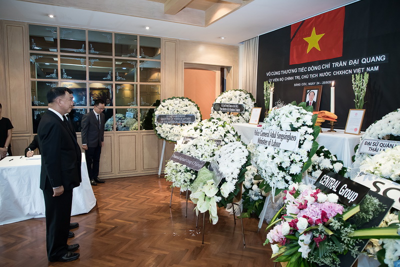วันนี้ (25 ก.ย. 61) เวลา 16.00 น. พล.ต.อ.อดุลย์ แสงสิงแก้ว รัฐมนตรีว่าการกระทรวงแรงงาน ร่วมลงนามแสดงความเสียใจแก่ นายเจิ่น ด่าย กวาง ประธานาธิบดีแห่งสาธารณรัฐสังคมนิยมเวียดนาม ที่ได้ถึงแก่อสัญกรรม เมื่อวันศุกร์ที่ 21 กันยายน 2561 ขณะมีอายุ 61 ปี ณ โรงพยาบาลทหาร กรุงฮานอย สาธารณรัฐสังคมนิยมเวียดนาม โดย รมว.แรงงาน ได้ลงนามในสมุดแสดงความเสียใจ ซึ่งมี นายเหวียน หาย บั่ง เอกอัครราชทูตสาธารณรัฐสังคมนิยมเวียดนาม ประจำประเทศไทย คอยให้การต้อนรับ ณ สถานเอกอัครราชทูตสาธารณรัฐสังคมนิยมเวียดนามประจำประเทศไทย