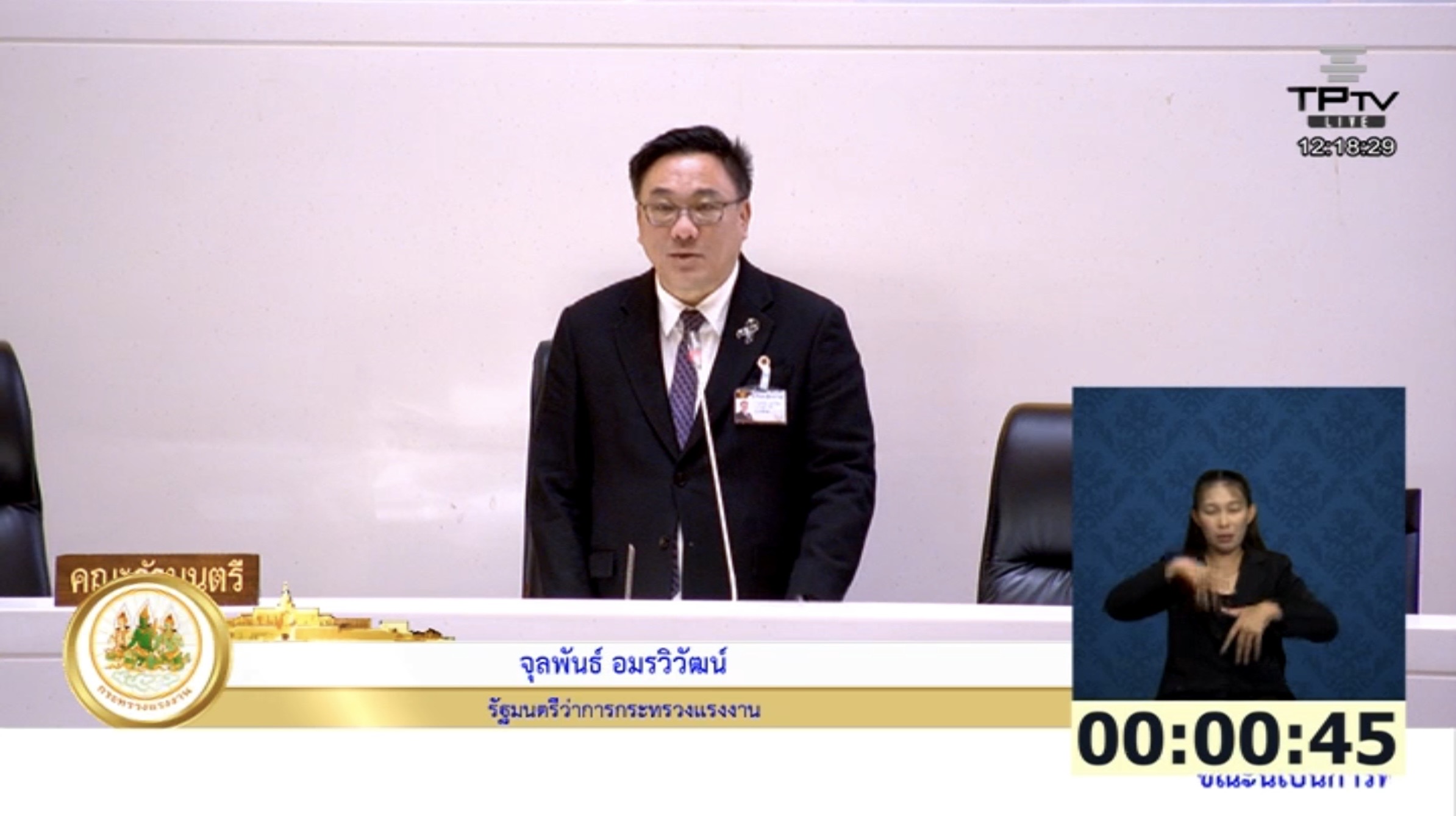 วันที่ 10 เมษายน 2569 นายจุลพันธ์ อมรวิวัฒน์ รัฐมนตรีว่าการกระทรวงแรงงาน เข้าร่วมการแถลงนโยบายของคณะรัฐมนตรีต่อรัฐสภา โดยมี นางสาวบุปผา เรืองสุด รองปลัดกระทรวงแรงงาน นายสันติ นันตสุวรรณ รองปลัดกระทรวงแรงงาน นายพิเชษฐ์ ทองพันธ์ รองปลัดกระทรวงแรงงาน นายสมชาย มรกตศรีวรรณ อธิบดีกรมการจัดหางาน นายสมาสภ์ ปัทมะสุคนธ์ อธิบดีกรมพัฒนาฝีมือแรงงาน เรือเอก สาโรจน์ คมคาย อธิบดีกรมสวัสดิการและคุ้มครองแรงงาน นางสาวกาญจนา พูลแก้ว เลขาธิการสำนักงานประกันสังคม ดร.นันทชัย ปัญญาสุรฤทธิ์ ผู้อำนวยการ สถาบันส่งเสริมความปลอดภัย อาชีวอนามัย และสภาพแวดล้อมในการทำงาน (สสปท.) นายณัฐวุฒิ ภัทรประยูร ที่ปรึกษาวิชาการแรงงาน ร่วมสนับสนุนข้อมูลแก่รัฐมนตรีว่าการกระทรวงแรงงานและรับฟังการแถลงนโยบายของคณะรัฐมนตรีต่อรัฐสภาตามกฎหมายรัฐธรรมนูญแห่งราชอาณาจักรไทย พุทธศักราช 2560 มาตรา 162 ณ ห้องประชุมสภาผู้แทนราษฎร อาคารรัฐสภา เขตดุสิต กรุงเทพมหานคร