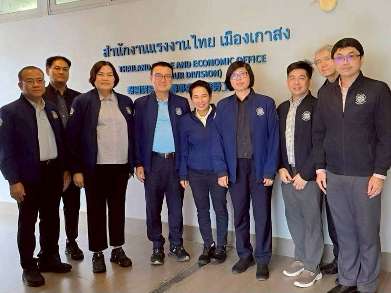 วันที่ 26 กันยายน 2568 นายสันติ นันตสุวรรณ รองปลัดกระทรวงแรงงาน พร้อมด้วย นางสาวบุณยวีร์ ไขว้พันธุ์ หัวหน้าผู้ตรวจราชการกระทรวงแรงงาน นางสาวกาญจนา พูลแก้ว ผู้ตรวจราชการกระทรวงแรงงาน นางสาวจีระภา บุญรัตน์ ผู้ตรวจราชการกระทรวงแรงงาน นายเกริกไกร นาสมยนต์ ที่ปรึกษากฎหมาย และผู้บริหารกระทรวงแรงงาน เดินทางตรวจเยี่ยมการปฏิบัติงานของสำนักงานแรงงานไทย เมืองเกาสง พร้อมมอบนโยบายให้กับเจ้าหน้าที่ ณ สำนักงานแรงงานไทย เมืองเกาสง ไต้หวัน