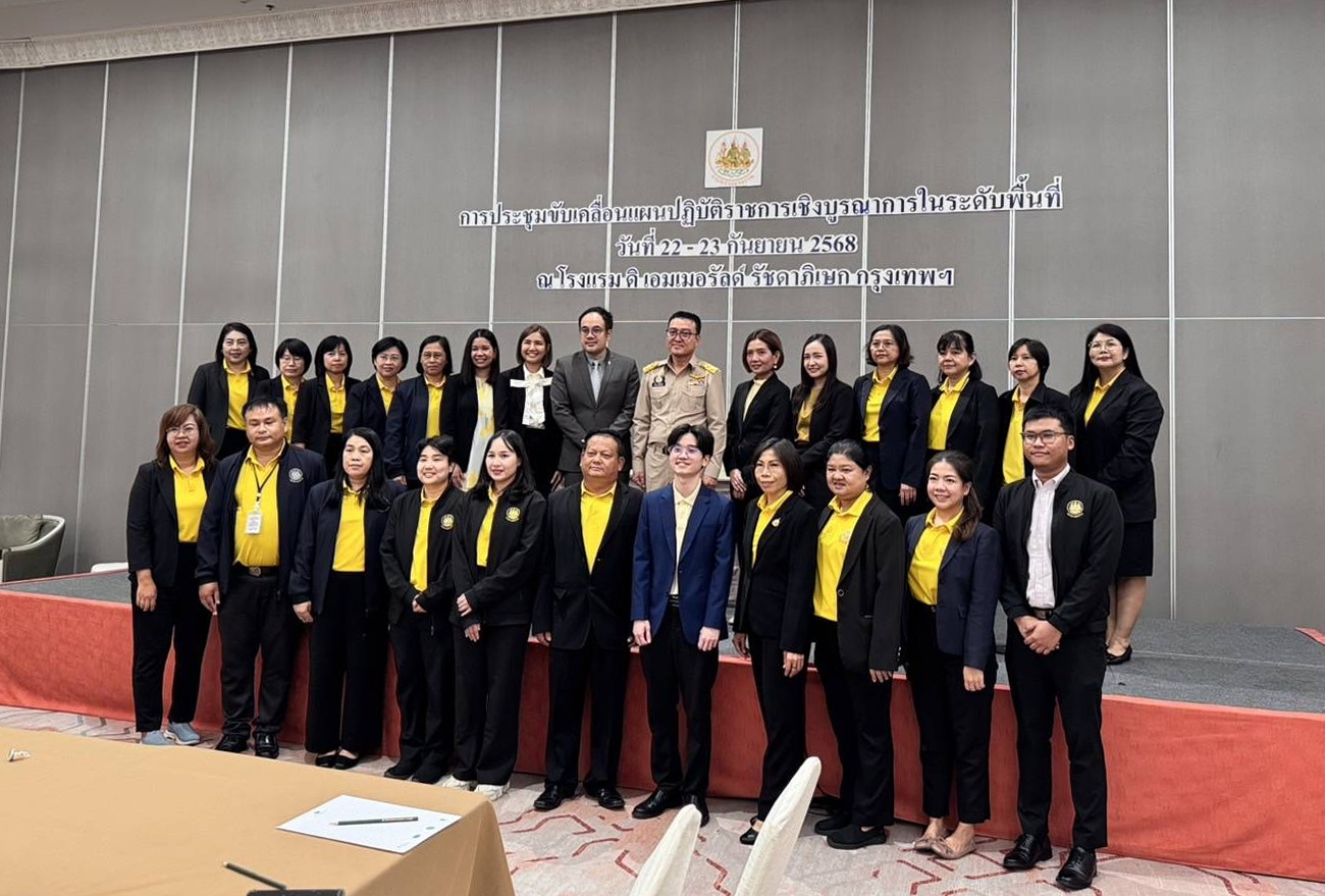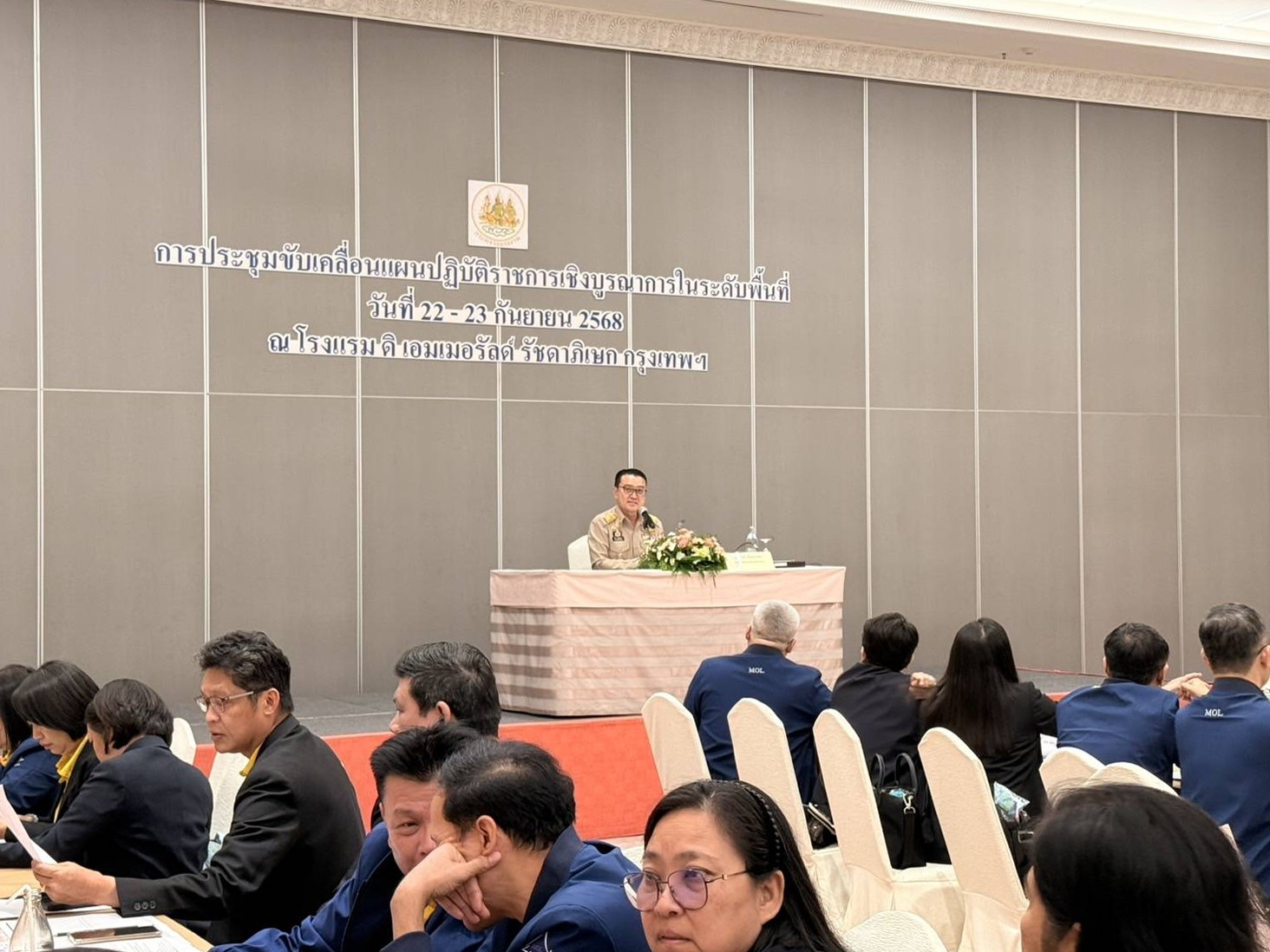 สำหรับการประชุมขับเคลื่อนแผนปฏิบัติราชการเชิงบูรณาการในระดับพื้นที่ จัดขึ้นระหว่างวันที่ 22 – 23 กันยายน 2568 มีผู้เข้าร่วมการประชุม จำนวน 150 คน โดยมีการบรรยาย เรื่อง การวางแผนกลยุทธ์สำนักงานปลัดกระทรวงแรงงาน โครงการที่มีการบูรณาการการทำงานเชิงพื้นที่ประจำปีงบประมาณ พ.ศ. 2569 โดยเครือข่ายด้านแรงงานบัณฑิตแรงงาน และอาสาสมัครแรงงาน รวมถึงโครงการที่มีการบูรณาการการทำงานเชิงพื้นที่ประจำปีงบประมาณ พ.ศ. 2569