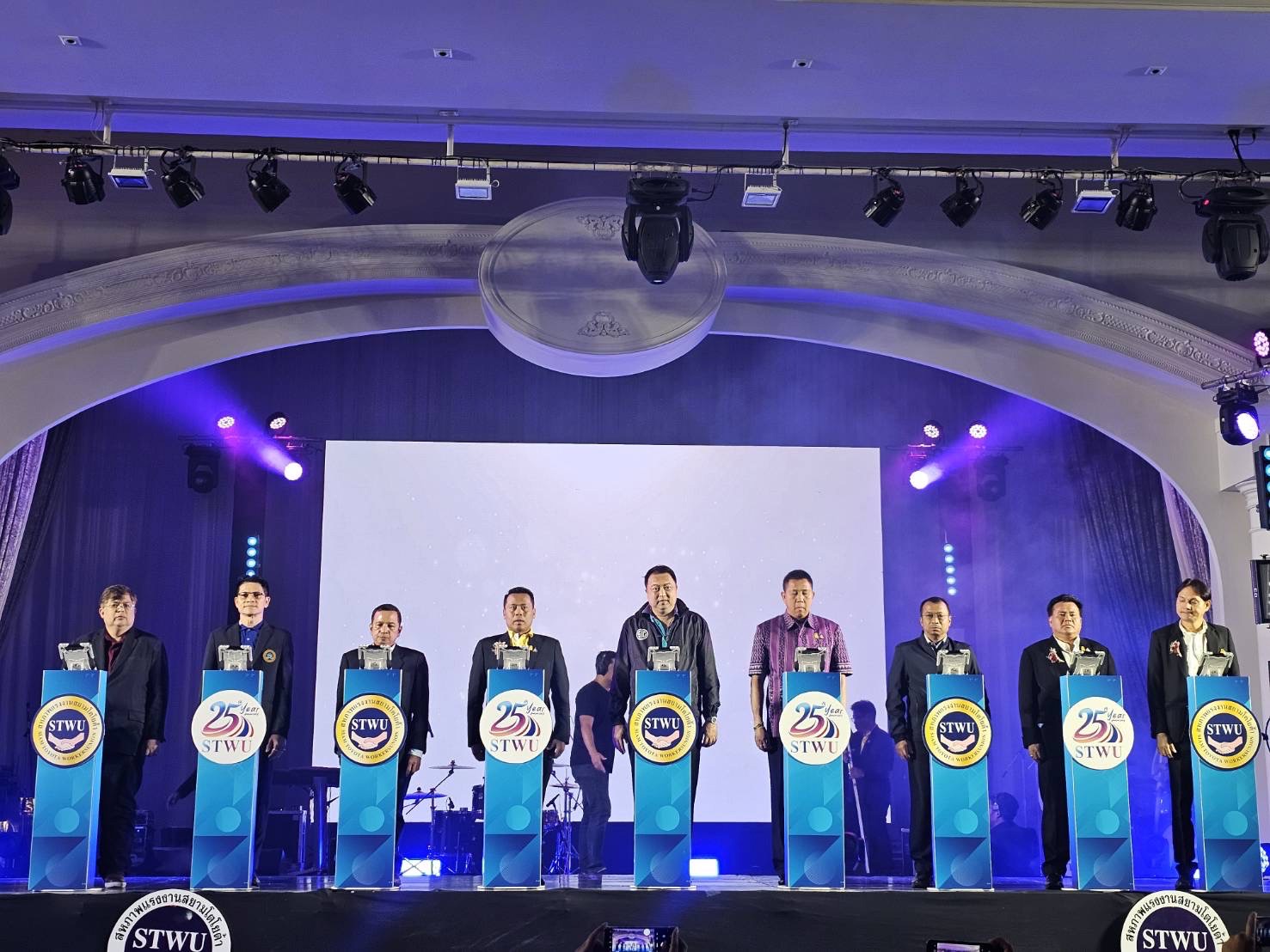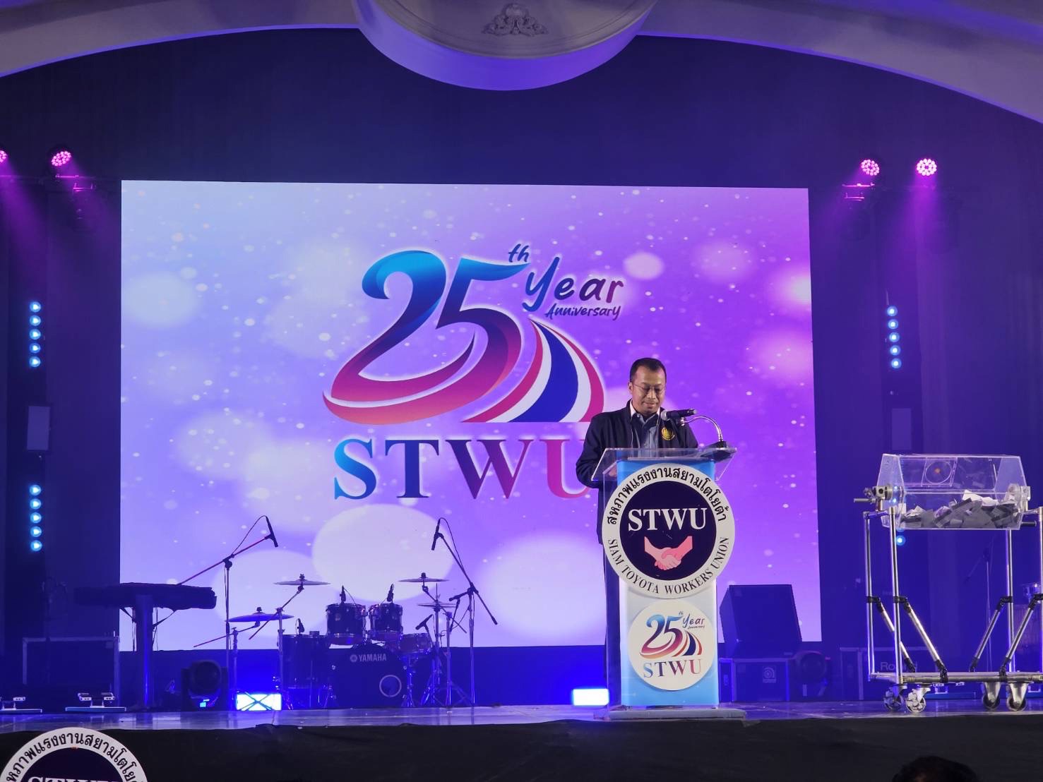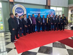 On November 26, 2023, at 11.30 hours, the Permanent Secretary of Labour, Mr. Phairoj Chotikasatian, assigned the Deputy Permanent Secretary of Labour, Mr. Wannarat Srisuksai, to speak in honour of the Annual General Meeting No. 24/2023 and to express congratulations on the celebrations of the 25th anniversary of the founding of the Siam Toyota Workers Union, organized by the Siam Toyota Workers Union. Member of the House of Representatives and former Labour Minister, Mr. Suchart Chomklin, Chonburi Provincial Governor, Mr. Thawatchai Srithong, President of Siam Toyota Workers Union, Mr. Thanattha Khammawong, President of the National Labor Assembly, Mr. Manit Promkareekul, Advisor to the Siam Toyota Workers Union, Mr. Phongthep Chaiyawan, and Secretary-General of the Siam Toyota Workers Union, Mr. Wasan Chantim, joined in the honour at the event at Tasana Garden meeting room, Mitsamphan Road, Mueang Chonburi District, Chonburi Province.