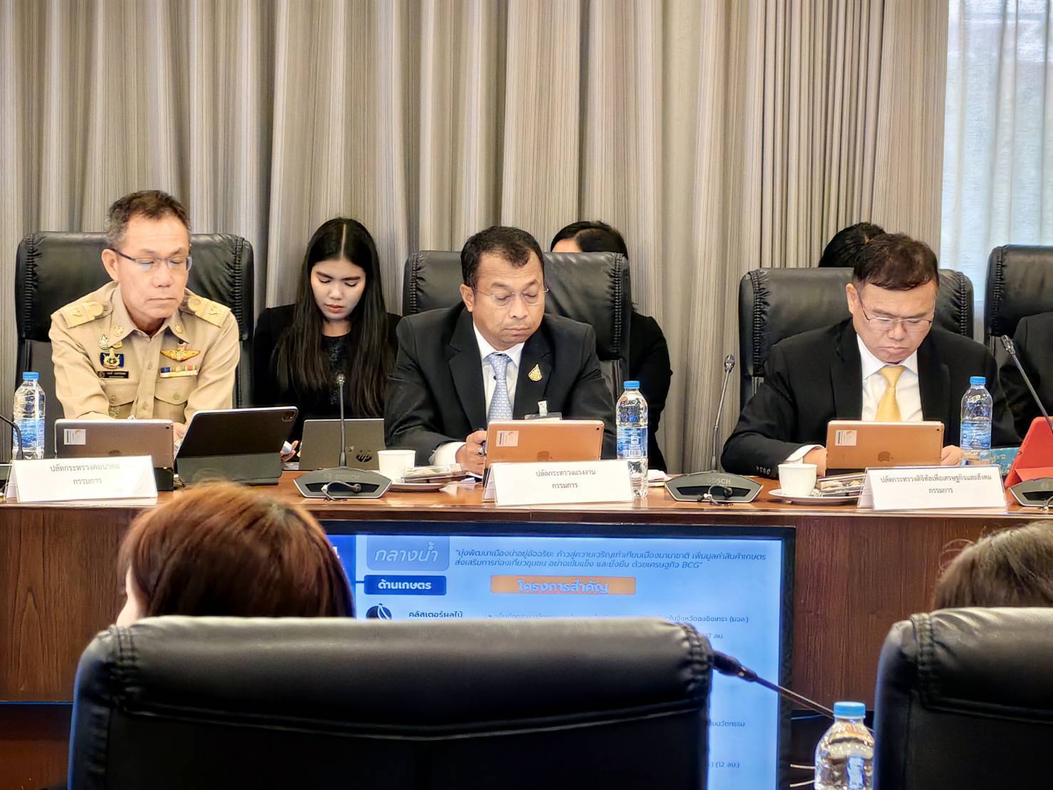 On October 2, 2023, the Deputy Permanent Secretary of Labour and Acting Permanent Secretary of Labour, Mr. Wannarat Srisuksai, attended the integrated budget preparation committee meeting for the 2024 fiscal year, Group 1.2, the Eastern Special Development Zone Integration Plan No. 1/2023. The Deputy Prime Minister, Mr. Phumtham Wechachai, chaired the meeting in room 301, Command Building 1, Government Houses. The meeting considered the (draft) integrated budget request for 2024 for the Eastern Special Development Zone Integration Plan.