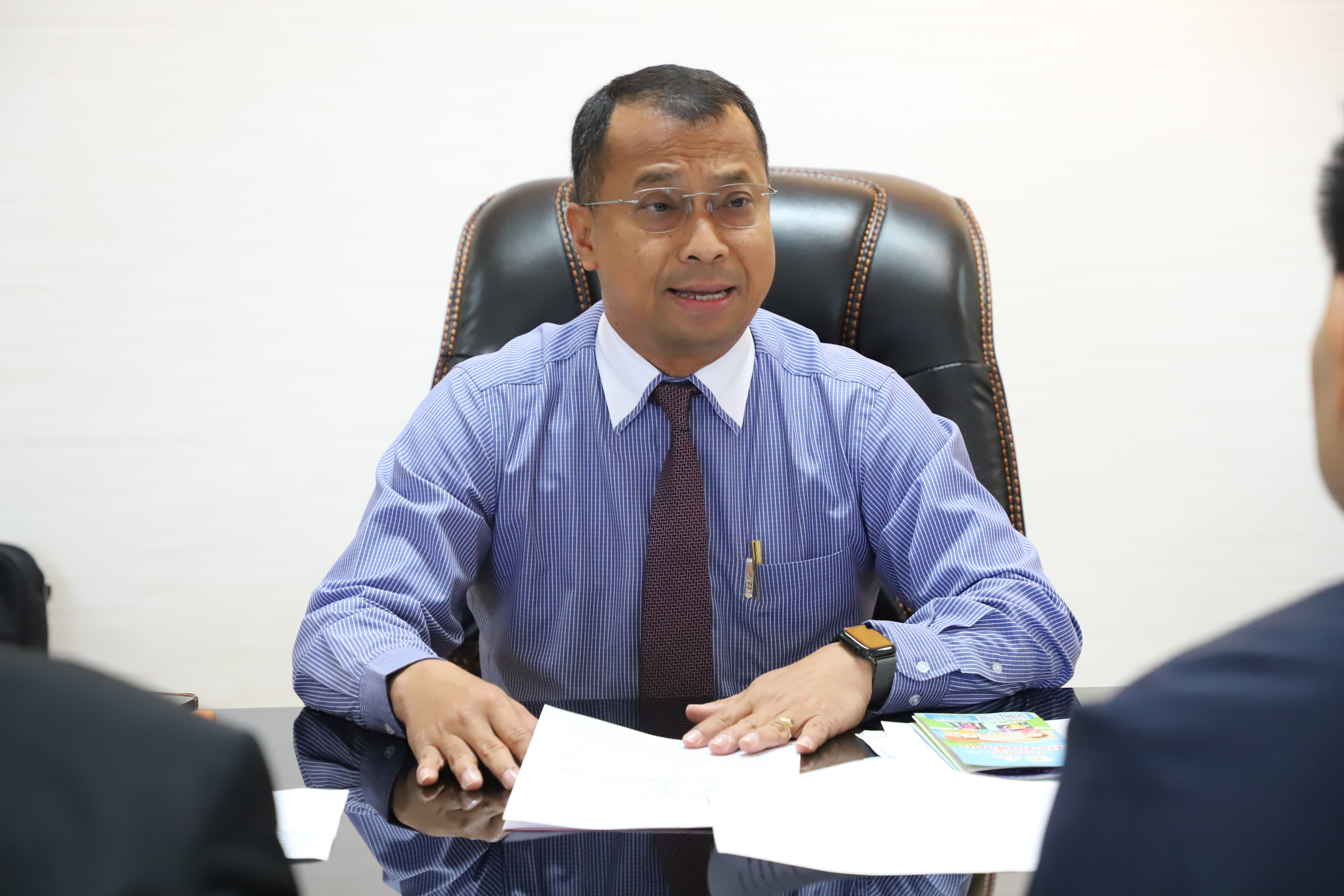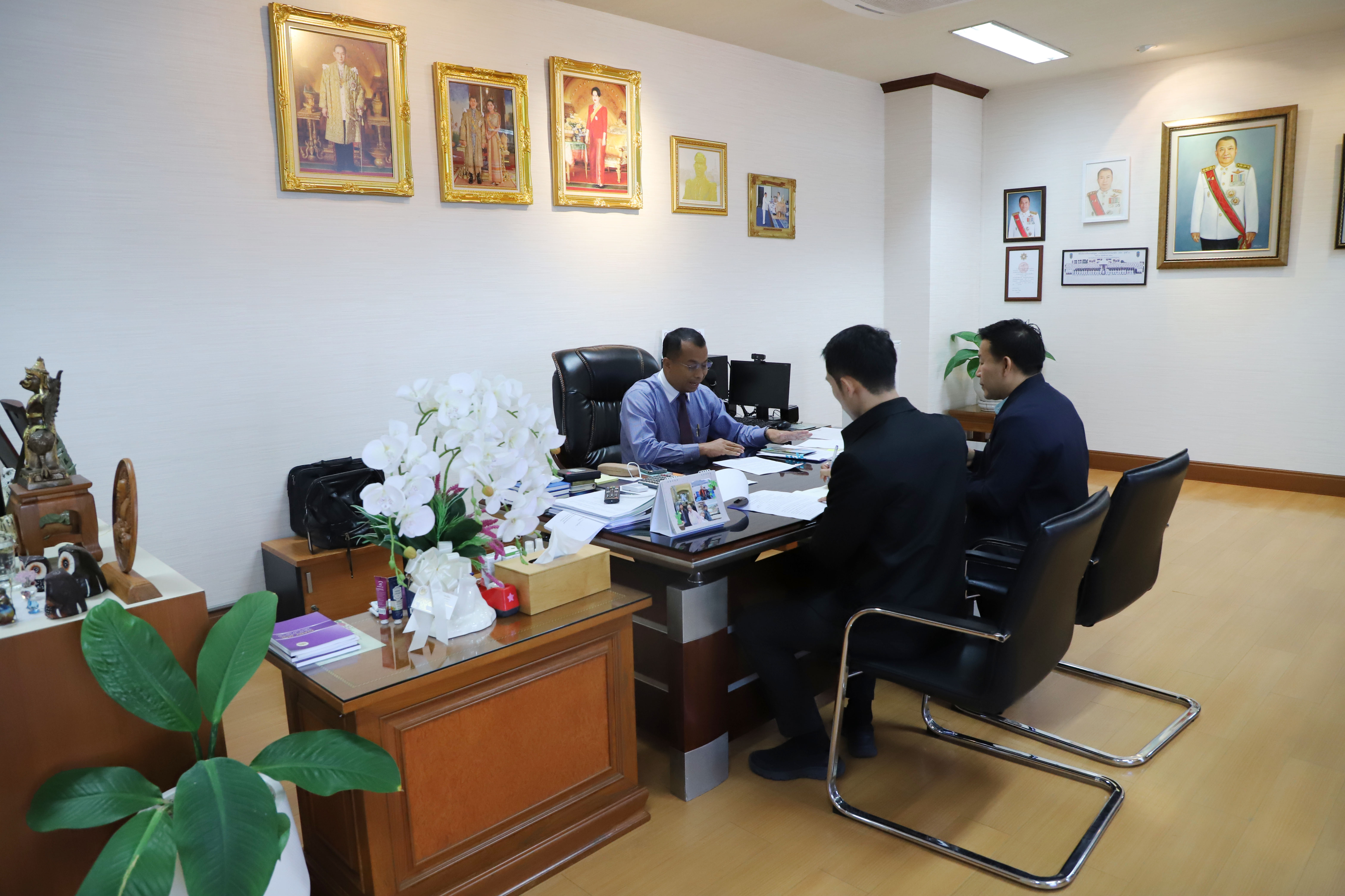 On August 31, 2023, the Deputy Permanent Secretary of Labour, as the Ministry of Labour’s spokesperson, Mr. Wannarat Srisuksai, was interviewed by phone on the “News Battlefield” program on Radio Thailand, FM 92.5 MHz. He spoke about the Ministry of Labour’s measures to help employees who suddenly became unemployed in Chonburi Province. The occasion took place at the Office Room, 7th Floor, Ministry of Labour.