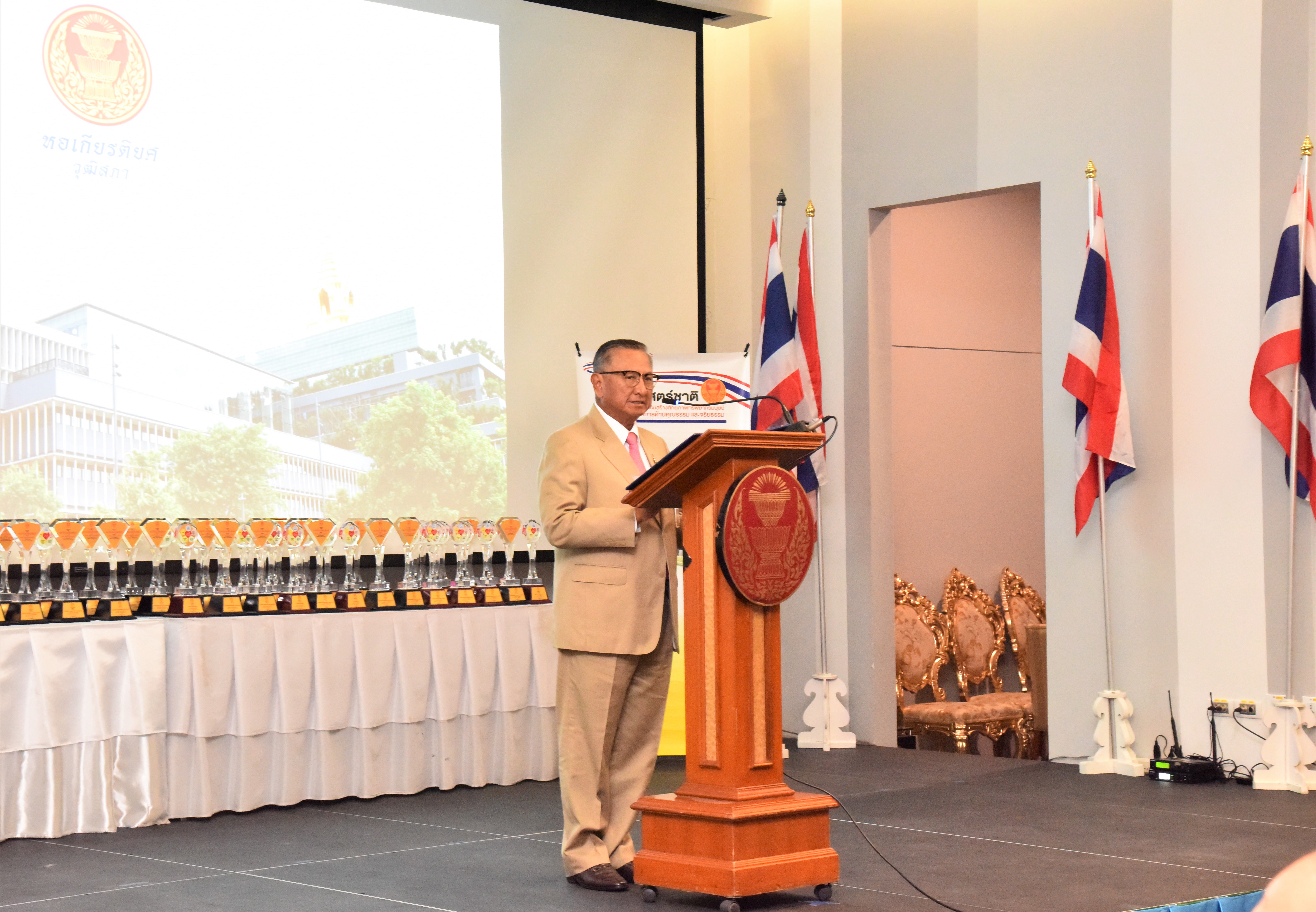 On April 4, 2023, at 09.00 hours, the Permanent Secretary of Labour, Mr. Boonchob Suttamanaswong, assigned the Ministry of Labour’s Deputy Chief Inspector-General, Mrs. Darunee Nithithaweekul, as the representative at the project to reward organizations promoting good, talented people, and brave people. The project aims to honour organizations and agencies that help promote the creation of good, talented, and brave people and exemplify the country’s human resource development. The Second Vice President of the Senate, Mr. Supachai Somcharoen, presided over the award ceremony. Two agencies under the Ministry of Labour received plaques in the category of honorable organizations: the Department of Labour Protection and Welfare and the Social Security Office. The occasion took place in the meeting room on the B1 floor, Parliament Building.