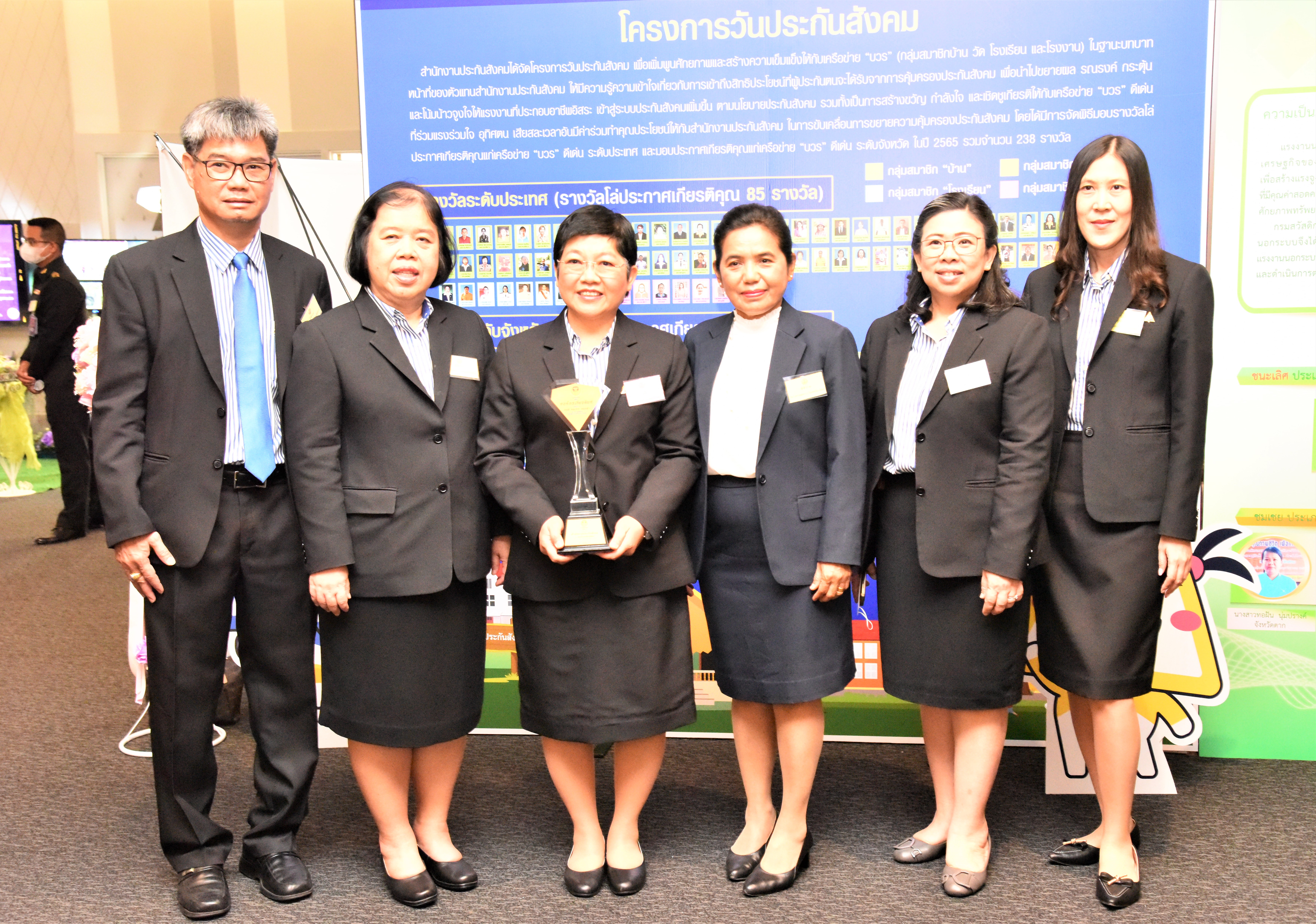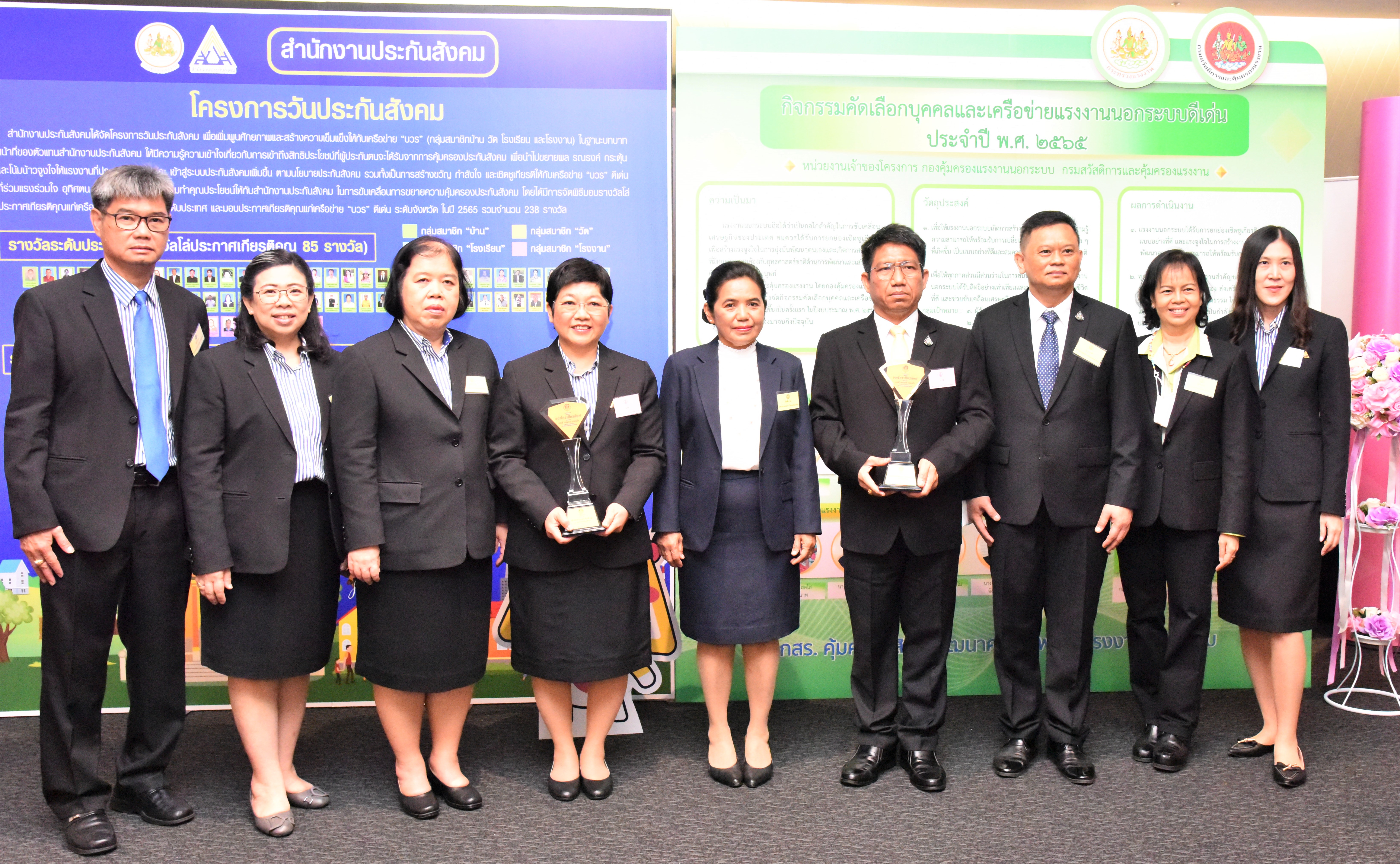 In addition, the Ministry of Labour’s Deputy Chief Inspector-General congratulated the Department of Labor Protection and Welfare’s Deputy Director-General, Acting Second Lieutenant Somsak Promdam, and the Social Security Office’s Deputy Secretary-General, Ms. Natchanon Wattanayannon, who represented their respective organizations in receiving the award in the category of honourable organizations.