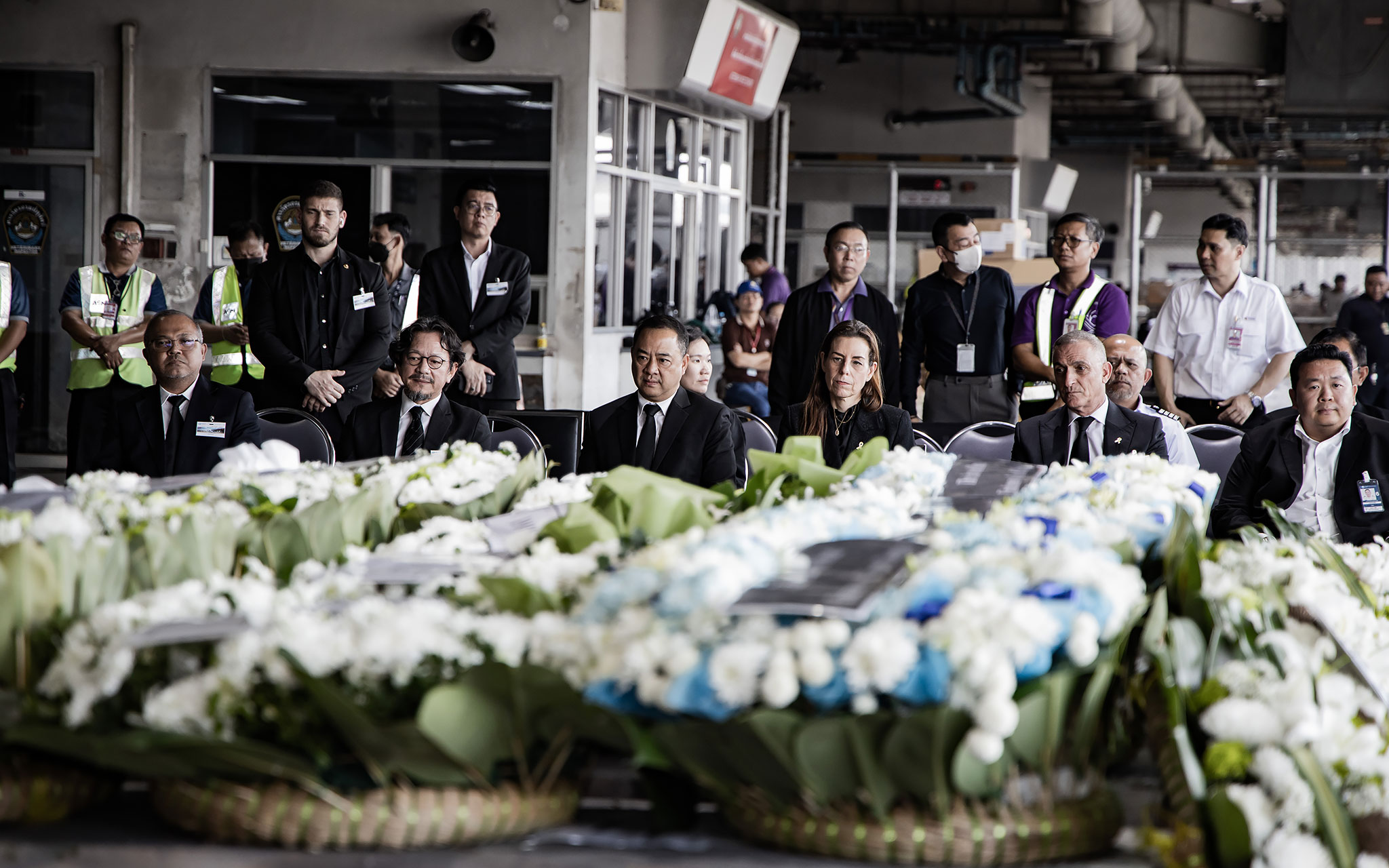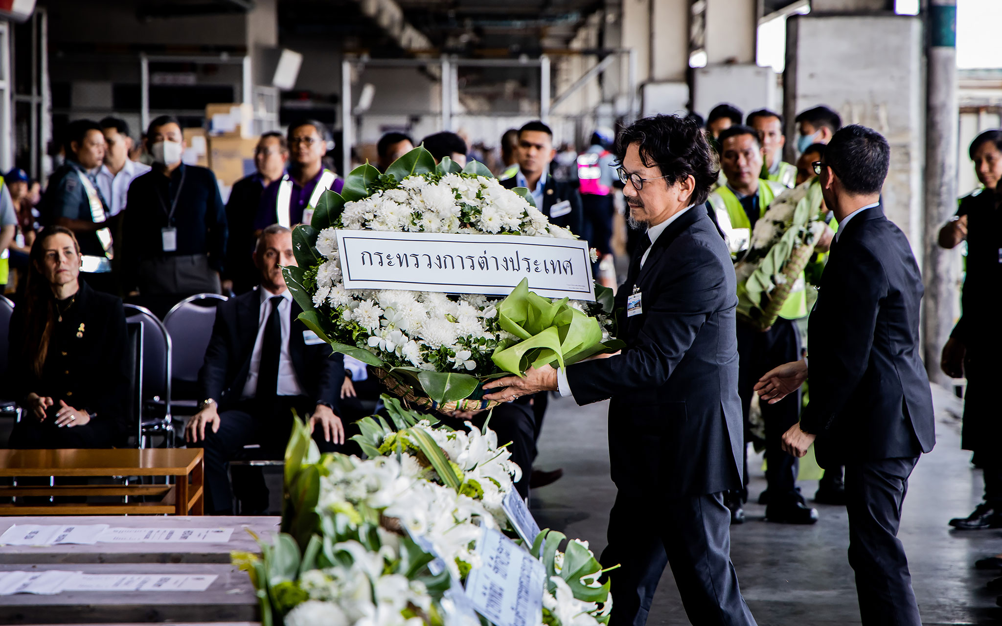 วันที่ 8 พฤศจิกายน 2567 เวลา 14.00 น. นายพิพัฒน์ รัชกิจประการ รัฐมนตรีว่าการกระทรวงแรงงาน กล่าวว่า ในวันนี้ร่างของแรงงานไทยทั้ง 4 ราย ประกอบด้วย นายอรรคพล วรรณไสย นายประหยัด พิลาศรัมย์ นายธนา ติจันทึก และนายกวีศักดิ์ ปาปะนัง ที่เสียชีวิตจากเหตุจรวดโจมตีจากเลบานอนไปยังเมืองเมตูลาทางตอนเหนือของอิสราเอล เมื่อวันที่ 31 ตุลาคม 2567 ที่ผ่านมา ซึ่งสถานเอกอัครราชทูต ณ กรุงเทลอาวีฟ ได้ส่งร่างแรงงานไทยมาเมื่อวานนี้ (7 พ.ย.67) เวลา 21.55 น.ตามเวลาท้องถิ่น ด้วยสายการบินอิสราเอลแอร์ไลน์ เที่ยวบินที่ LY 081 ถึงท่าอากาศยานสุวรรณภูมิในวันนี้ (8 พ.ย.67) เวลา 14.05 น. ซึ่งในส่วนของกระทรวงแรงงาน นายบุญสงค์ ทัพชัยยุทธ์ ปลัดกระทรวงแรงงาน ได้มอบหมายให้ นายสมาสภ์ ปัทมะสุคนธ์ ผู้ตรวจราชการกระทรวงแรงงาน รักษาราชการแทน รองปลัดกระทรวงแรงงาน เป็นผู้แทนกระทรวงแรงงานร่วมพิธีรับร่างแรงงานไทยกลับจากรัฐอิสราเอล โดยวางพวงหรีดของรัฐมนตรีว่าการกระทรวงแรงงาน และปลัดกระทรวงแรงงาน เพื่อแสดงความอาลัย จากนั้น นางออร์นา ซากิฟ เอกอัครราชทูตรัฐอิสราเอลประจำประเทศไทย ร่วมวางพวงหรีดตามลำดับ โดยร่างผู้เสียชีวิตทั้ง 4 รายจะถูกเคลื่อนย้ายไปยังภูมิลำเนา