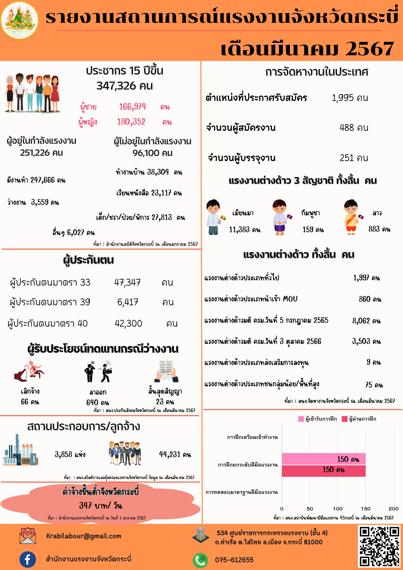 รายงานสถานการณ์แรงงานจังหวัดกระบี่ ประจำเดือนมีนาคม 2567