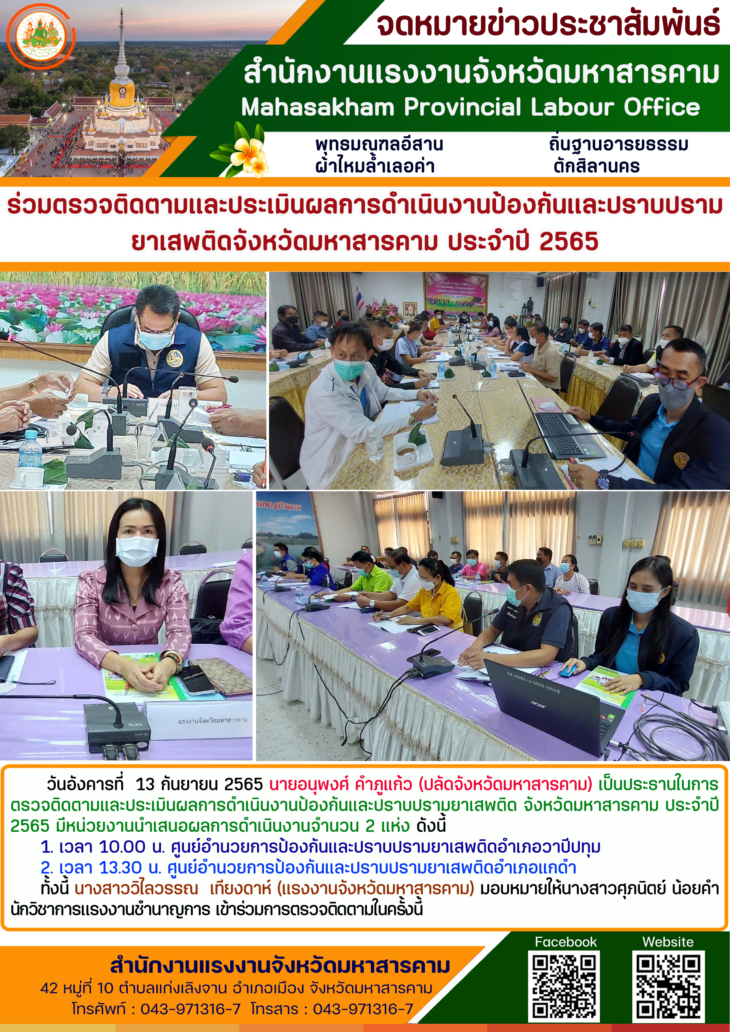 “ร่วมตรวจติดตามและประเมินผลการดำเนินงานป้องกันและปราบปรามยาเสพติดจังหวัดมหาสารคาม ประจำปี 2565”
