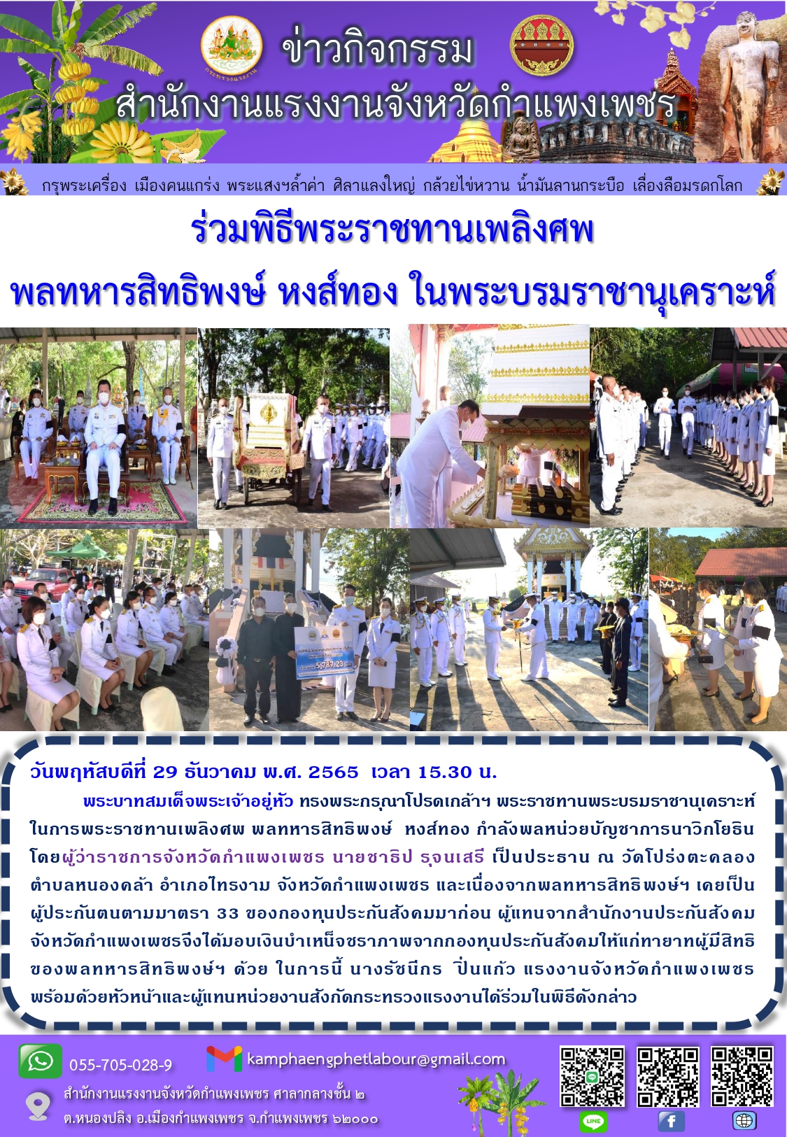 สรจ.กำแพงเพชร ร่วมพิธีพระราชทานเพลิงศพ พลทหารสิทธิพงษ์ หงส์ทอง ในพระบรมราชานุเคราะห์