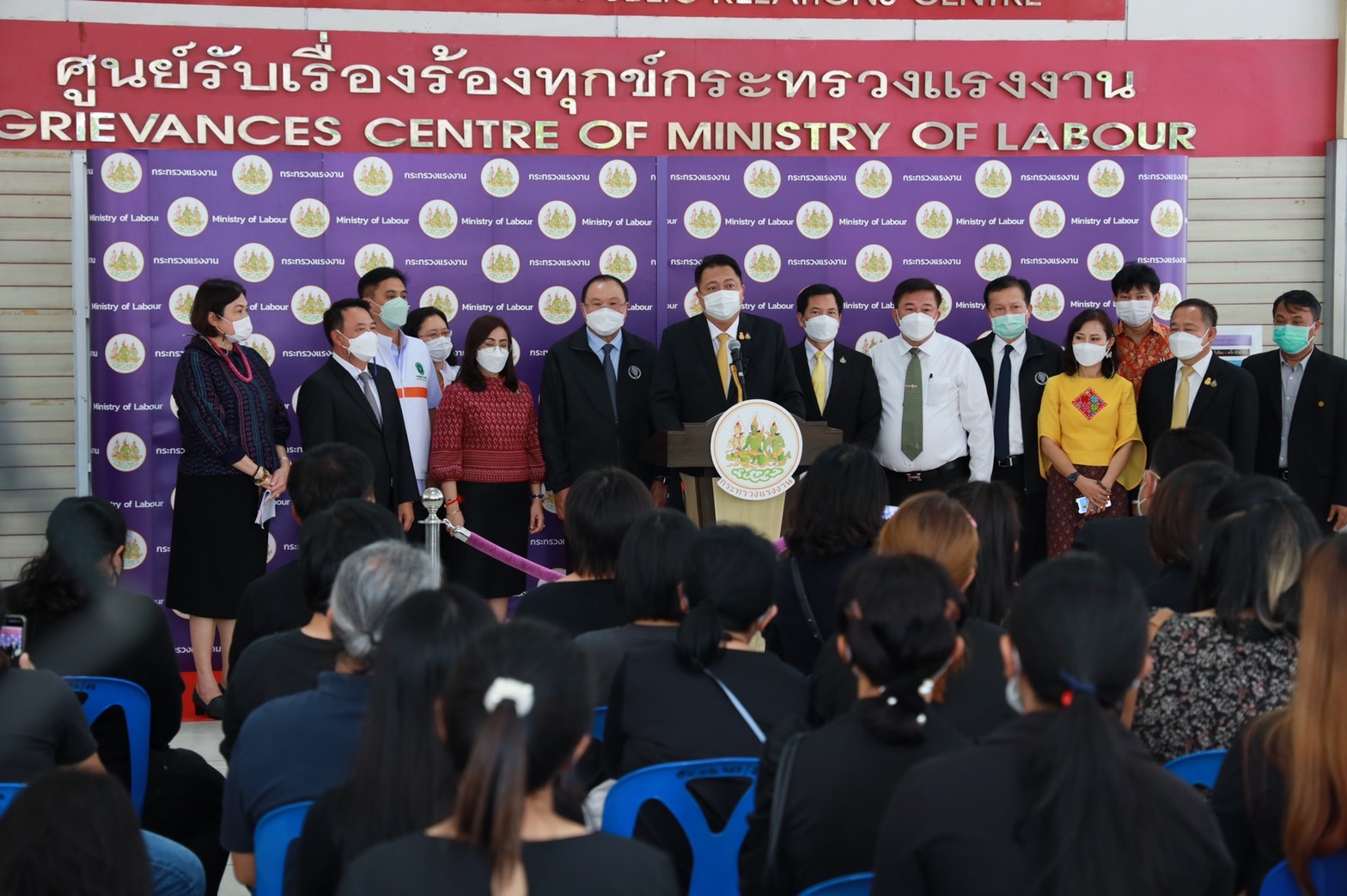 “ในวันนี้กระทรวงแรงงานยังได้รับการประสานจากกรมสุขภาพจิต ซึ่งต้องขอขอบคุณนายแพทย์ธิติ แสวงธรรม รองอธิบดีกรมสุขภาพจิต กระทรวงสาธารณสุข ที่ได้นำทีมแพทย์และเจ้าหน้าที่มาช่วยเหลือลูกจ้าง คอยให้คำปรึกษา แนะนำ ให้ความรู้ในการดูแลสุขภาพกาย สุขภาพใจ เพื่อคลายความกังวล รวมทั้งให้กำลังใจให้ลูกจ้างสามารถผ่านพ้นสถานการณ์ดังกล่าวไปได้”นายสุชาติ กล่าวตอนท้าย