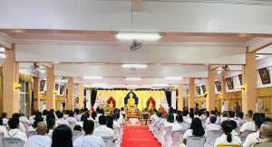 วันที่ 30 ธันวาคม 2565 เวลา 18.00 น ณ ศาลา 100 ปี วัดพระมหาธาตุวรมหาวิหารจังหวัดนครศรีธรรมราช นายกันตพิชญ์ ประดับการ สวัสดิการและคุ้มครองแรงงานจังหวัดนครศรีธรรมราช เป็นประธานในพิธีเจริญจิตภาวนาถวายพระพรชัยมงคลแด่สมเด็จพระเจ้าลูกเธอ เจ้าฟ้าพัชรกิตติยาภา นเรนทิราเทพยวดี กรมหลวงราช สาริณีสิริพัชร มหาวัชรราชธิดา เพื่อขอให้พระองค์ ทรงหายจากอาการพระประชวรและทรงมีพระพลานามัยสมบูรณ์แข็งแรง โดยมี หัวหน้าส่วนราชการสังกัดกระทรวงแรงงานจังหวัดนครศรีธรรมราช ข้าราชการ เจ้าหน้าที่ และพุทธศาสนิกชน ร่วมในพิธี