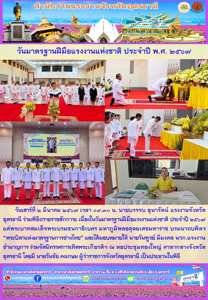 สรจ.อุดรธานี วันมาตรฐานฝีมือแรงงานแห่งชาติ ประจำปี พ.ศ. 2567