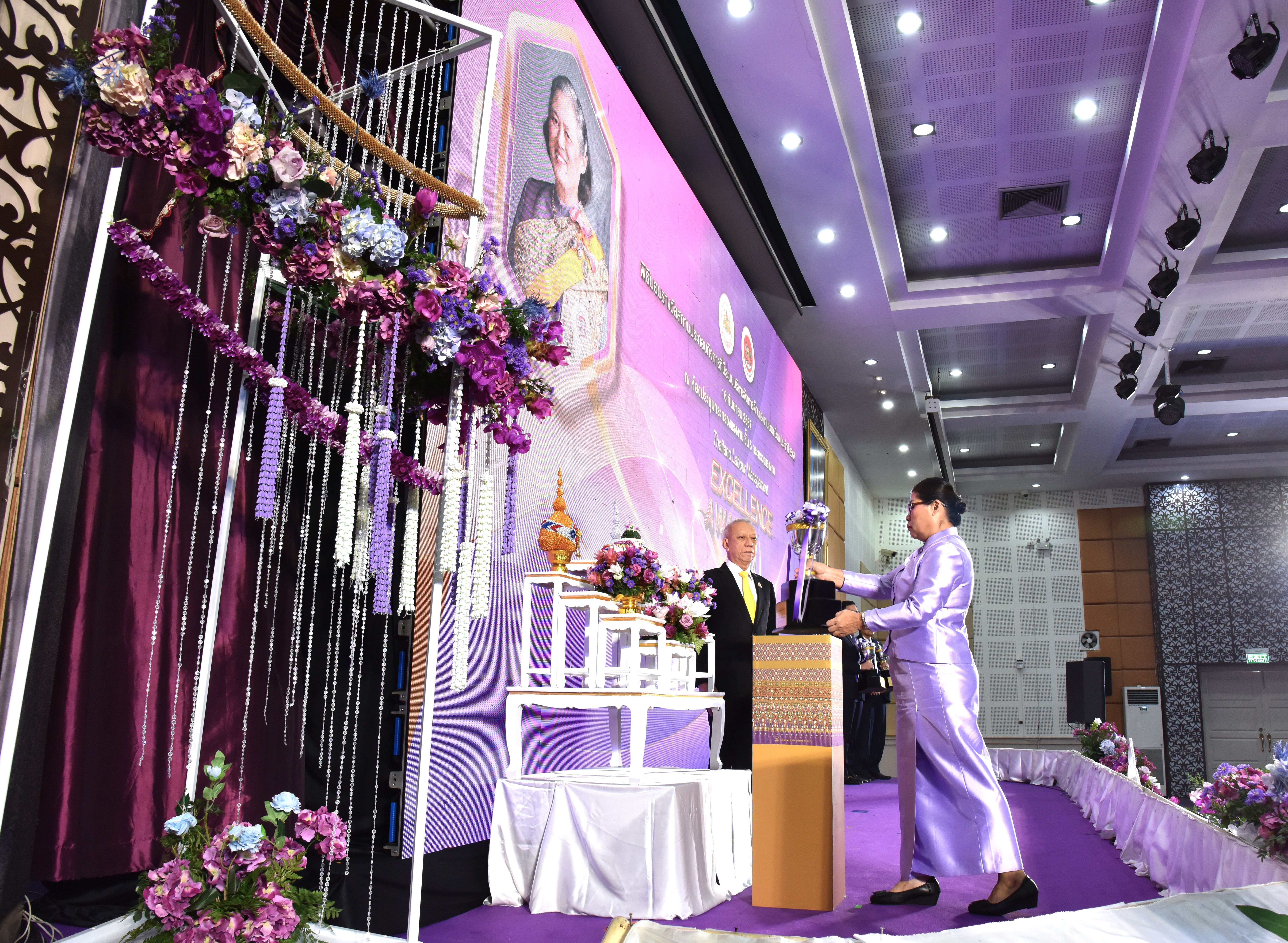 ด้าน นางโสภา เกียรตินิรชา อธิบดีกรมสวัสดิการและคุ้มครองแรงงาน กล่าวว่า ในปีนี้มีสถานประกอบกิจการที่ได้รับรางวัลถ้วยพระราชทาน ประจำปี 2567 จำนวน 3 รางวัล คือ สปก.ขนาดใหญ่ ได้แก่ บริษัท ไทยนิปปอนรับเบอร์อินดัสตรี้ จำกัด จังหวัดชลบุรี สปก.ขนาดกลาง ได้แก่ บริษัท เจริญโภคภัณฑ์อาหาร จำกัด (มหาชน) (โรงผลิตอาหารสัตว์น้ำบ้านบึง) จังหวัดชลบุรี และสปก.ขนาดเล็ก ได้แก่ บริษัท เจริญโภคภัณฑ์อาหาร จำกัด (มหาชน) ธุรกิจโรงเพาะฟักลูกกุ้งท่าบอน จังหวัดสงขลา นอกจากนี้ กระทรวงแรงงานได้มอบรางวัลเกียรติยศและใบรับรองแก่สถานประกอบกิจการที่มีการดำเนินการในกิจกรรมแต่ละด้าน ได้แก่ รางวัลเกียรติยศสูงสุดสถานประกอบกิจการที่ธำรงรักษาระบบมาตรฐานแรงงานไทย ต่อเนื่อง ปีที่ 15 จำนวน 9 รางวัล รางวัลเกียรติยศสูงสุดยิ่งสถานประกอบกิจการดีเด่นด้านแรงงานสัมพันธ์และสวัสดิการแรงงาน ระดับประเทศปีที่ 20 จำนวน 7 รางวัล รางวัลเกียรติยศสถานประกอบกิจการต้นแบบดีเด่นด้านความปลอดภัย อาชีวอนามัย และสภาพแวดล้อมในการทำงาน ระดับประเทศ (ระดับแพลทินัม) ปีที่ 25 จำนวน 1 รางวัล และ ปีที่ 20 จำนวน 8 รางวัล สถานประกอบกิจการที่ได้รับการรับรองมาตรฐานแรงงานไทยในงานขนส่ง มรท. 8003 – 2566 จำนวน 4 แห่ง เพื่อเป็นการประกาศเกียรติคุณและเชิดชูสถานประกอบกิจการที่สามารถดำเนินการในแต่ละด้านได้อย่างดีอีกทั้งยังแสดงให้เห็นว่าสถานประกอบกิจการนั้น ได้มุ่งเน้นให้ความสำคัญในการมีส่วนร่วมในการพัฒนาคุณภาพชีวิตที่ดีของผู้ใช้แรงงาน และสร้างความตระหนักรู้ที่มีความรับผิดชอบต่อสังคมด้านแรงงานในทุกมิติ