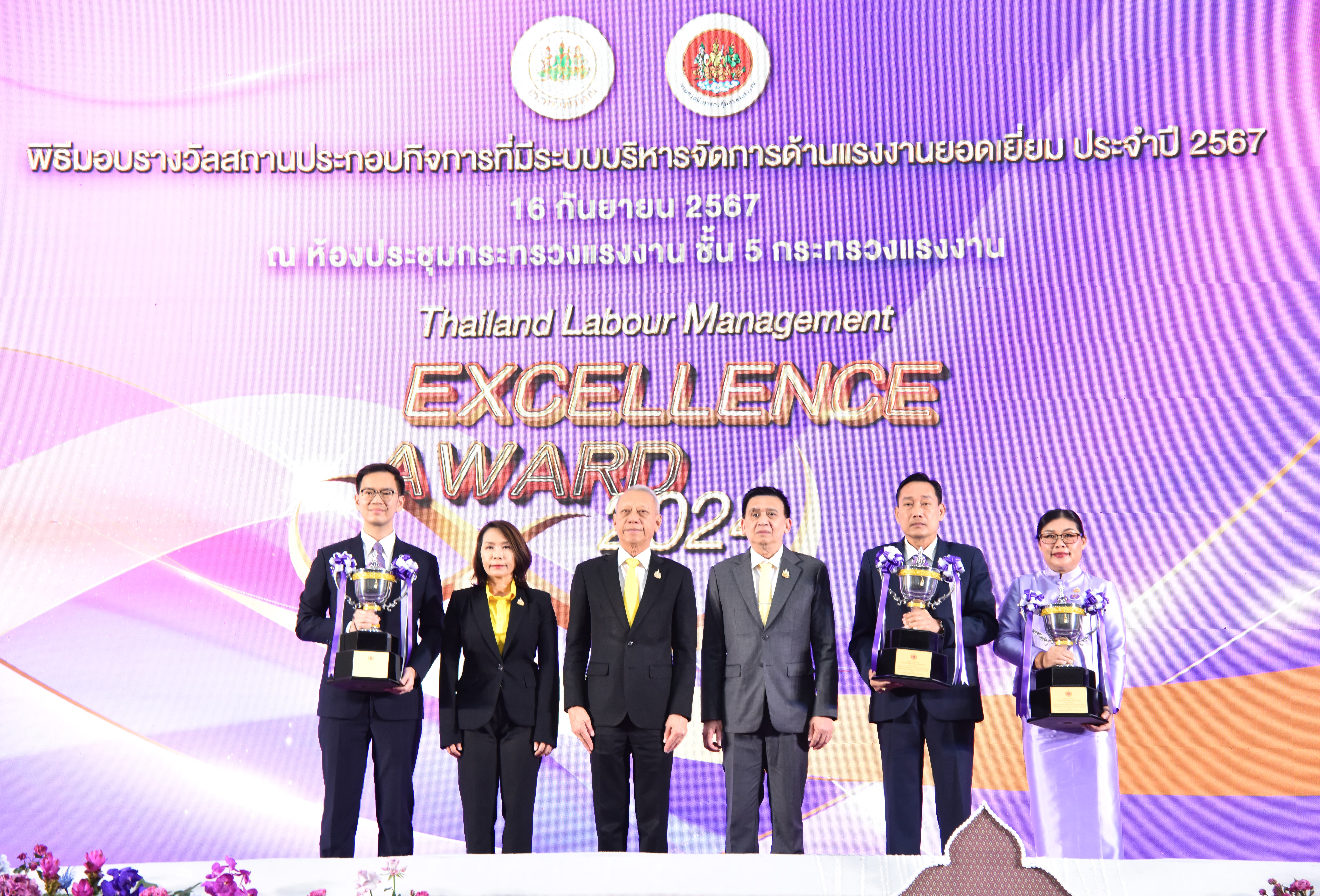 วันที่ 16 กันยายน 2567 นายพิพัฒน์ รัชกิจประการ รัฐมนตรีว่าการกระทรวงแรงงาน เป็นประธานในพิธีมอบถ้วยรางวัลพระราชทานสมเด็จพระกนิษฐาธิราชเจ้า กรมสมเด็จพระเทพรัตนราชสุดาฯ สยามบรมราชกุมารี ให้แก่สถานประกอบกิจการที่มีระบบบริหารจัดการด้านแรงงานยอดเยี่ยม ประจำปี 2567 (Thailand Labour Management Excellence Award 2024) โดยมี นายไพโรจน์ โชติกเสถียร ปลัดกระทรวงแรงงาน พร้อมด้วยผู้บริหารระดับสูงกระทรวงแรงงาน ร่วมเป็นเกียรติ นางโสภา เกียรตินิรชา อธิบดีกรมสวัสดิการและคุ้มครองแรงงาน กล่าวรายงานวัตถุประสงค์การจัดงาน ณ ห้องประชุมกระทรวงแรงงาน ชั้น 5 อาคารกระทรวงแรงงาน