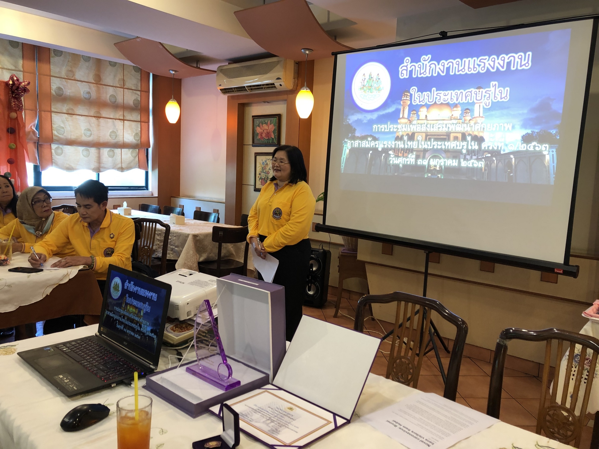 เมื่อวันที่ 31 มกราคม 2563 นางนภวรรณ โกละกะ อัครราชทูตที่ปรึกษา (ฝ่ายแรงงาน) พร้อมด้วยเจ้าหน้าที่สำนักงานแรงงานในประเทศบรูไน ได้จัดประชุมอาสาสมัครแรงงานไทยในประเทศบรูไน ครั้งที่ 1 ประจำปีงบประมาณ พ.ศ. 2563 ณ ร้านอาหารพยัพไทยฟู้ด โดยมีอาสาสมัครแรงงานไทยในประเทศบรูไน เข้าร่วมประชุม จำนวน 30 คน โดยมีวัตถุประสงค์เพื่อส่งเสริมให้อาสาสมัครแรงงาน ได้พัฒนาความรู้ให้กับสถานการณ์แรงงานในด้านต่าง ๆ และเพื่อพัฒนาศักยภาพของอาสาสมัครแรงงาน ให้สามารถช่วยเหลือแรงงานไทยที่ประสบปัญหาความเดือดร้อนได้อย่างมีประสิทธิภาพ ในการประชุมดังกล่าว สนร.บรูไน ได้บรรยายให้ความรู้เกี่ยวกับนโยบายเน้นหนักประจำปี 2563 ของกระทรวงแรงงาน แนวปฏิบัติและขั้นตอนในการขออนุญาตจ้างแรงงานต่างชาติในประเทศบรูไน และให้ความรู้เกี่ยวกับไวรัสโคโรน่า และสถานการณ์การแพร่ระบาดของไวรัส การป้องกันเบื้องต้นเพื่อไม่ให้ติดเชื้อ เป็นต้น เพื่อให้อาสาสมัครแรงงาน สามารถเผยแพร่ความรู้ และให้คำแนะนำแก่แรงงานไทยในประเทศบรูไน ในการปฏิบัติตนเพื่อป้องกันไม่ให้ติดเชื้อไวรัสดังกล่าว ปัจจุบันประเทศบรูไน ได้มีมาตรการในการป้องกัน โดยนักท่องเที่ยวจากประเทศจีนหรือบุคคลใดก็ตามที่ถือหนังสือเดินทางที่สามารถเข้าออกมณฑลหูเป่ยในประเทศจีนได้ ไม่อนุญาตให้เข้าประเทศบรูไน หรือผู้ที่เคยเข้าไปในมณฑหูเป่ยในระยะเวลา 14 วันก่อนเดินทางมาประเทศบรูไน จะไม่ได้รับอนุญาตให้เข้าประเทศบรูไน รวมถึงแจ้งเตือนประชาชนในประเทศบรูไน ให้ระงับการเดินทางไปประเทศจีน เป็นต้น และปัจจุบันยังไม่พบผู้ติดเชื้อไวรัสโคโรน่าในประเทศบรูไน ซึ่งสำนักงานแรงงานในประเทศบรูไน จะได้ออกตรวจเยี่ยมแรงงานและนำหน้ากากอนามัยไปแจกให้แรงงานไทยในประเทศบรูไนต่อไป