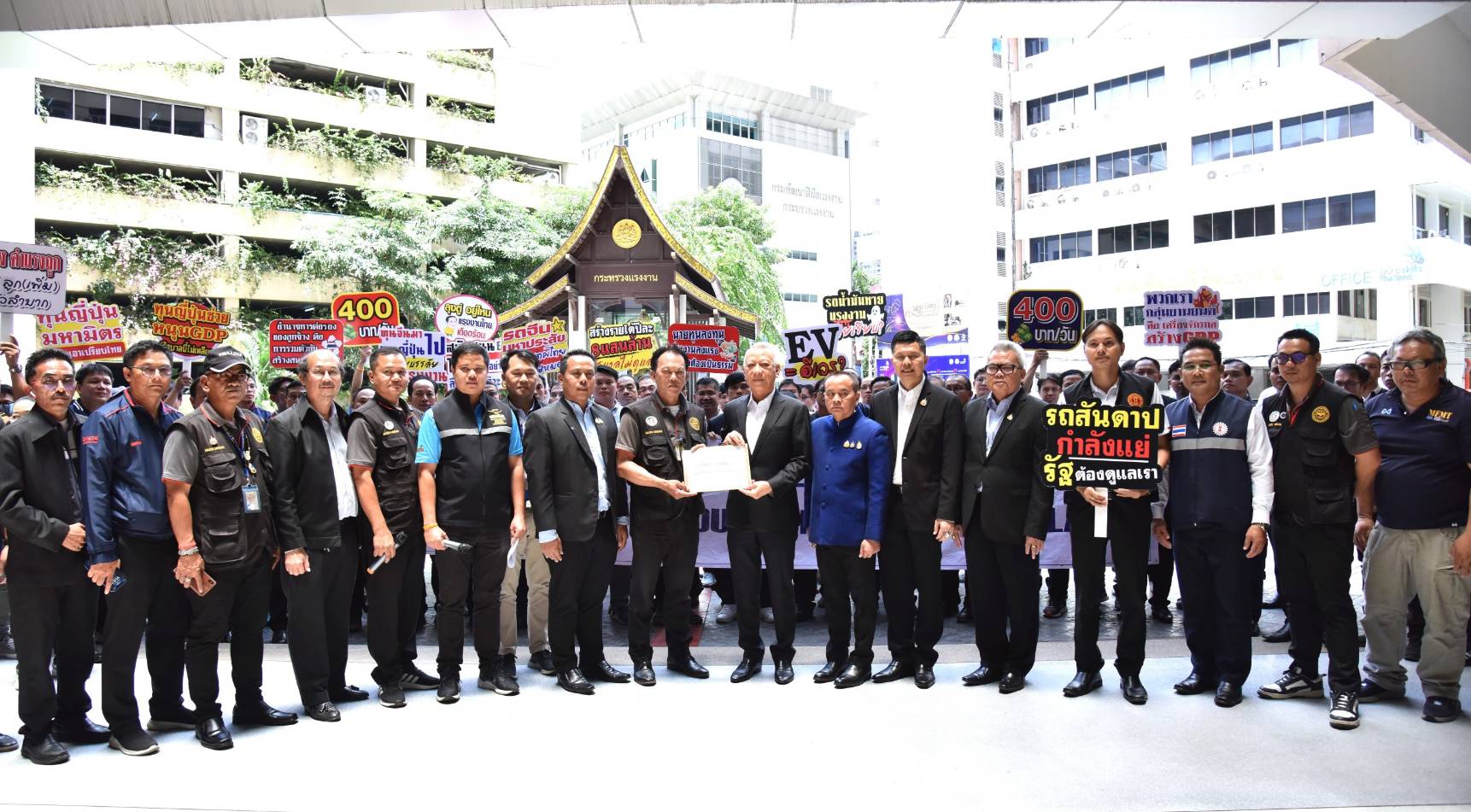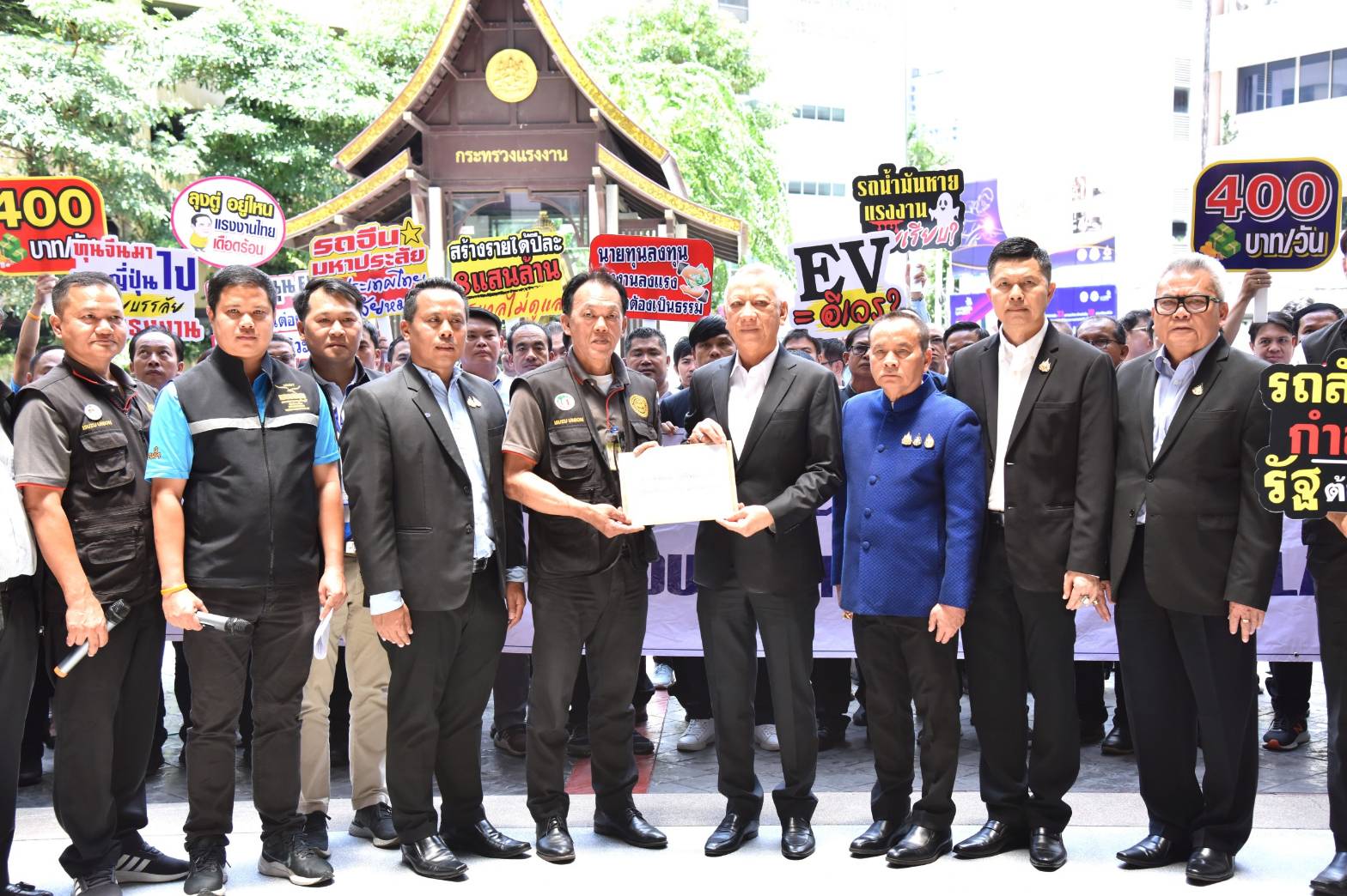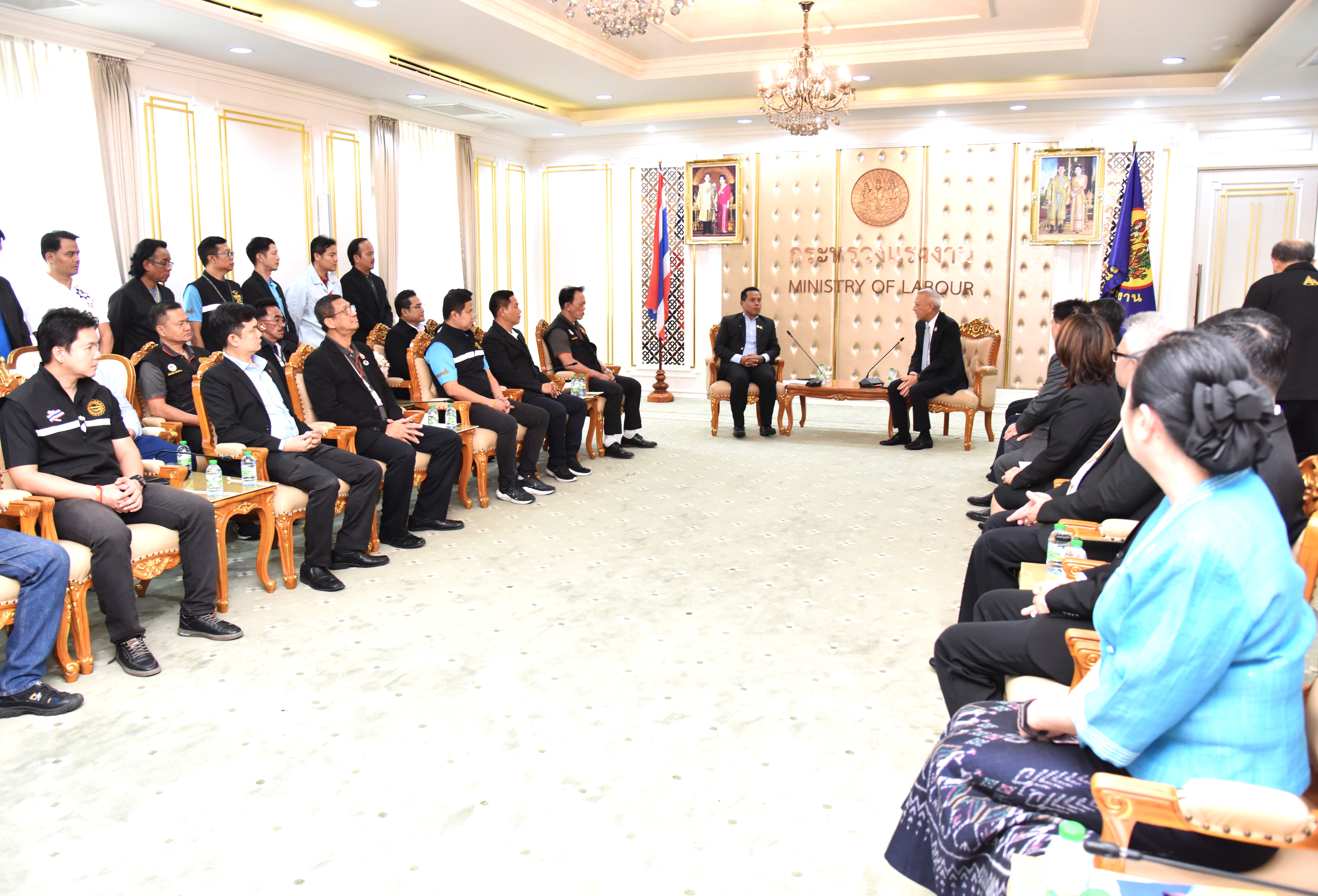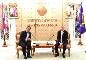 วันที่ 9 สิงหาคม 2567 เวลา 13.30 น. นายพิพัฒน์ รัชกิจประการ รัฐมนตรีว่าการกระทรวงแรงงาน ให้การต้อนรับ นายธนัสถา คำมาวงษ์ ประธานสภาองค์การลูกจ้างแรงงานยานยนต์แห่งประเทศไทย และคณะ ในโอกาสเข้าพบเพื่อสนับสนุนการปรับขึ้นค่าจ้างขั้นต่ำ 400 บาทเท่ากันทั่วประเทศ และหารือมาตรการแผนรองรับผลกระทบด้านแรงงานจากการเปลี่ยนไปใช้รถยนต์ไฟฟ้า โดยมี นายอารี ไกรนรา เลขานุการรัฐมนตรีว่าการกระทรวงแรงงาน นายภุชงค์ วรศรี ประจำสำนักเลขาธิการนายกรัฐมนตรี ปฏิบัติหน้าที่ประจำกระทรวงแรงงาน นายไพโรจน์ โชติกเสถียร ปลัดกระทรวงแรงงาน นางโสภา เกียรตินิรชา อธิบดีกรมสวัสดิการและคุ้มครองแรงงาน พร้อมด้วยผู้บริหารกระทรวงแรงงาน เข้าร่วม ณ ห้องจัตุมงคล ชั้น 6 อาคารกระทรวงแรงงาน