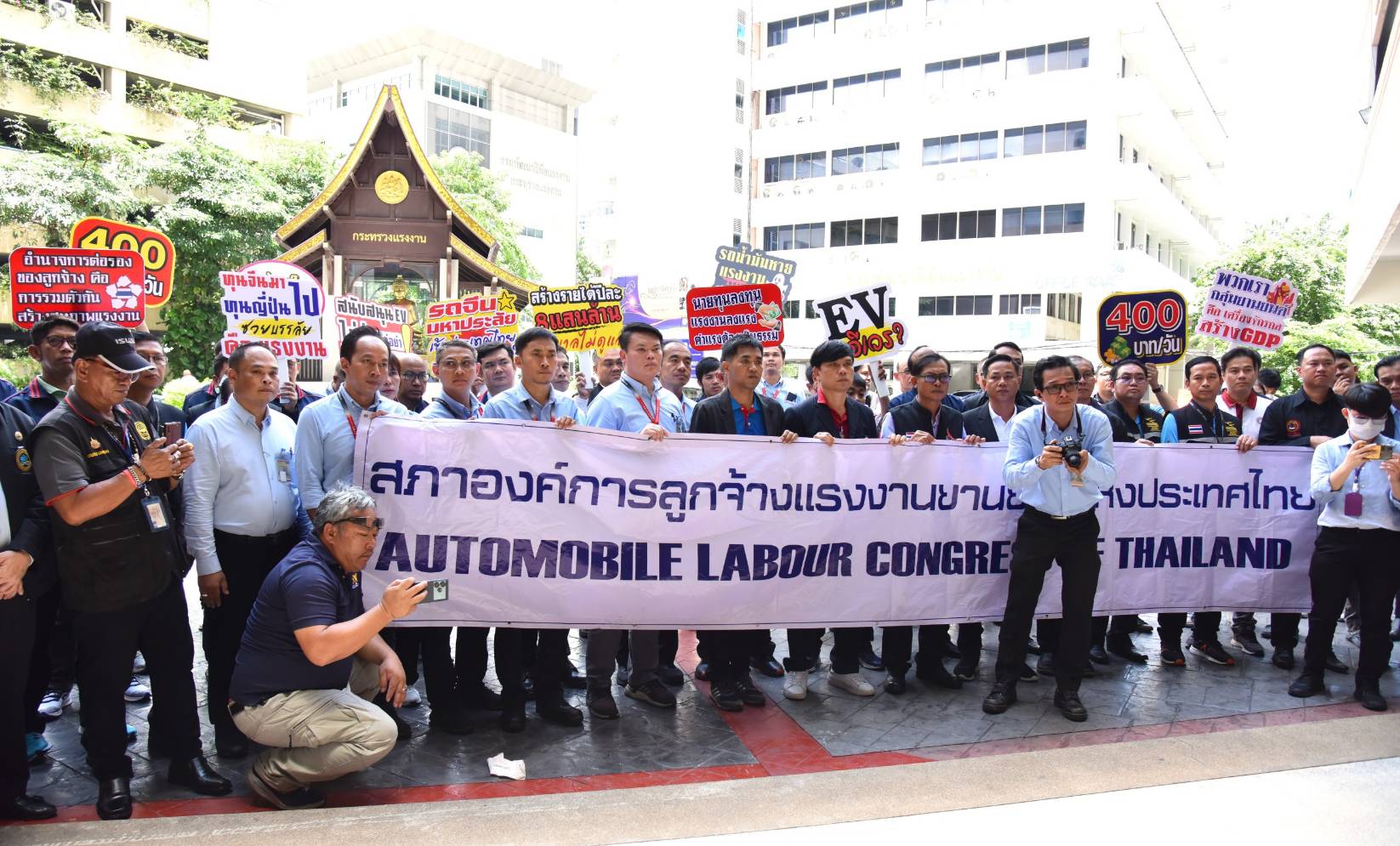 ด้าน นายธนัสถา คำมาวงษ์ ประธานสภาองค์การลูกจ้างแรงงานยานยนต์แห่งประเทศไทย กล่าวว่า ในนามสภาองค์การลูกจ้างแรงงานยานยนต์แห่งประเทศไทย ขอขอบคุณท่านรัฐมนตรีว่าการกระทรวงแรงงานเป็นอย่างยิ่งที่เปิดโอกาสให้เข้าพบหารือในวันนี้ ซึ่งสภาองค์การลูกจ้างแรงงานยานยนต์แห่งประเทศไทยขอสนับสนุนนโยบายการปรับขึ้นค่าจ้างขั้นต่ำ 400 บาทเท่ากันทั่วประเทศ และขอให้รัฐบาลมีมาตรการรองรับผลกระทบด้านแรงงานจากการเปลี่ยนไปใช้รถยนต์ไฟฟ้า ซึ่งจากการได้พบปะพูดคุยกับท่านรัฐมนตรีว่าการกระทรวงแรงงานทั้งสองประเด็นดังกล่าวในวันนี้ ทำให้พวกเราได้รับคำยืนยันและสร้างความเชื่อมั่นว่ากระทรวงแรงงานมีแผนรองรับผลกระทบการเปลี่ยนไปใช้รถยนต์ไฟฟ้าต่อแรงงานในอุตสาหกรรมยานยนต์และที่เกี่ยวเนื่องที่ชัดเจน