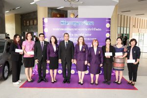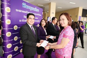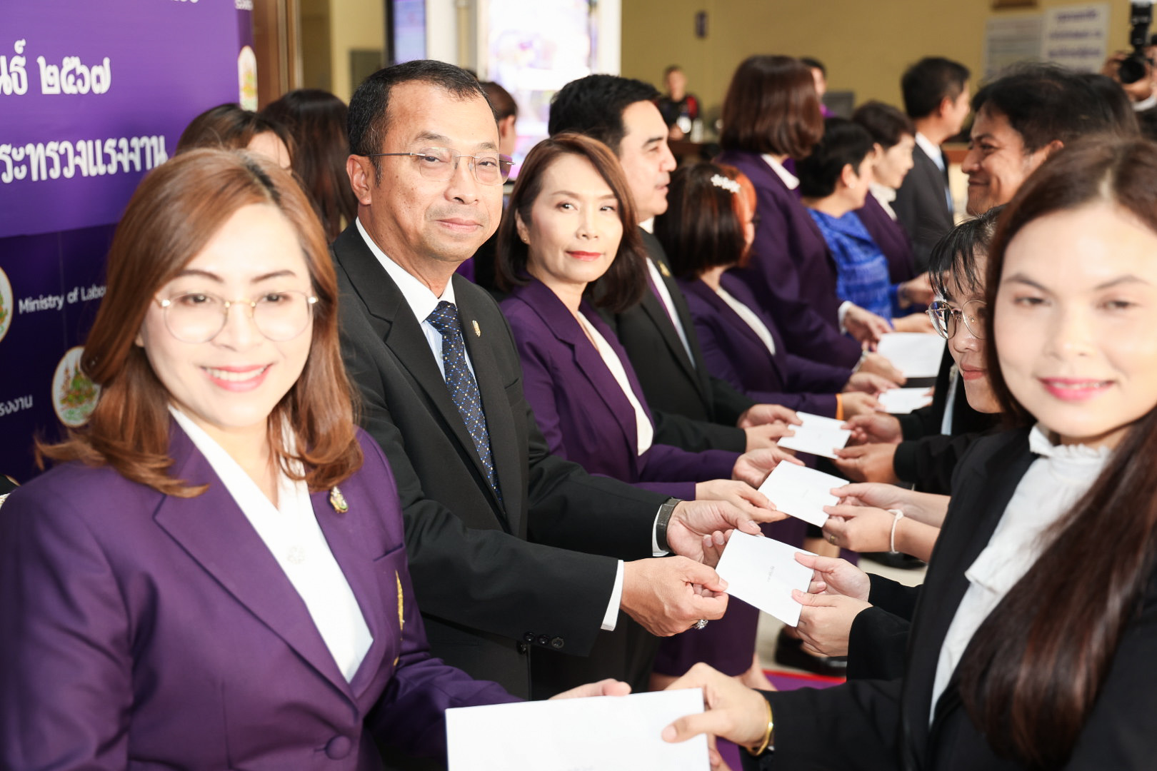 ที่ปรึกษาวิชาการแรงงาน ผู้ช่วยนายกสมาคมแม่บ้านกระทรวงแรงงาน นายนันทชัย ปัญญาสุรฤทธิ์ ผู้ตรวจราชการกระทรวงแรงงาน นางสาวกรจิรัฏฐ์ พงจันทร์ศธร ผู้ช่วยปลัดกระทรวงแรงงาน ผู้ช่วยนายกสมาคมแม่บ้านกระทรวงแรงงาน พร้อมด้วย ผู้บริหารระดับสูงกระทรวงแรงงาน ร่วมเป็นเกียรติและสักขีพยานด้วย ณ บริเวณโถงชั้นล่างอาคารกระทรวงแรงงาน